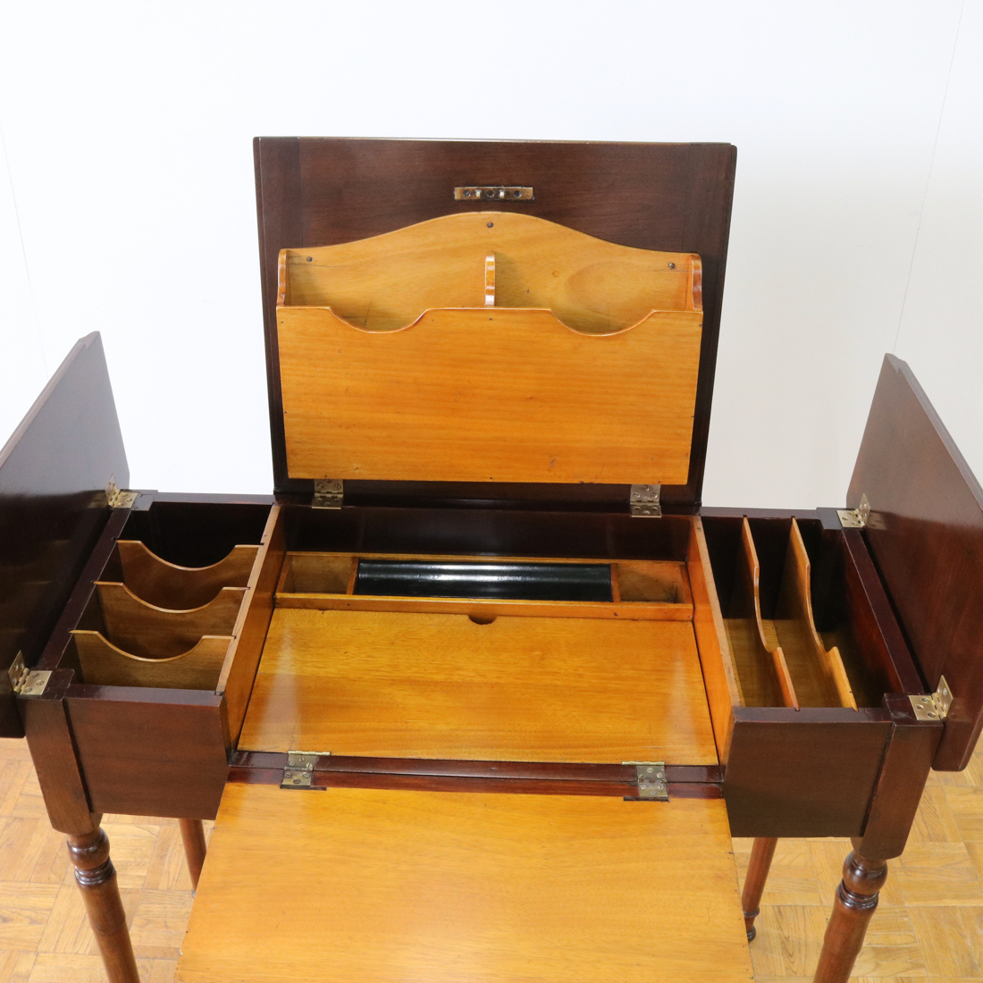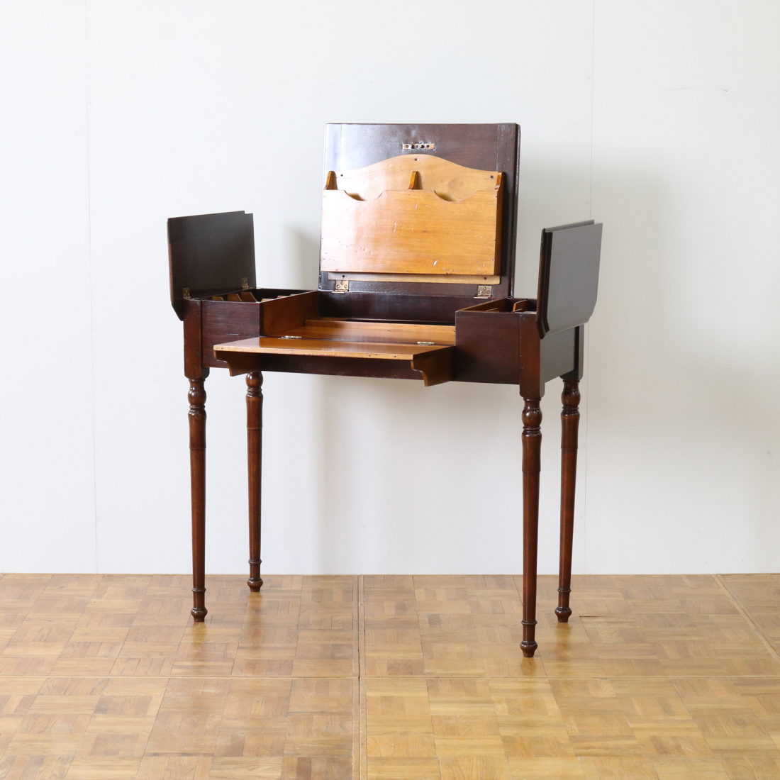 機構の面白さだけでなく実用面でも優れたライティングデスクです。