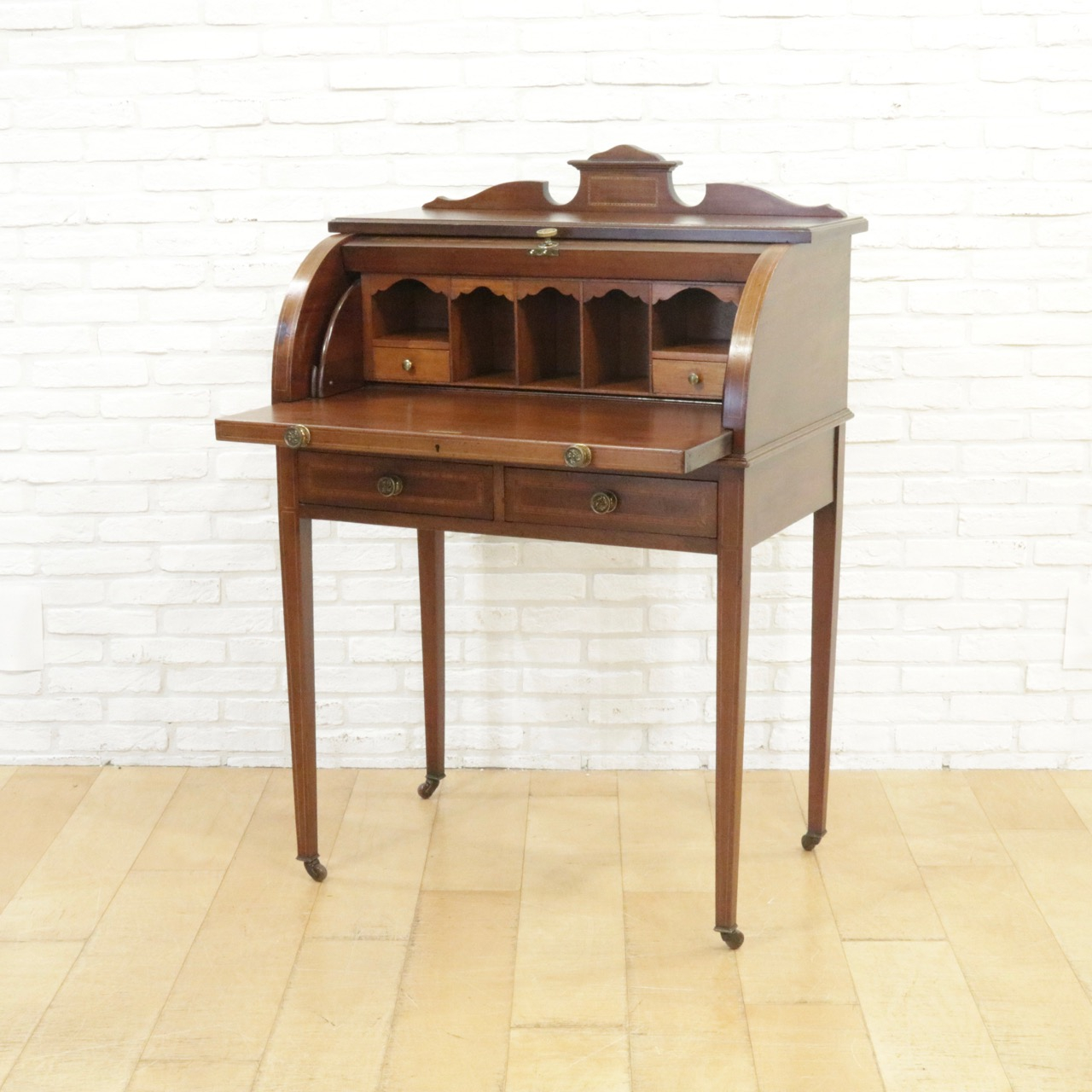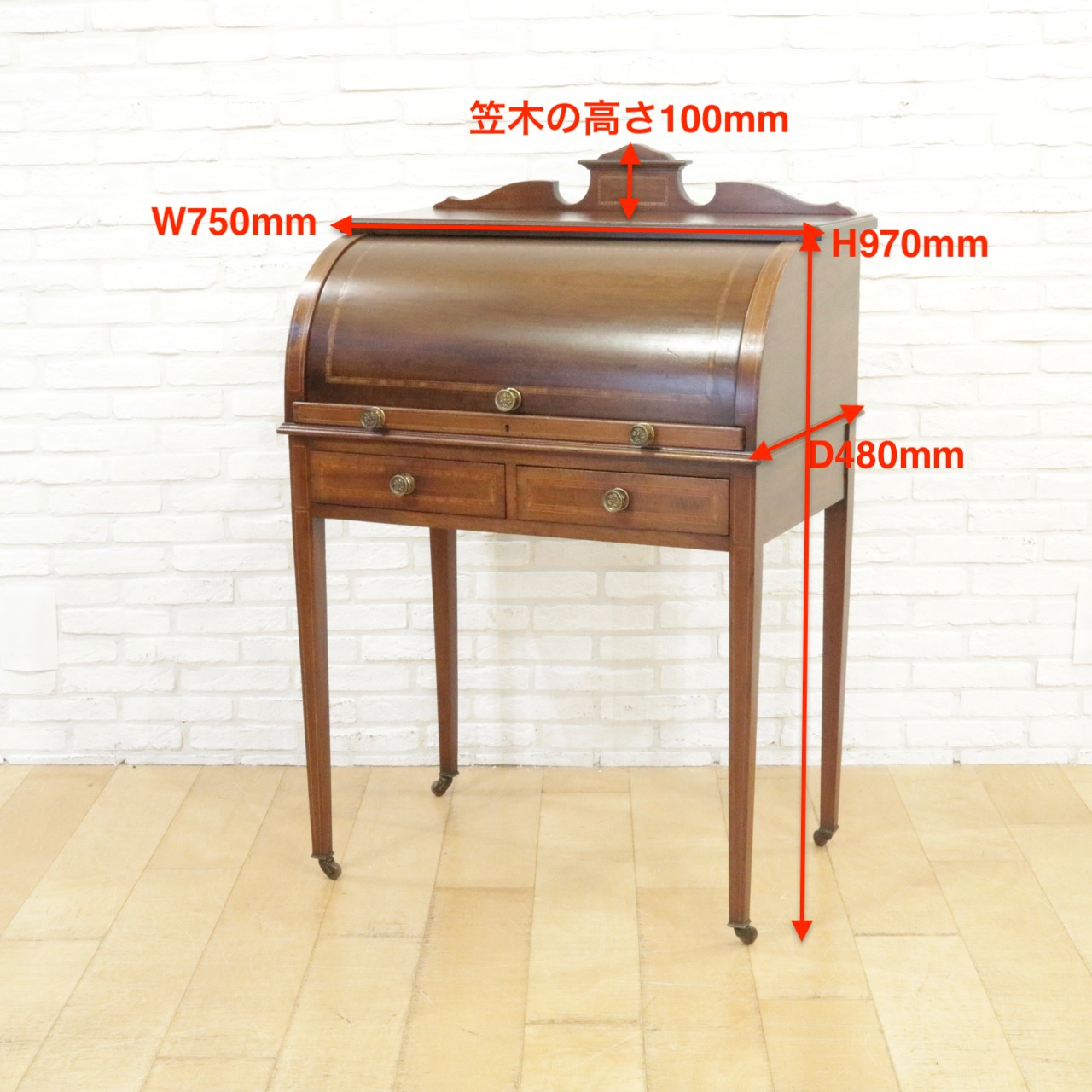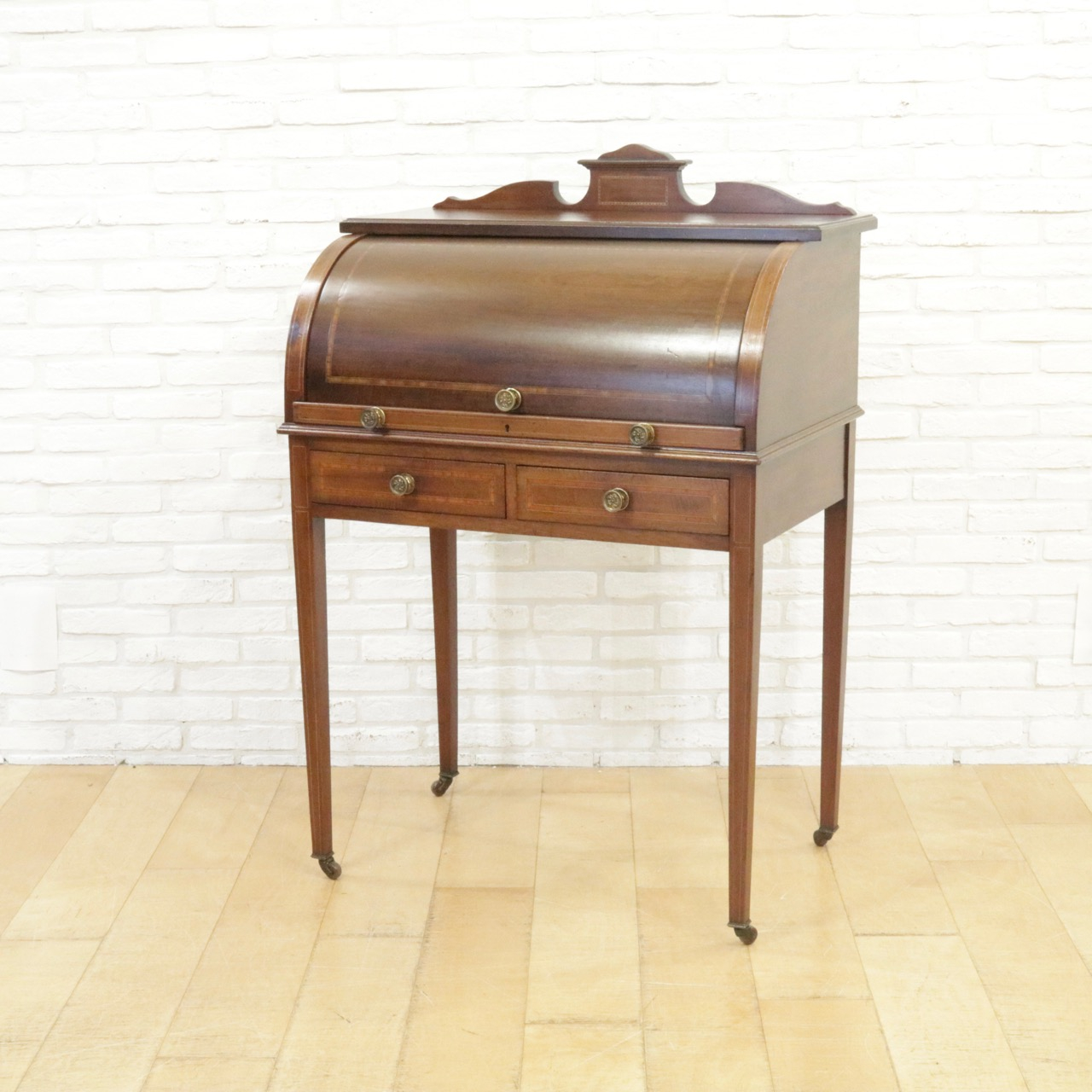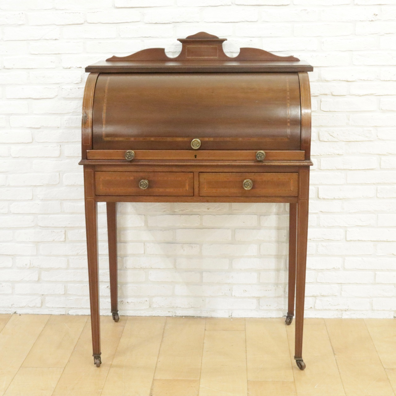 配送料の目安 ▶︎1920年代、マホガニーのシリンダートップデスク。
