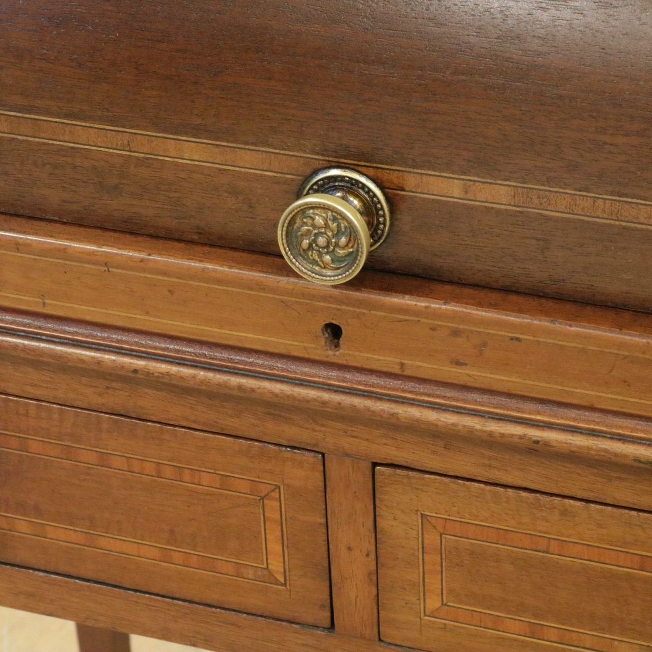 蓋や笠木、引き出し、脚部等に繊細なインレイ細工が施され華やか。