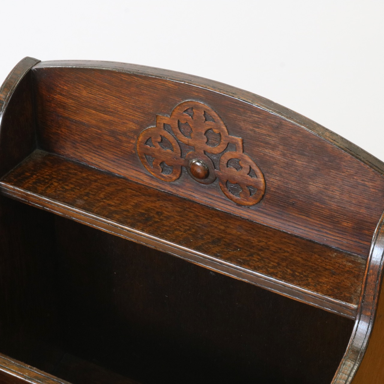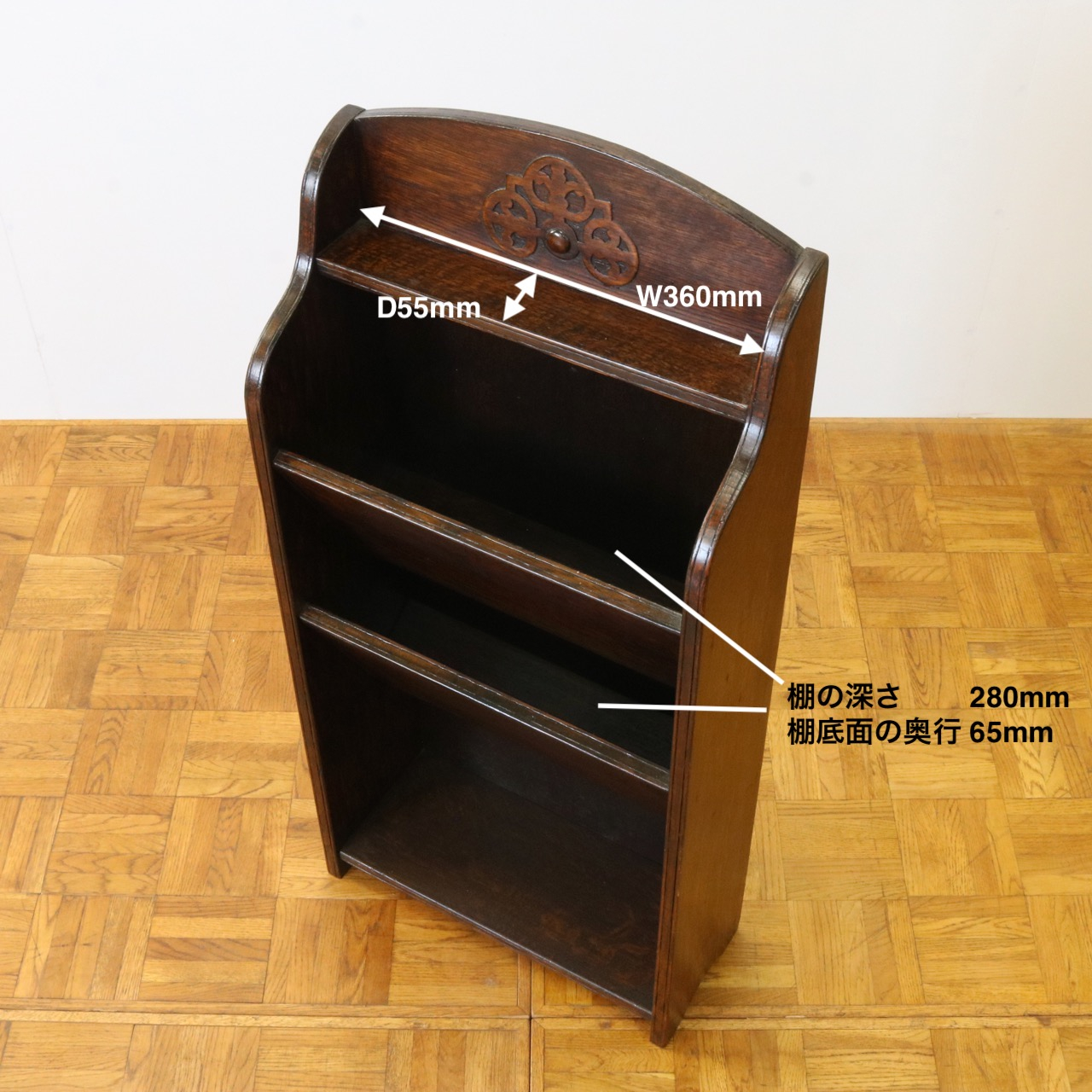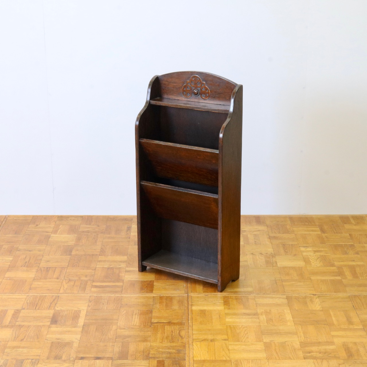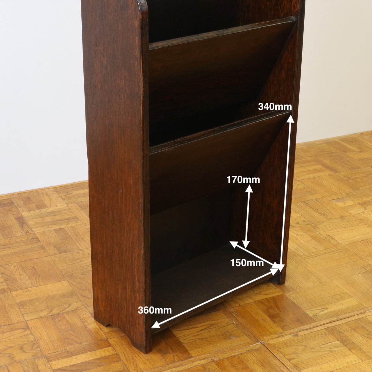 配送料の目安 ▶︎1930年代、オーク材のマガジンラック。2箇所に分けて雑誌を整理整頓出来、下にもオープン棚がある実用的なアイテム。スリムなサイズなのも嬉しいポイント。