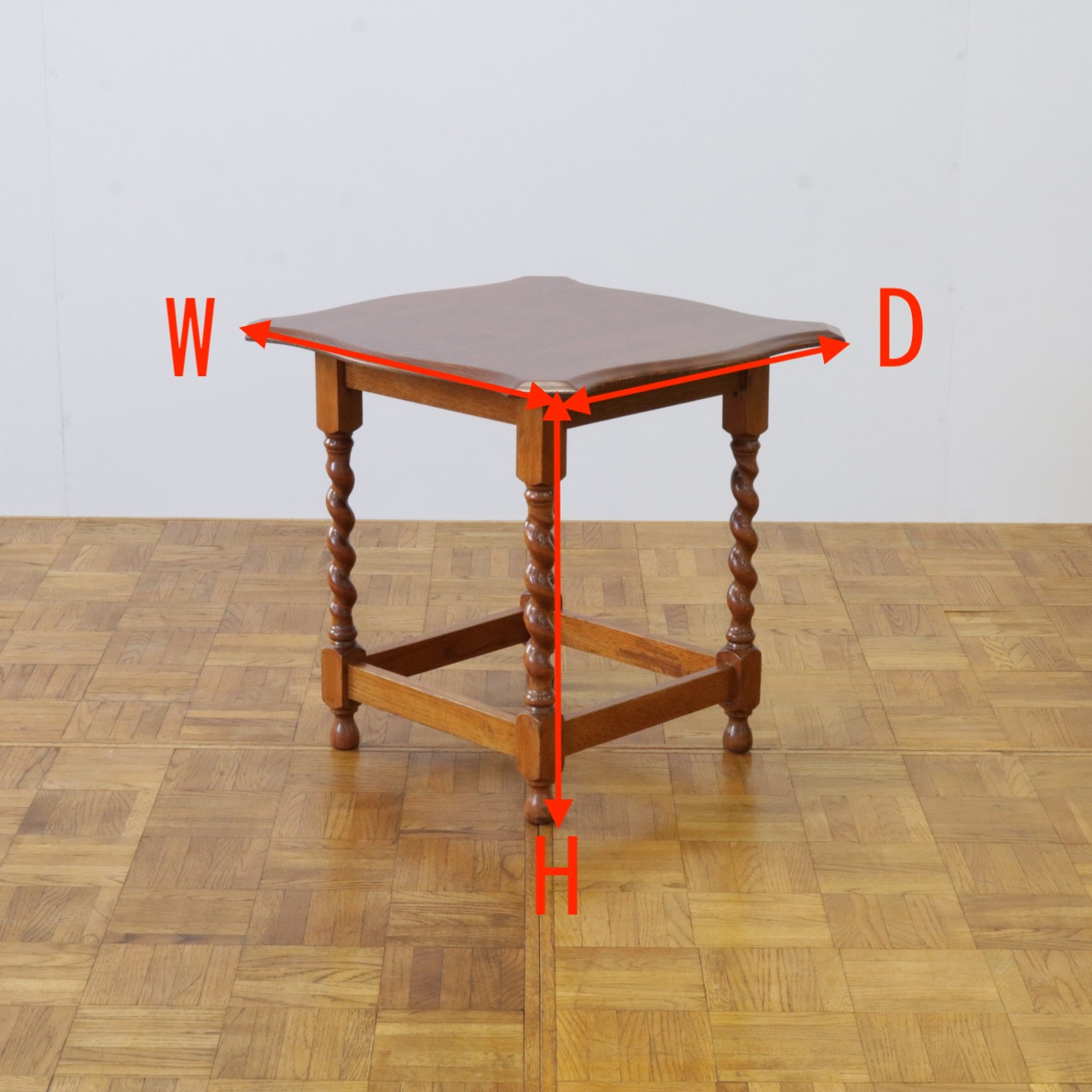 配送料の目安 ▶︎1930年代、オーク材のオケージョナルテーブル 。曲線ラインが美しい天板にツイストレッグがポイントの小ぶりなテーブル。ソファ前やチェアーサイドにいかがでしょうか。