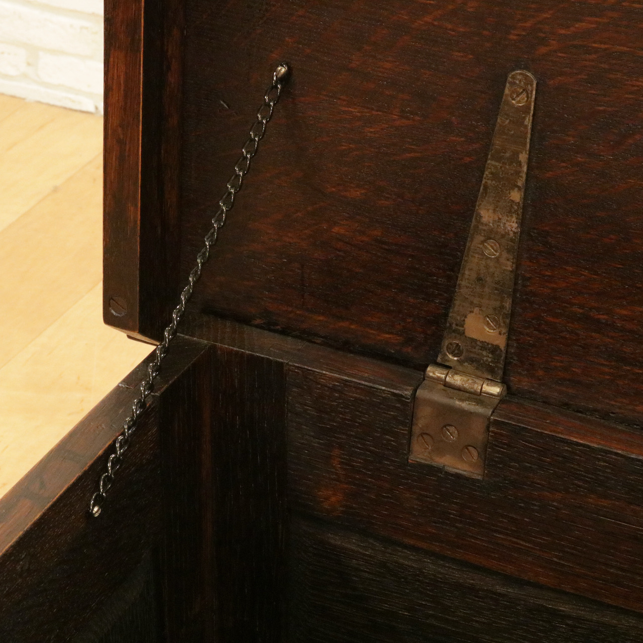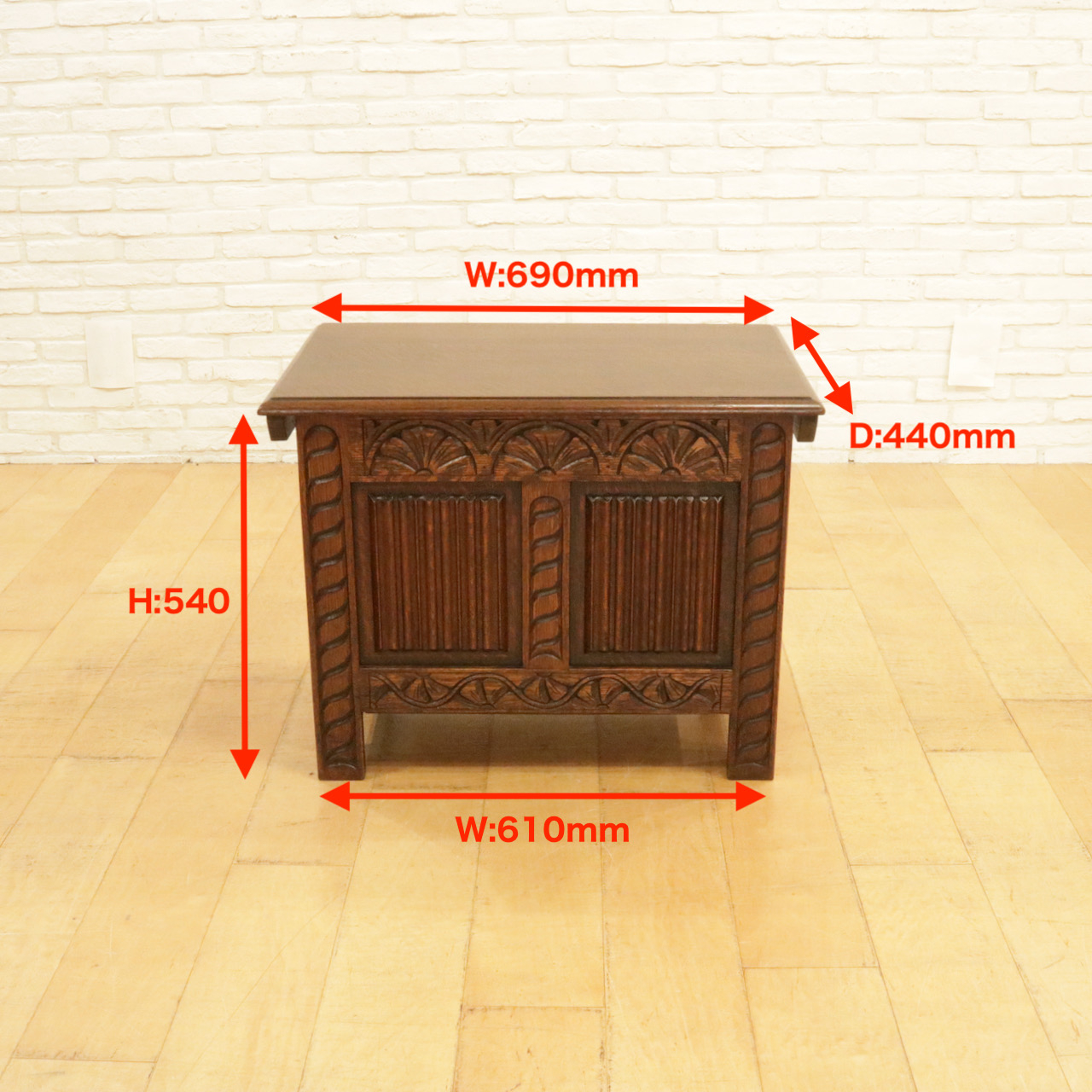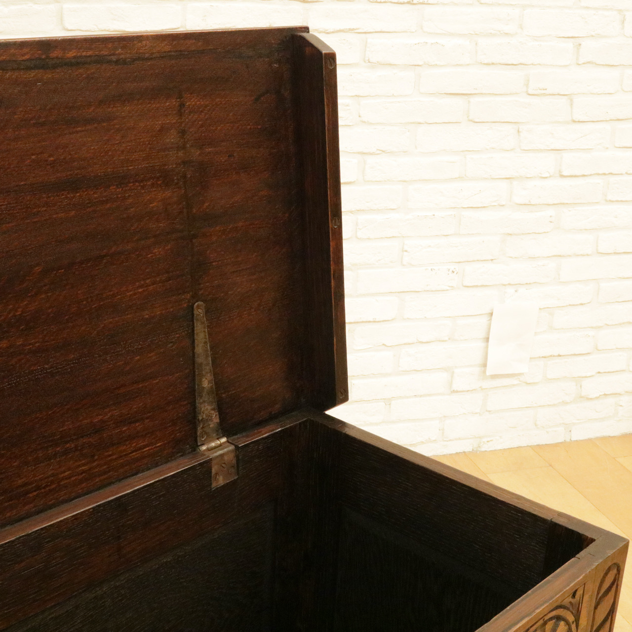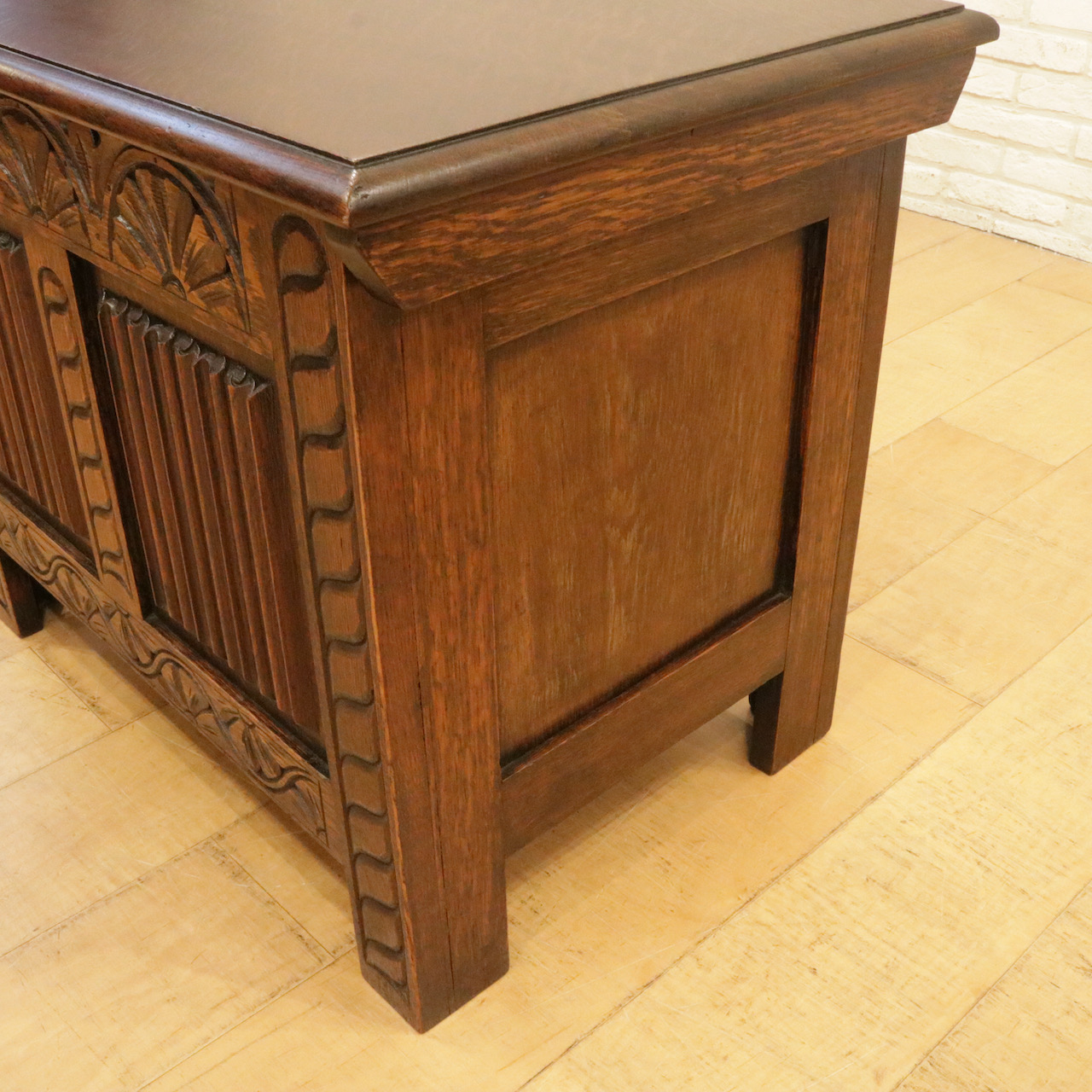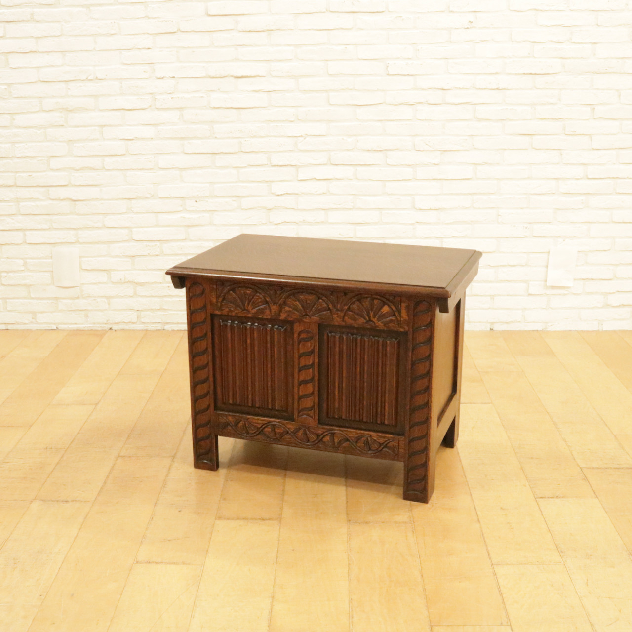 配送料の目安 ▶︎1930年代、オーク材のブランケットチェスト。しっかりとした彫刻が施され重厚感があります。リネン類、散らかりがちな小物や道具、雑誌などの収納におすすめです。