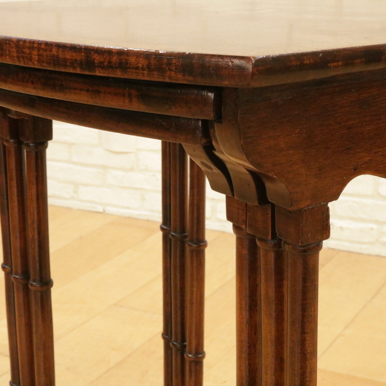 配送料の目安 ▶︎1930年代、ウォールナット のネストテーブル 。3つのサイズ違いのテーブルがワンセットになっています。すっきりと洗練されたラインが美しい佇まい。各天板にはウォールナット らしい杢目が現れその深みのある風合いを堪能できます。