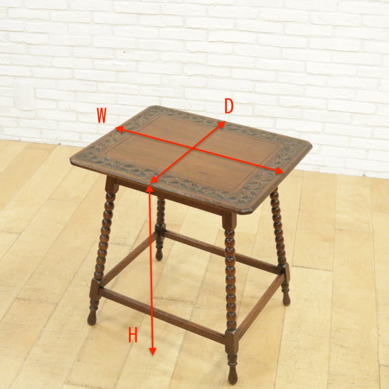 天板縁には丁寧に施された葉の彫刻が連なり、繊細な美しさが漂うデザイン。