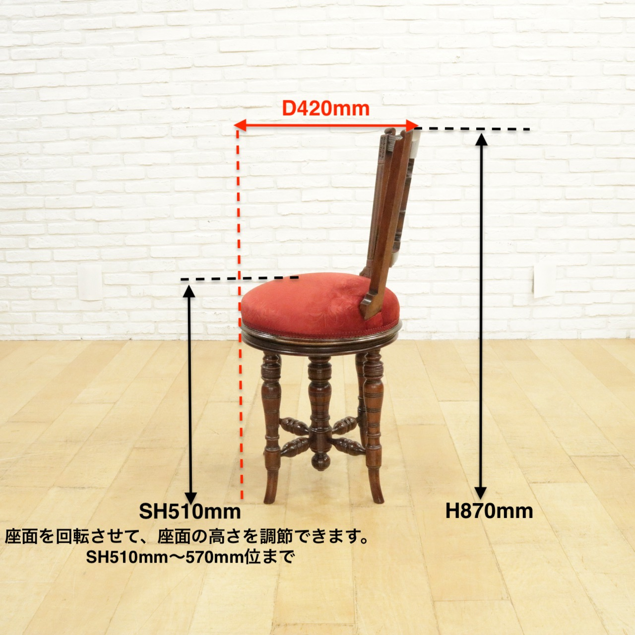 配送料の目安 ▶︎1910年代、ウォールナットのピアノスツール。背もたれ付きは入荷が少なめのアイテムです。