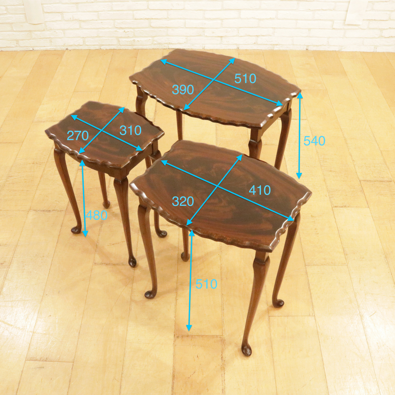 3つのサイズ違いのテーブルがワンセットになっています。