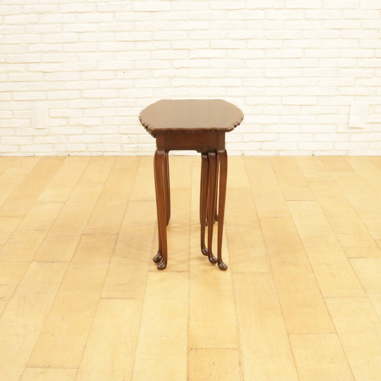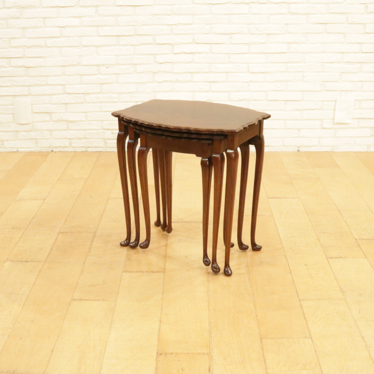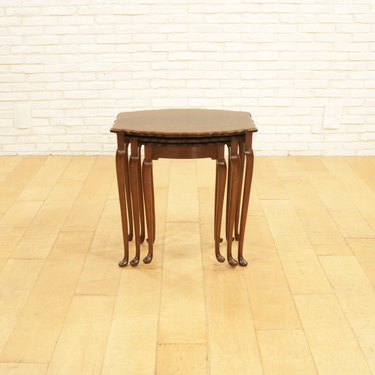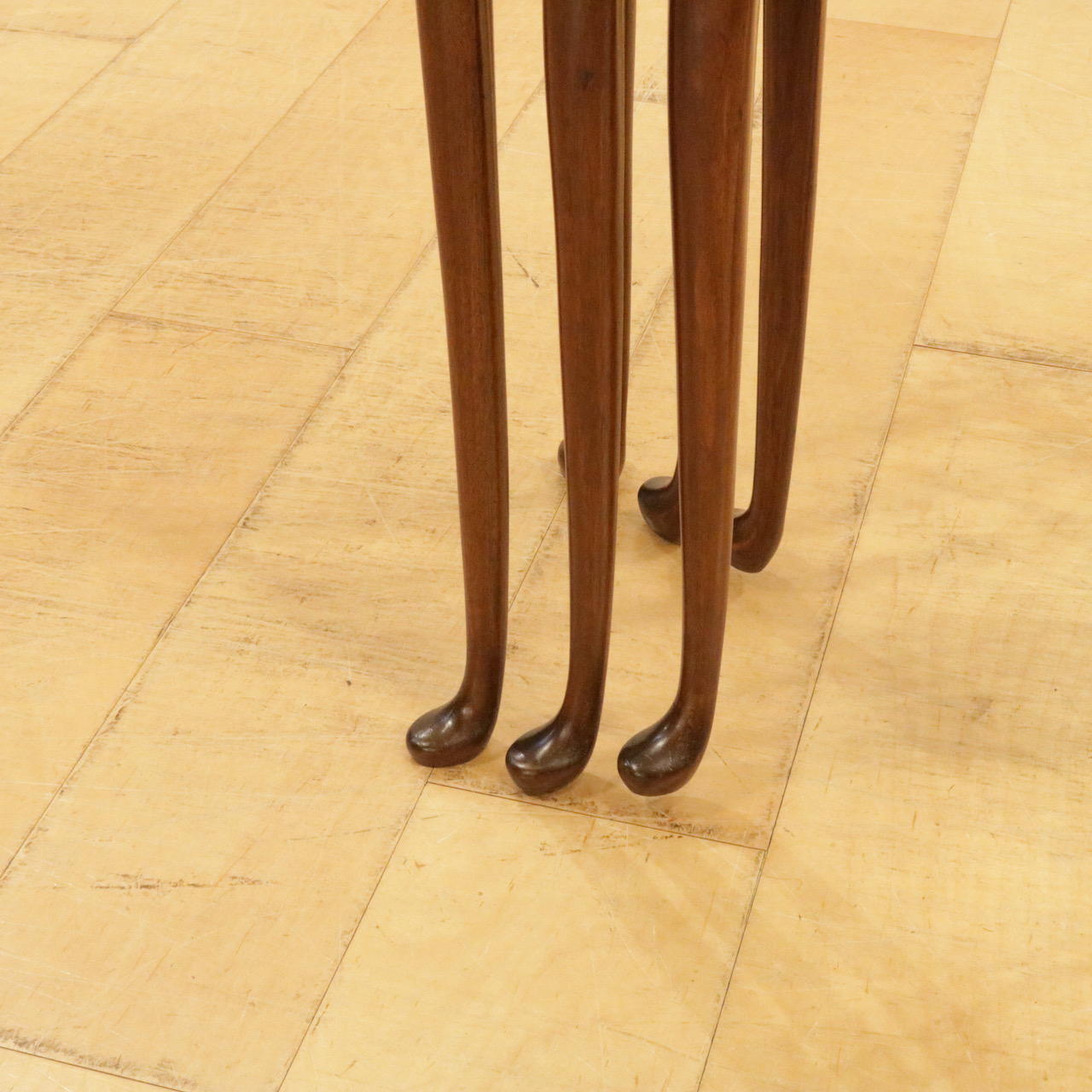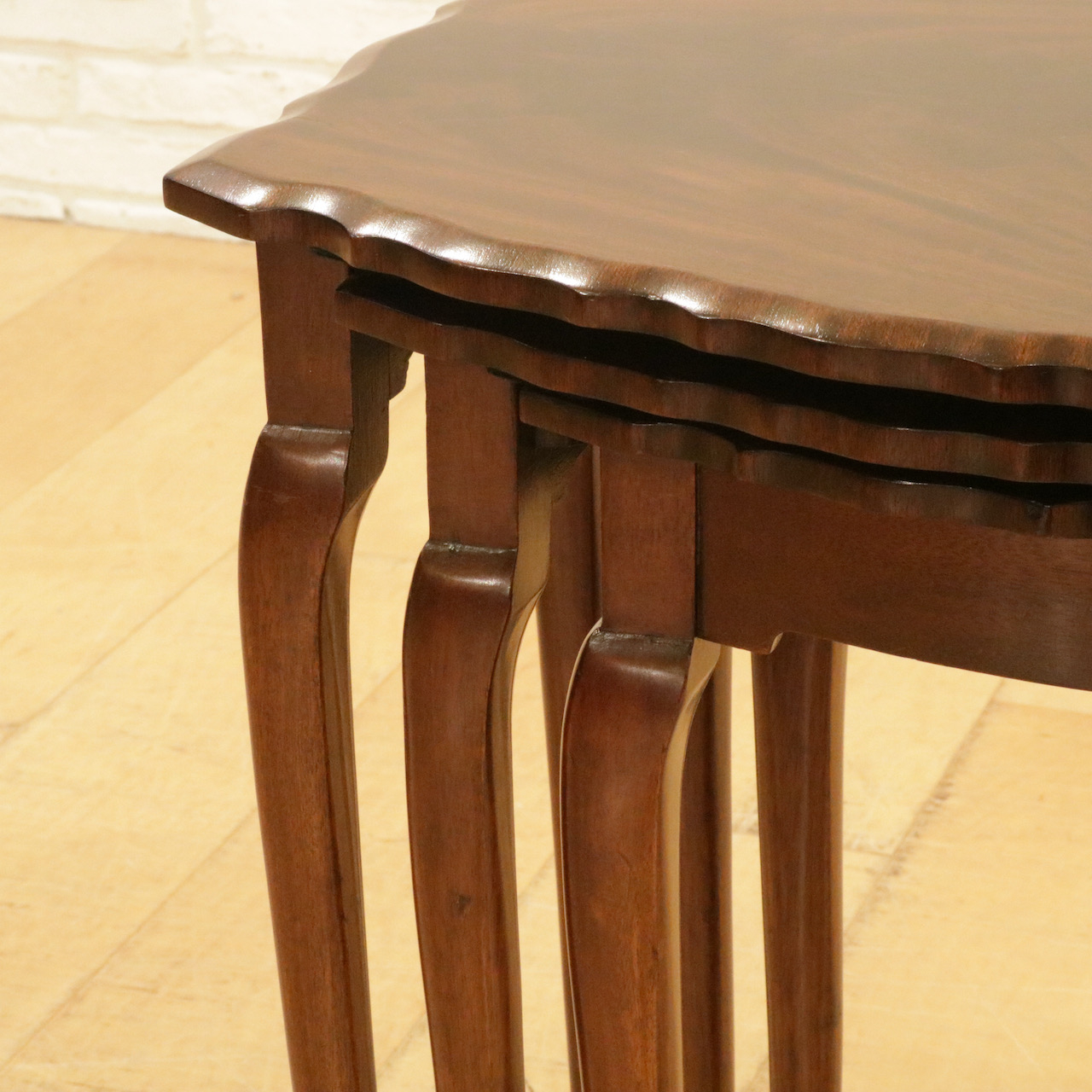 波型の天板にマホガニーの杢目が際立ち、カブリオールレッグの脚元も優雅な佇まい。