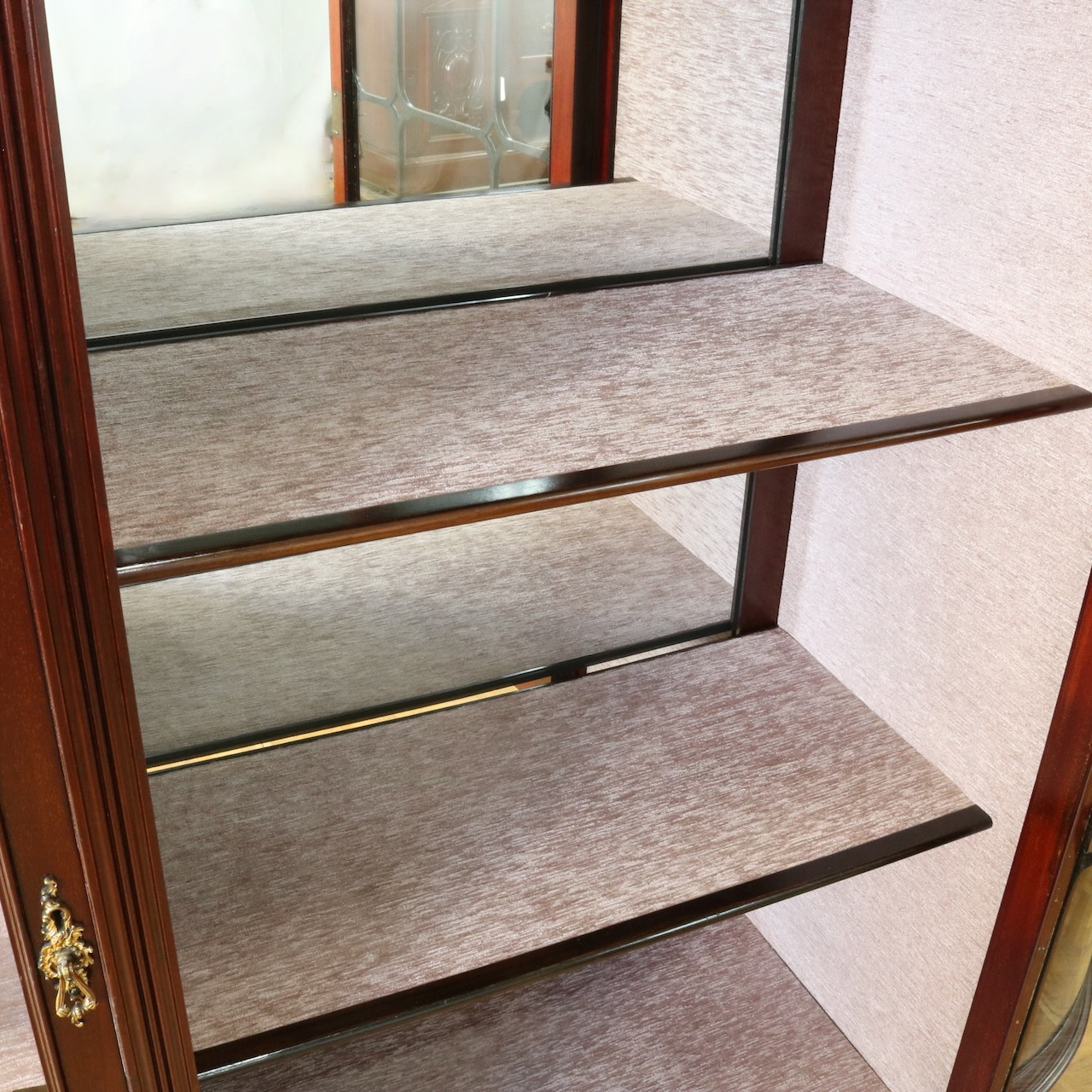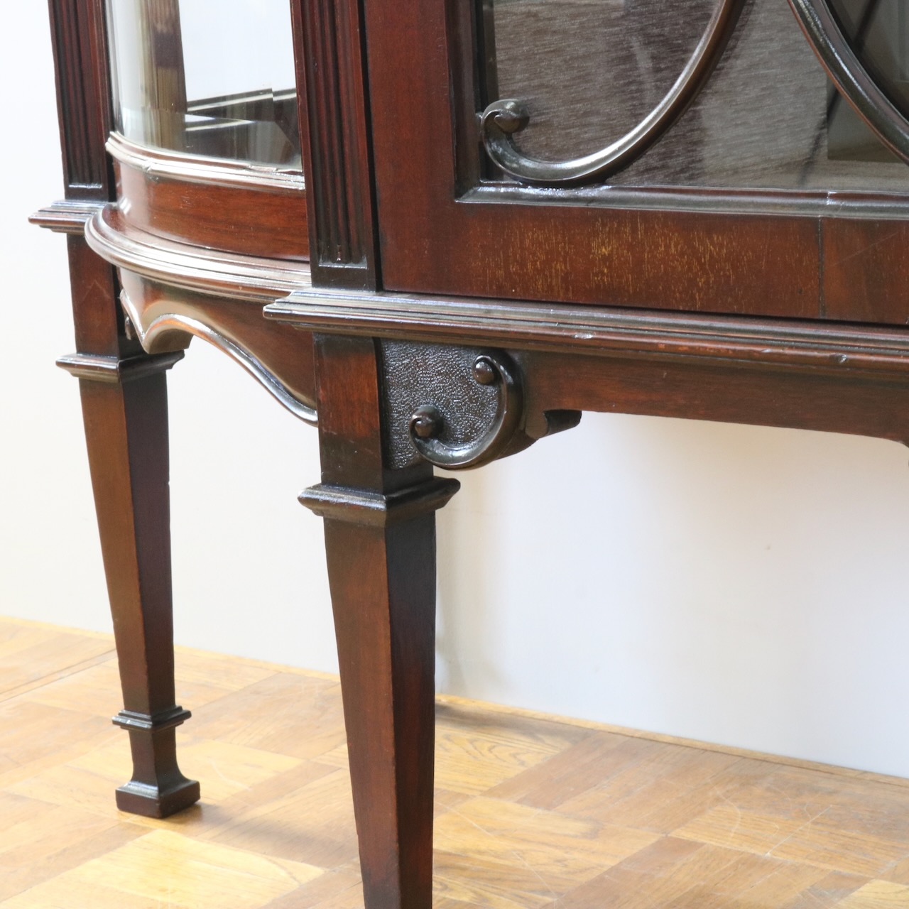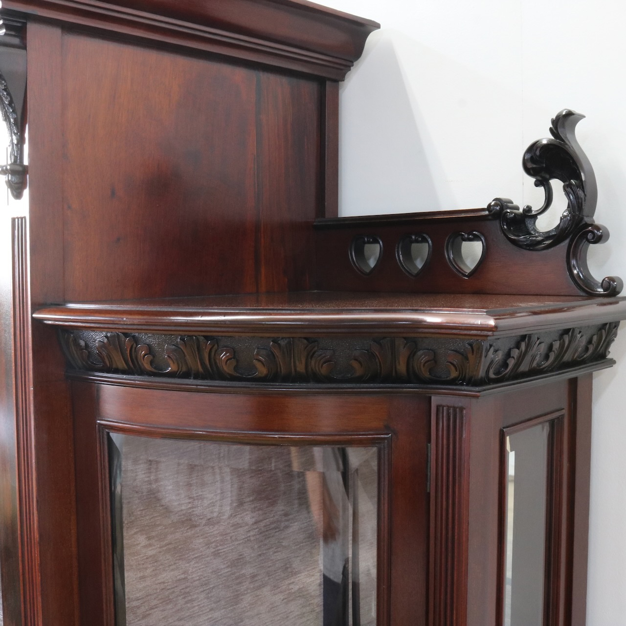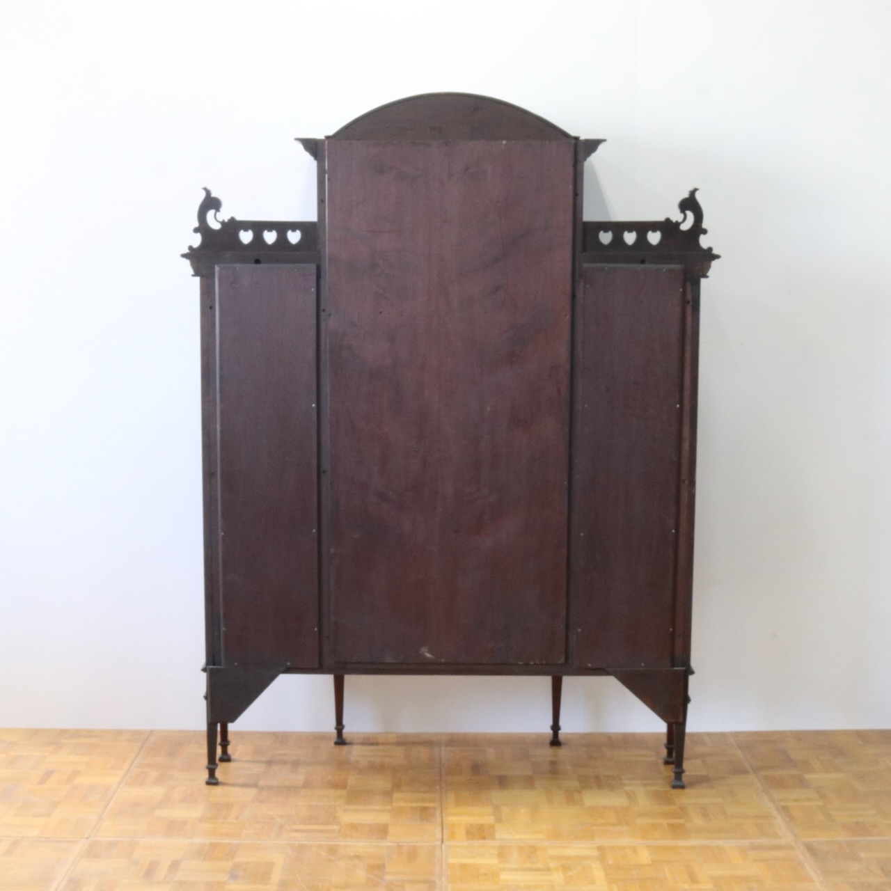 内部はミラー張りで飾るものも引き立てます。上品な佇まい、マホガニーの深く艶のある風合いにも惹かれます。