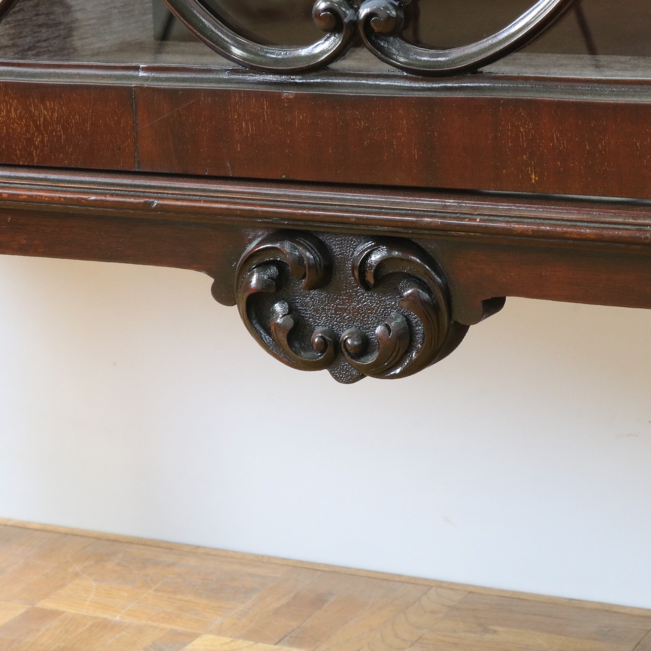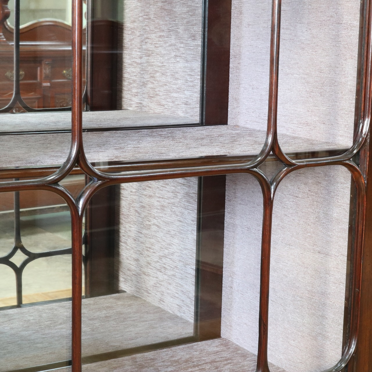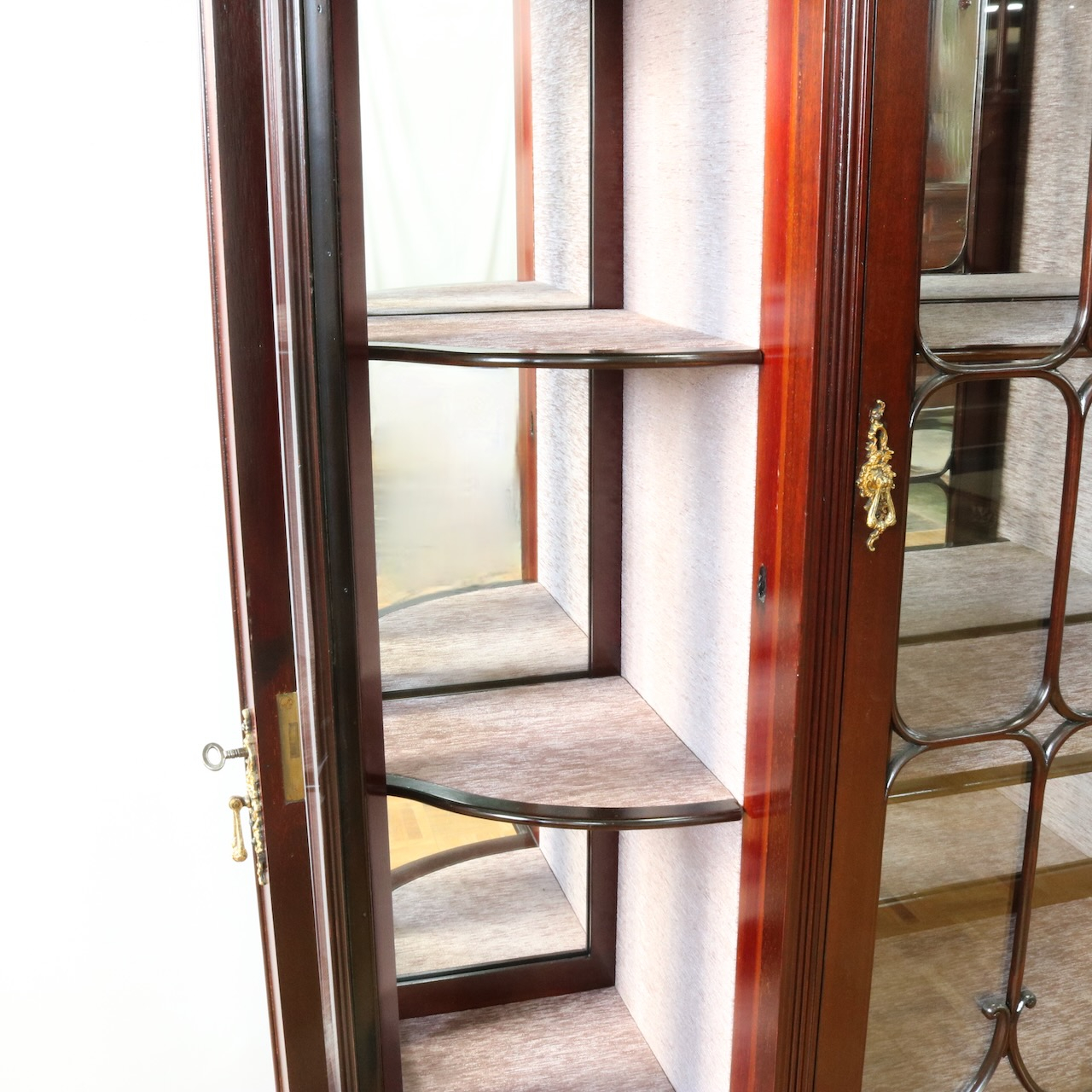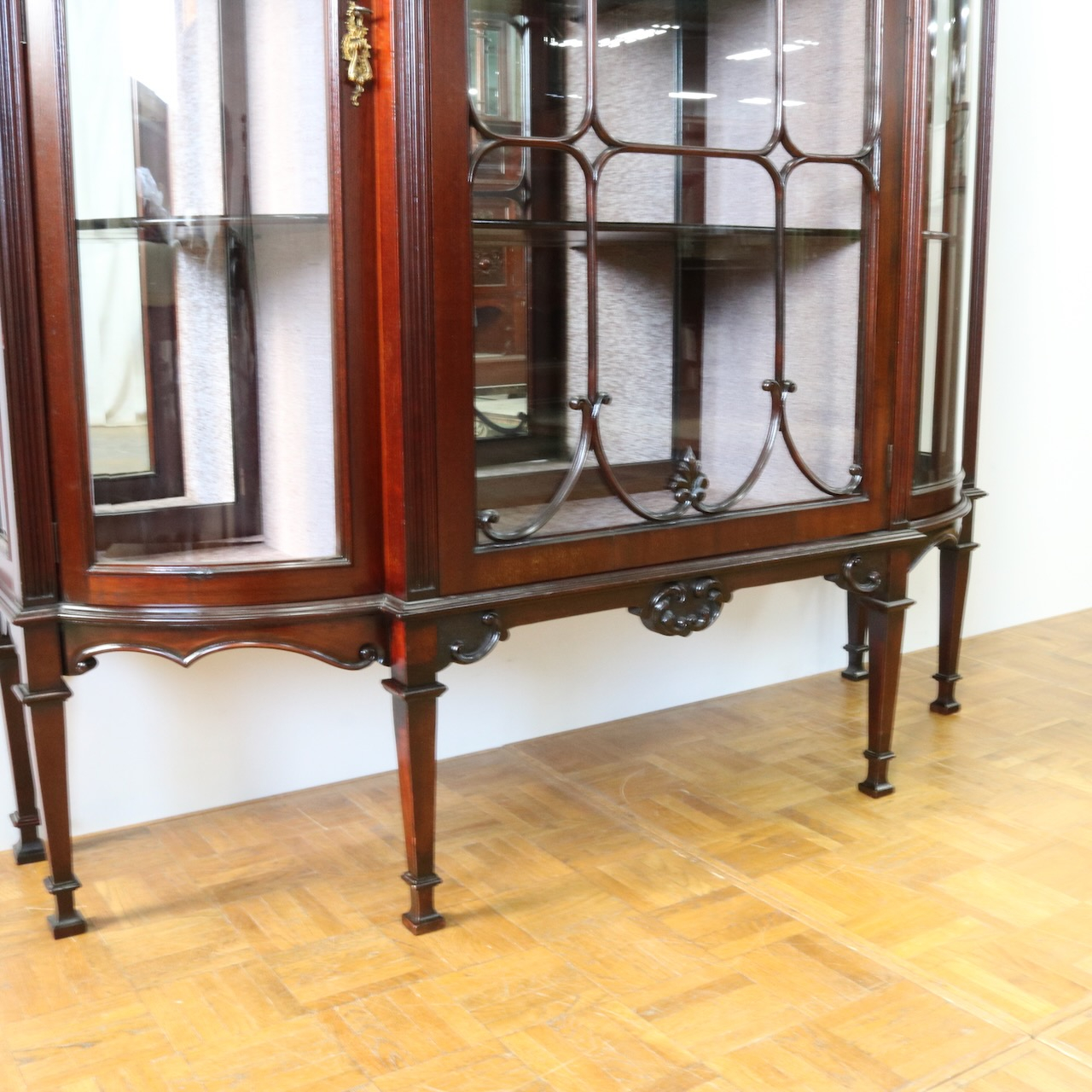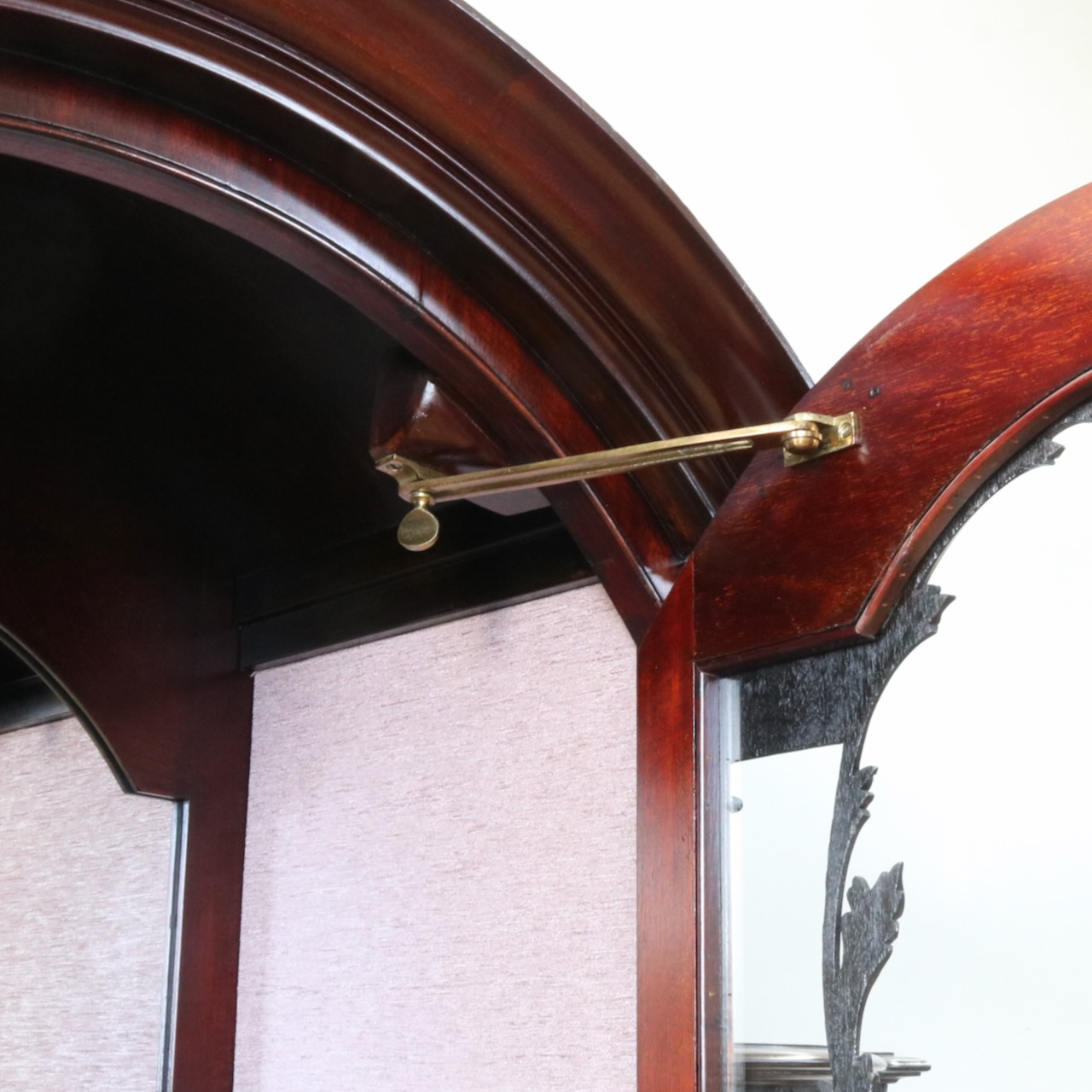 内部はミラー張りで飾るものも引き立てます。上品な佇まい、マホガニーの深く艶のある風合いにも惹かれます。