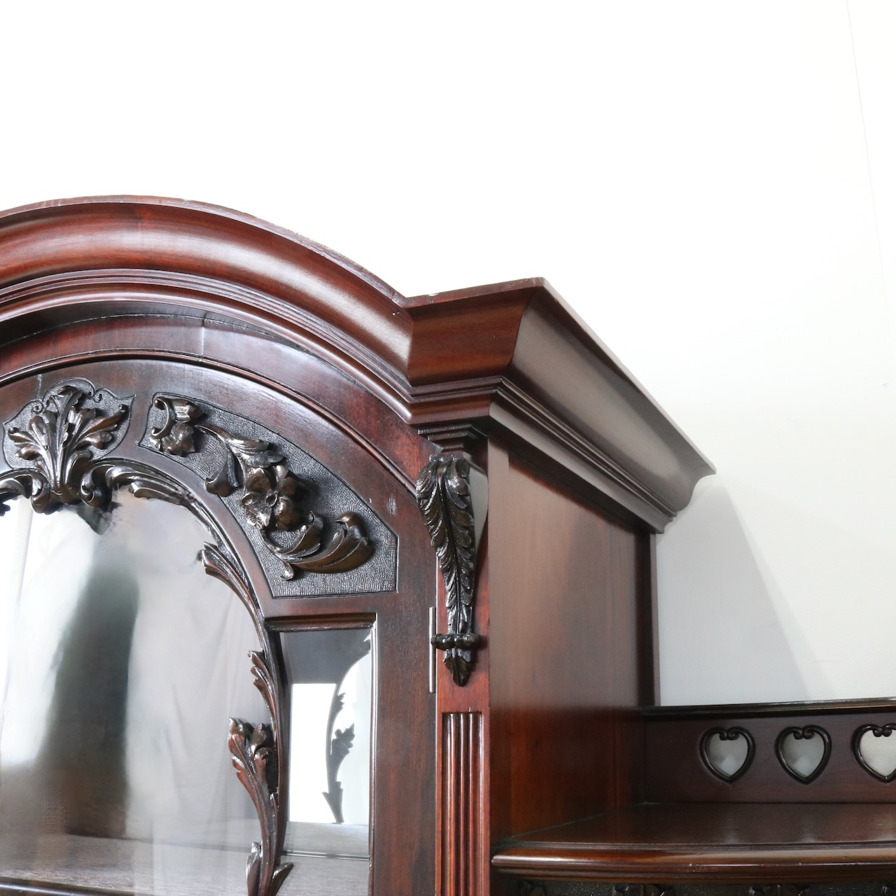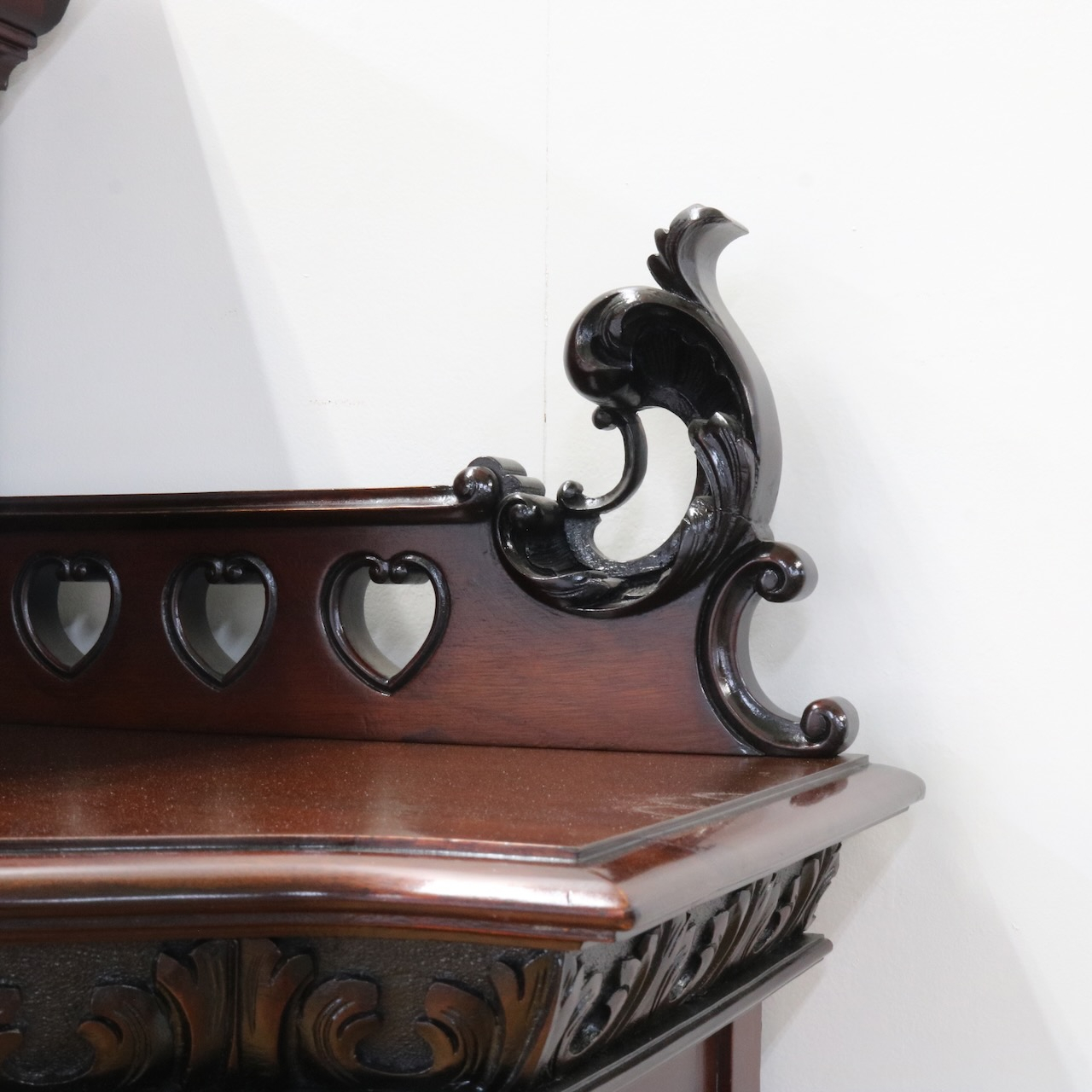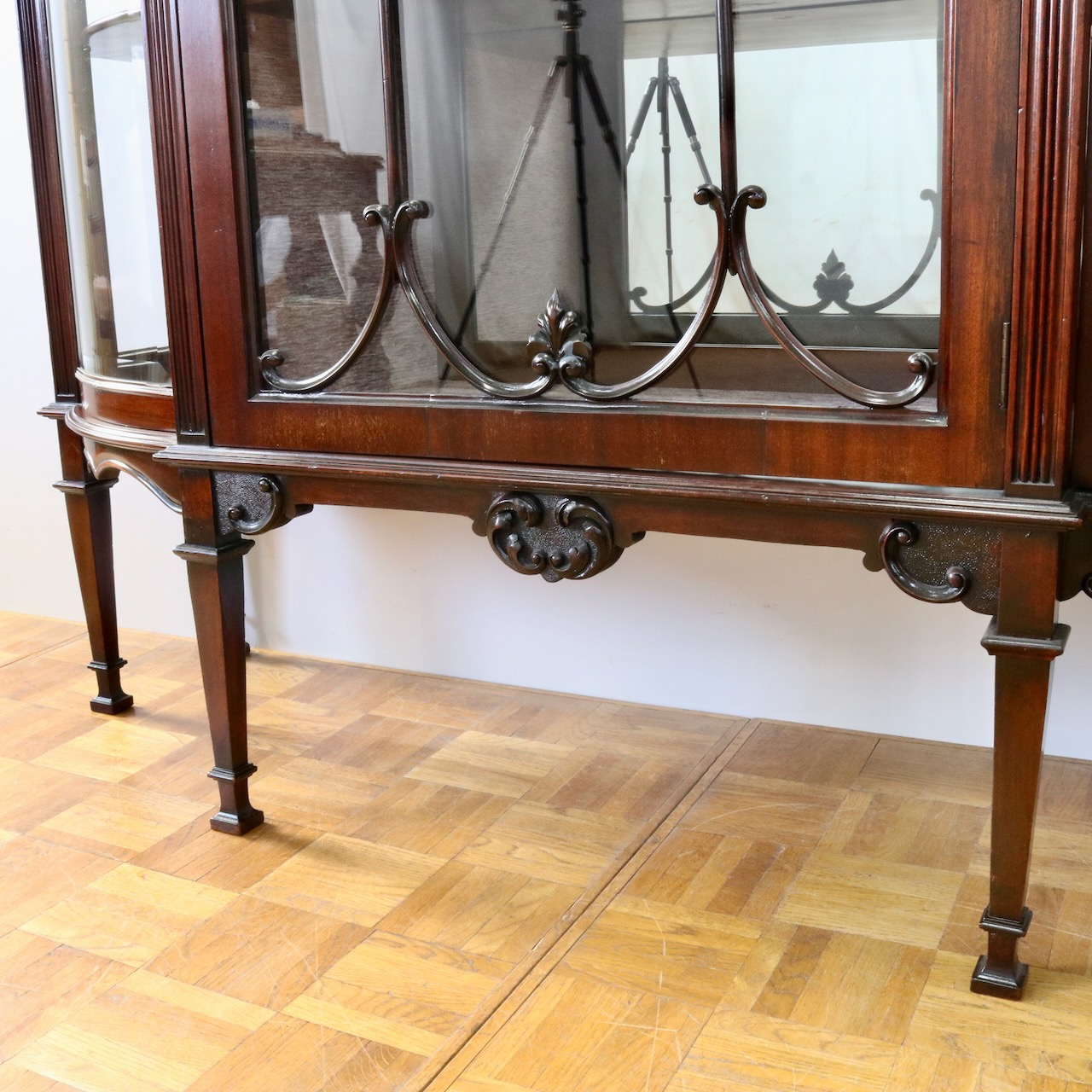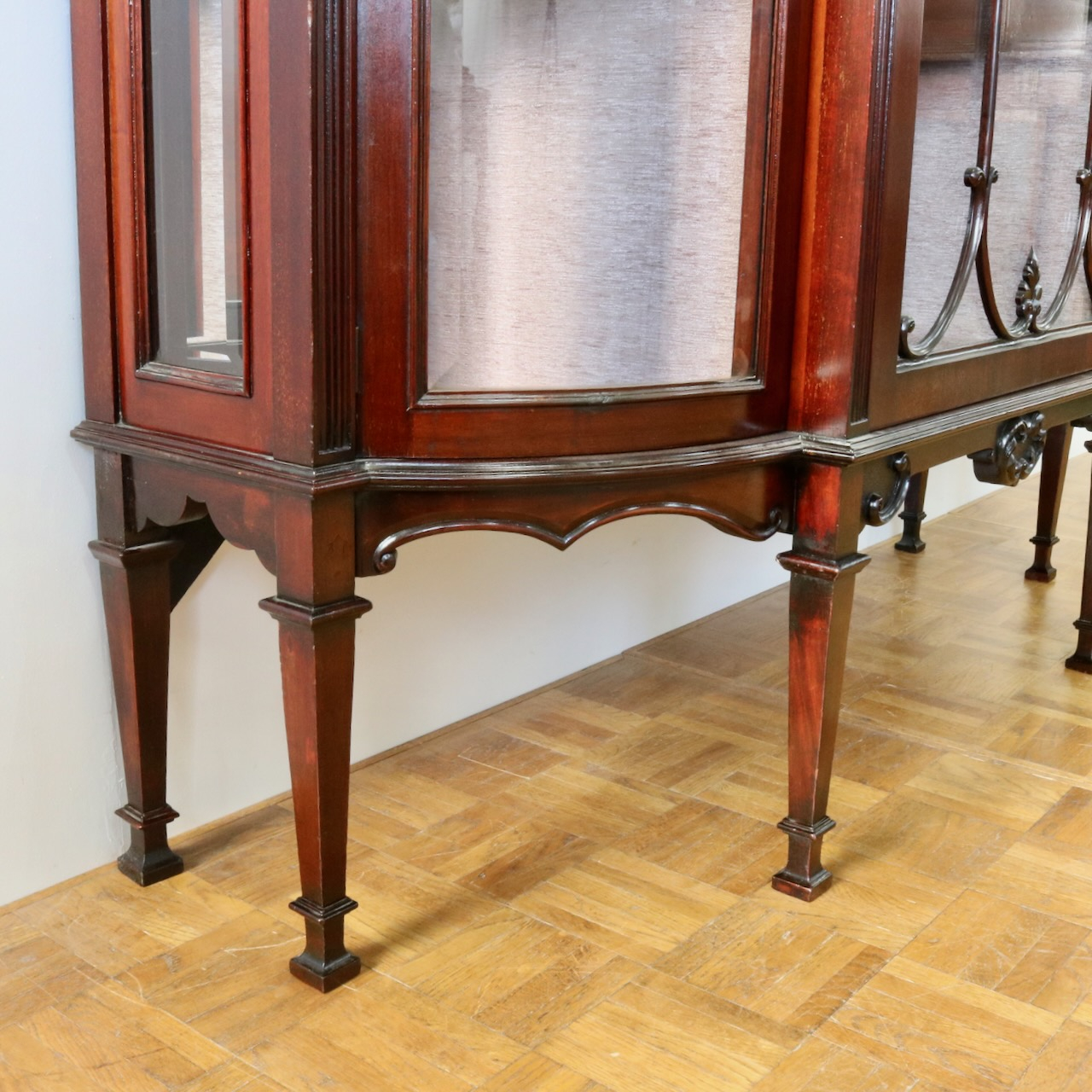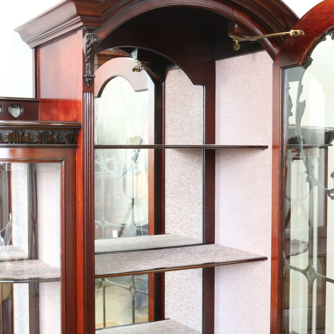 内部はミラー張りで飾るものも引き立てます。上品な佇まい、マホガニーの深く艶のある風合いにも惹かれます。