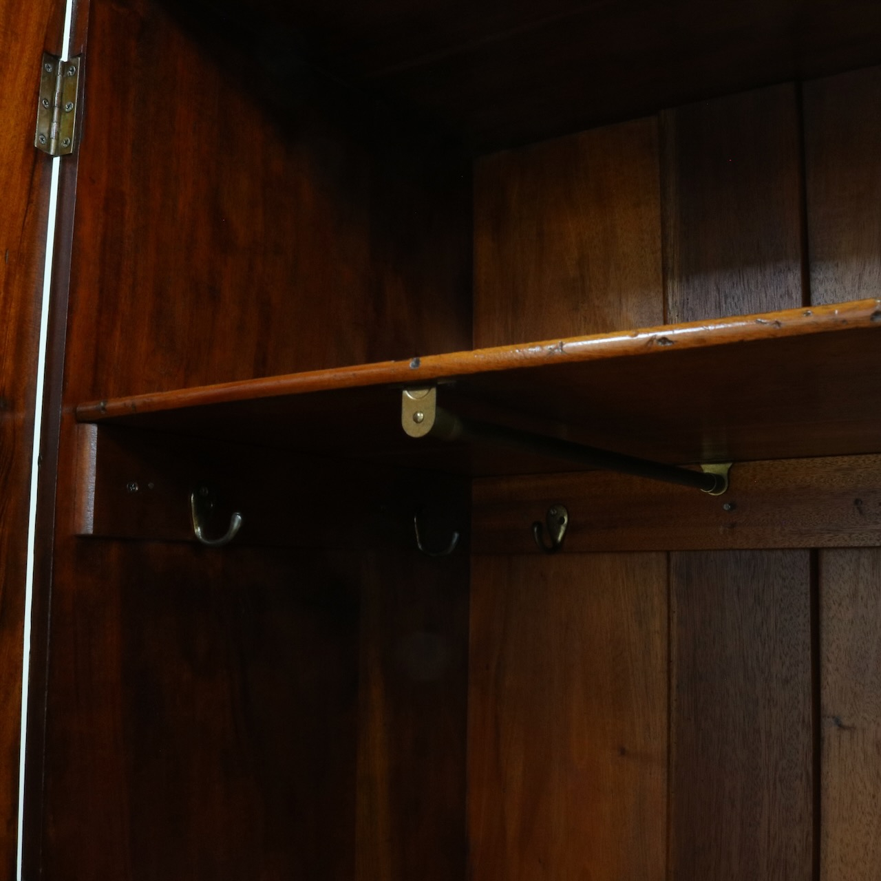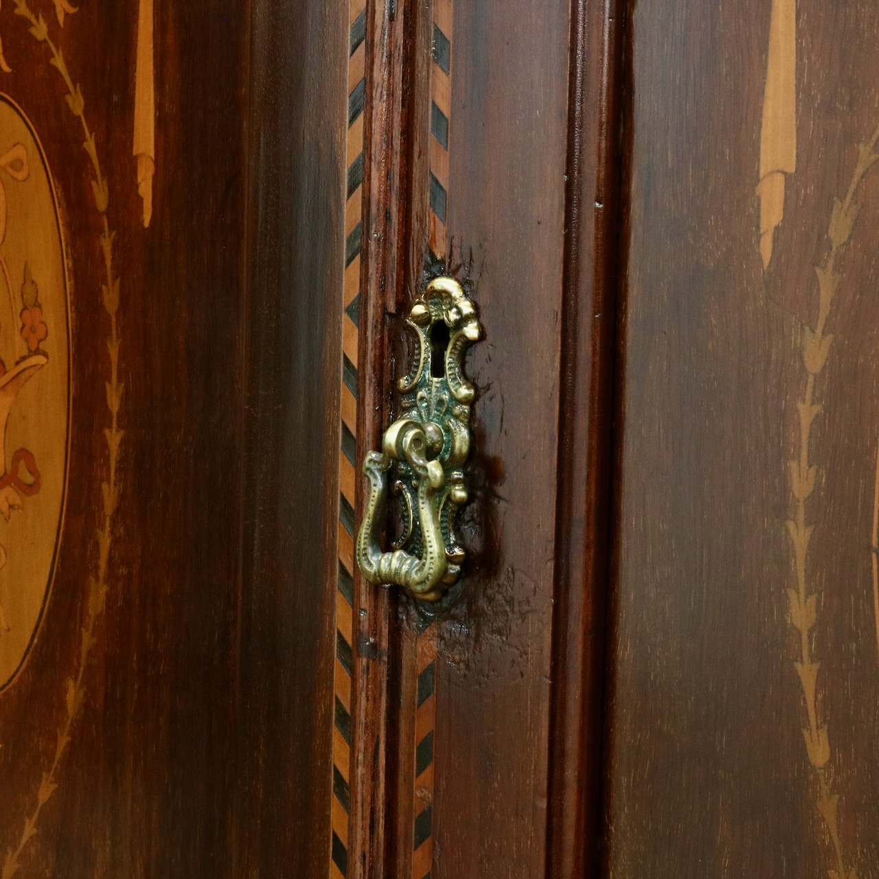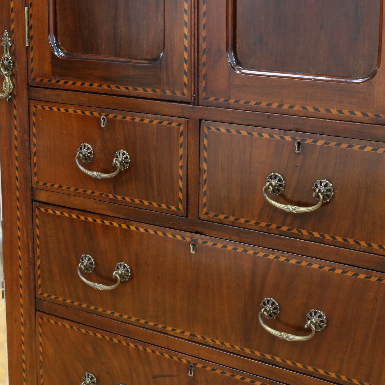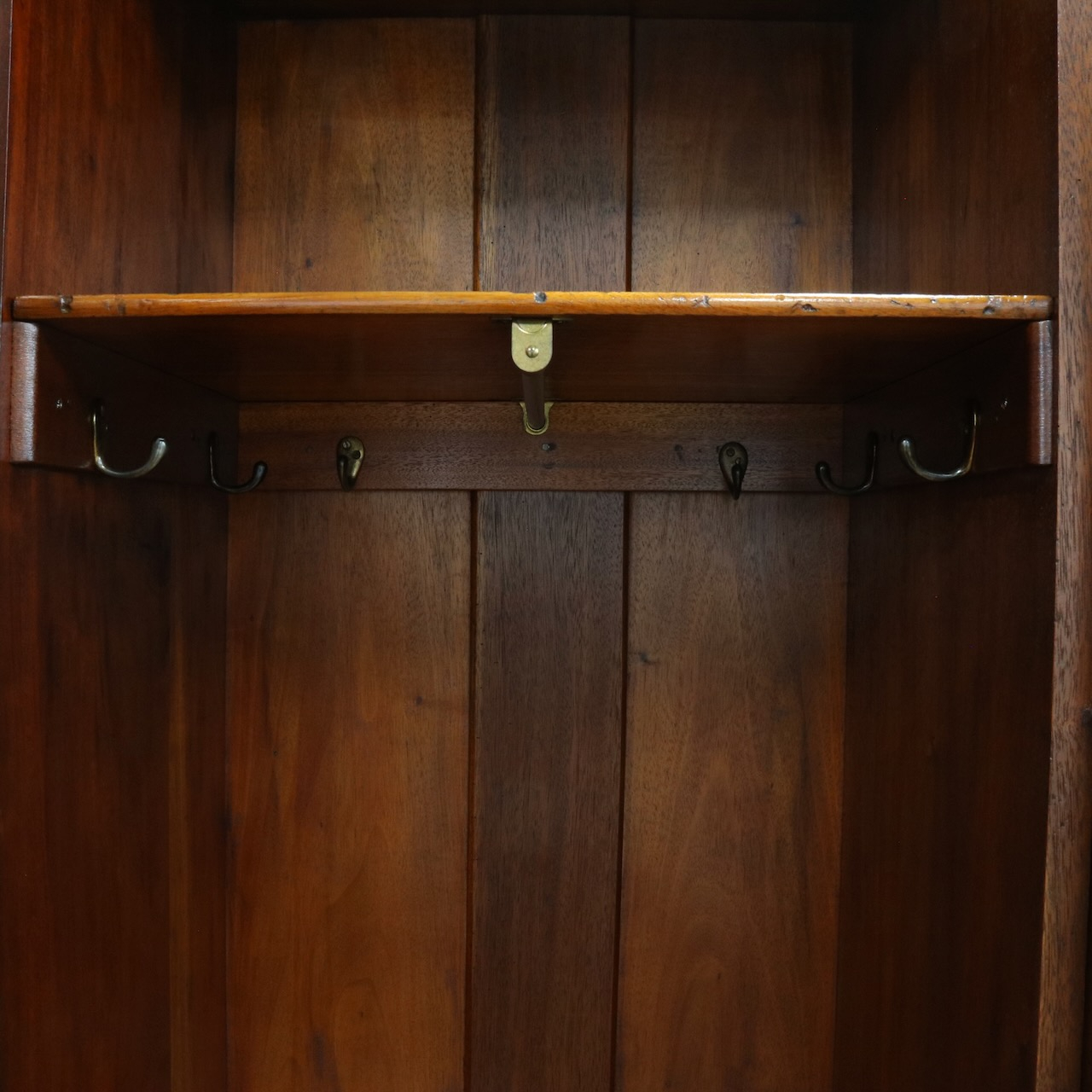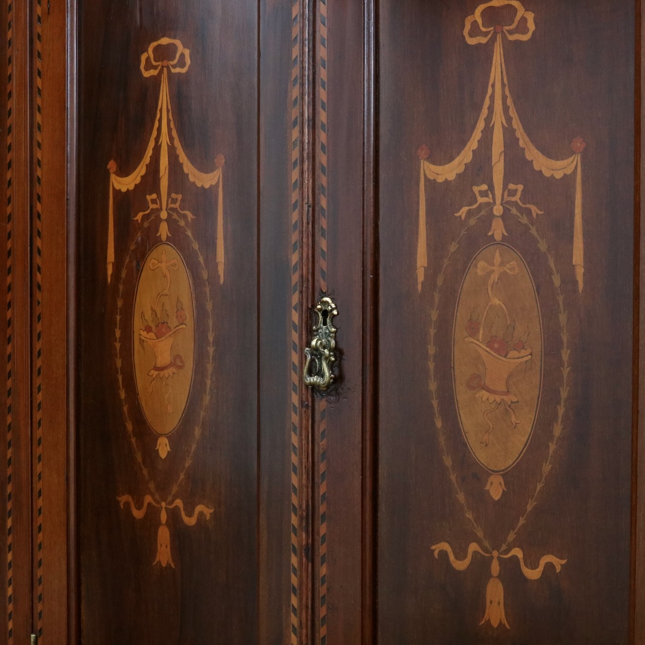 1920年代、マホガニーのワードローブ。花やリボンのインレイが施された優雅なデザイン。たっぷりとした収納力で衣類一式を美しく収納出来ます。ミラー付きなので身支度を整える時にも便利です。