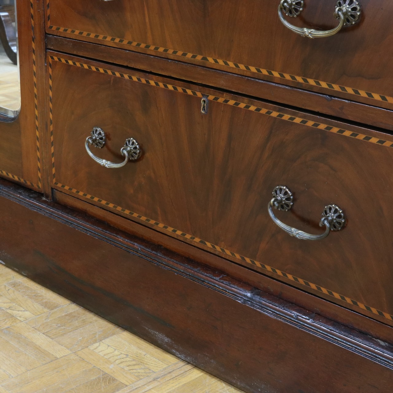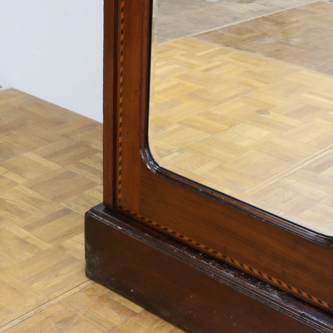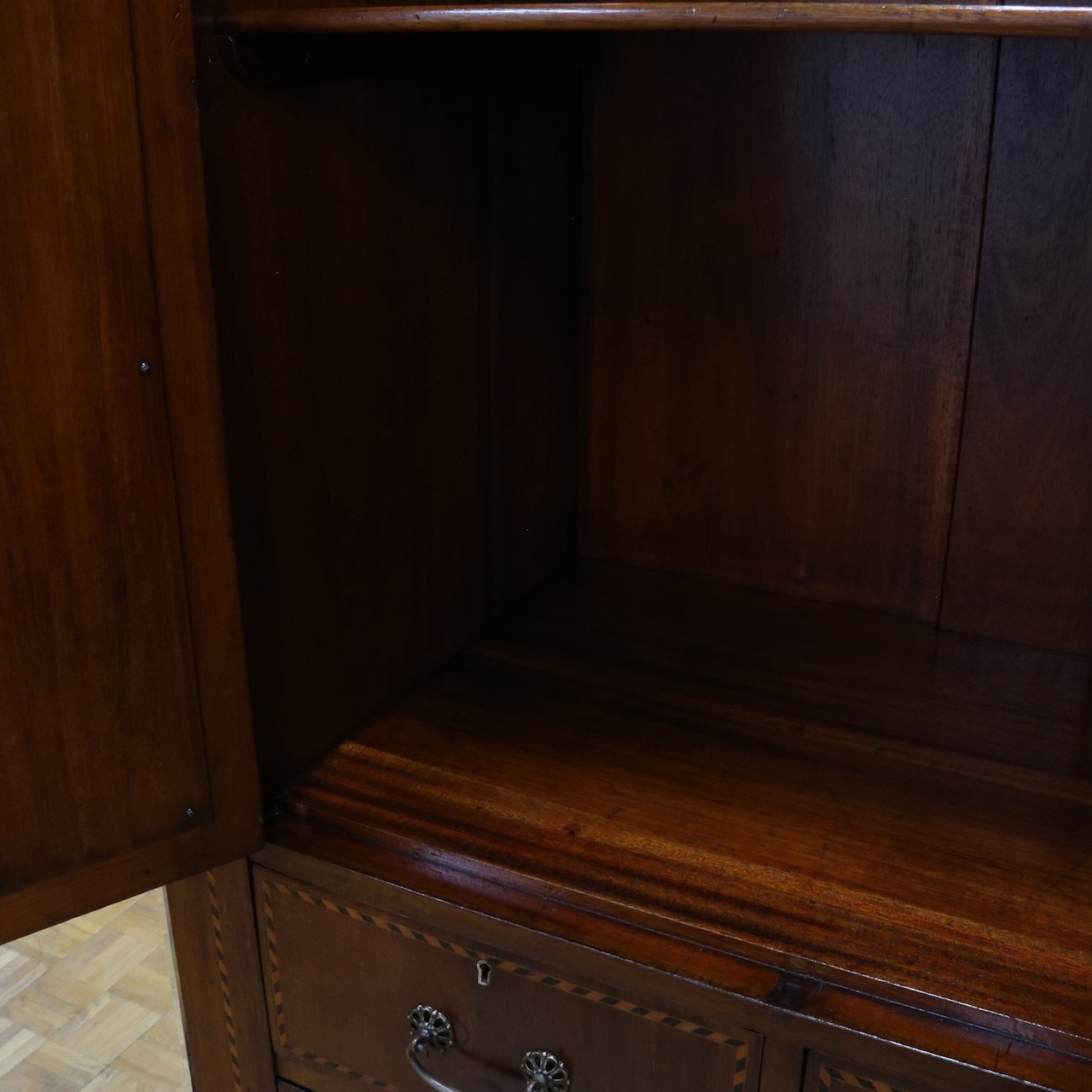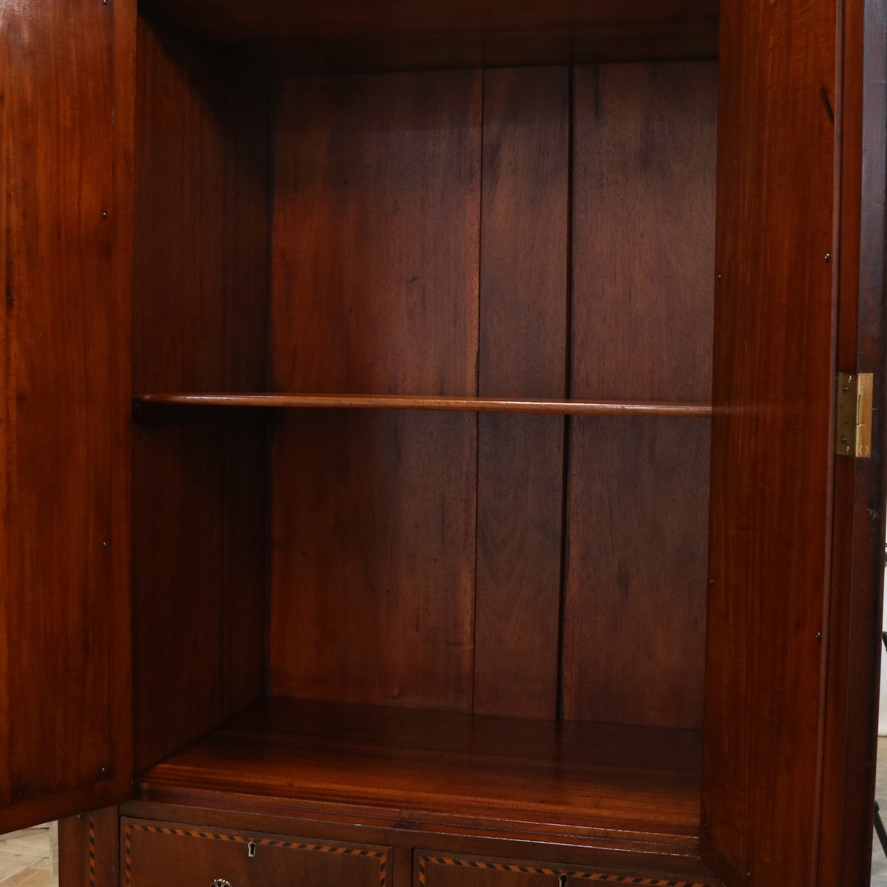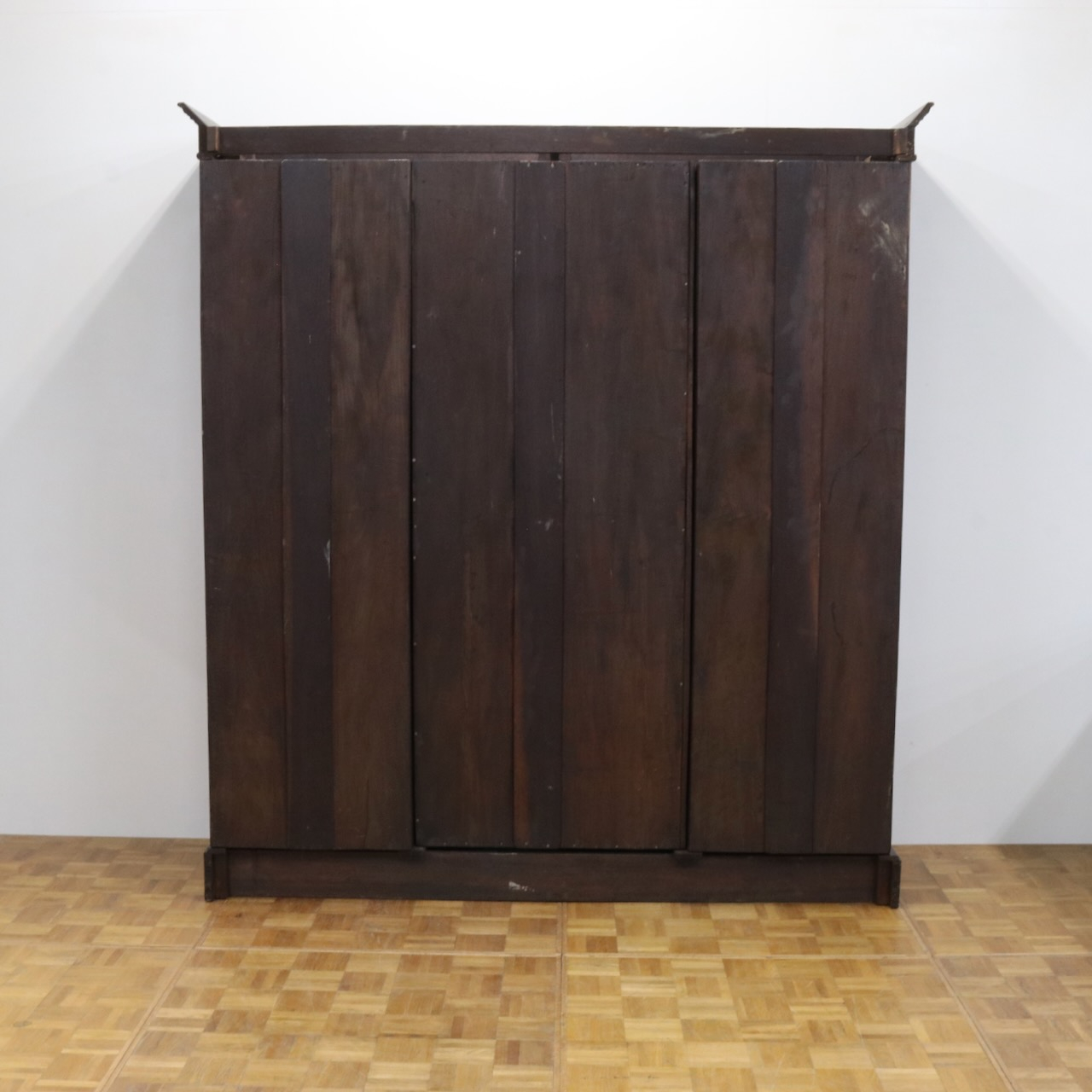 1920年代、マホガニーのワードローブ。花やリボンのインレイが施された優雅なデザイン。たっぷりとした収納力で衣類一式を美しく収納出来ます。ミラー付きなので身支度を整える時にも便利です。