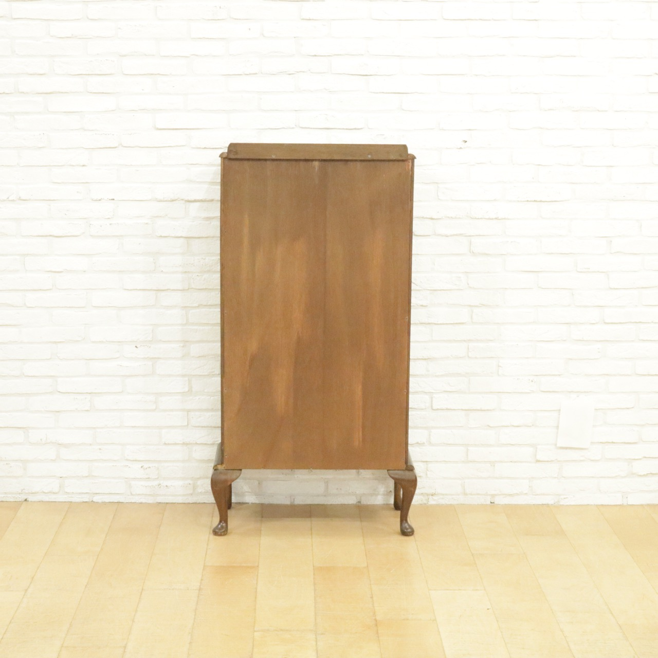ガラス扉の縦桟と脚元のクラシックなカブリオールレッグがポイントです。