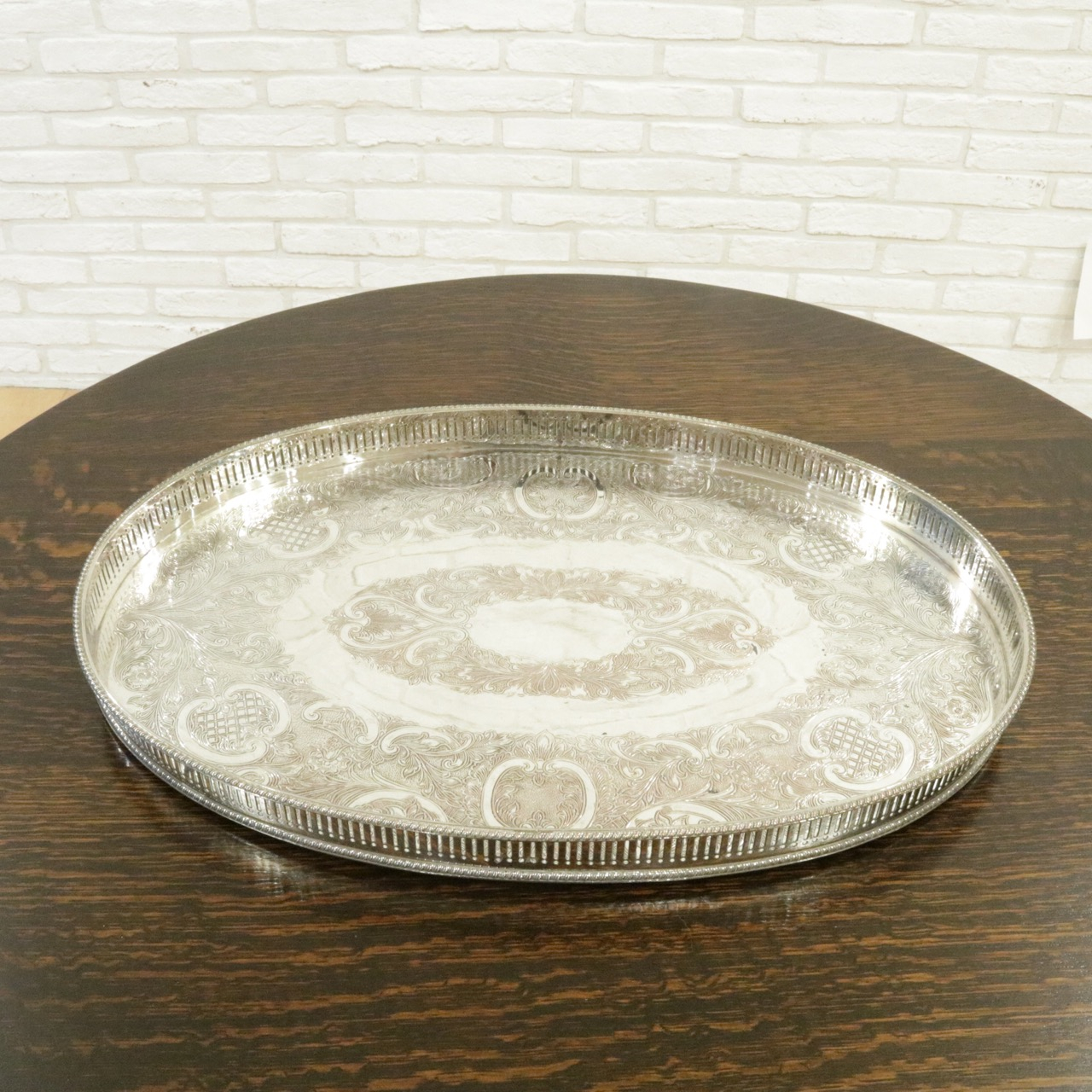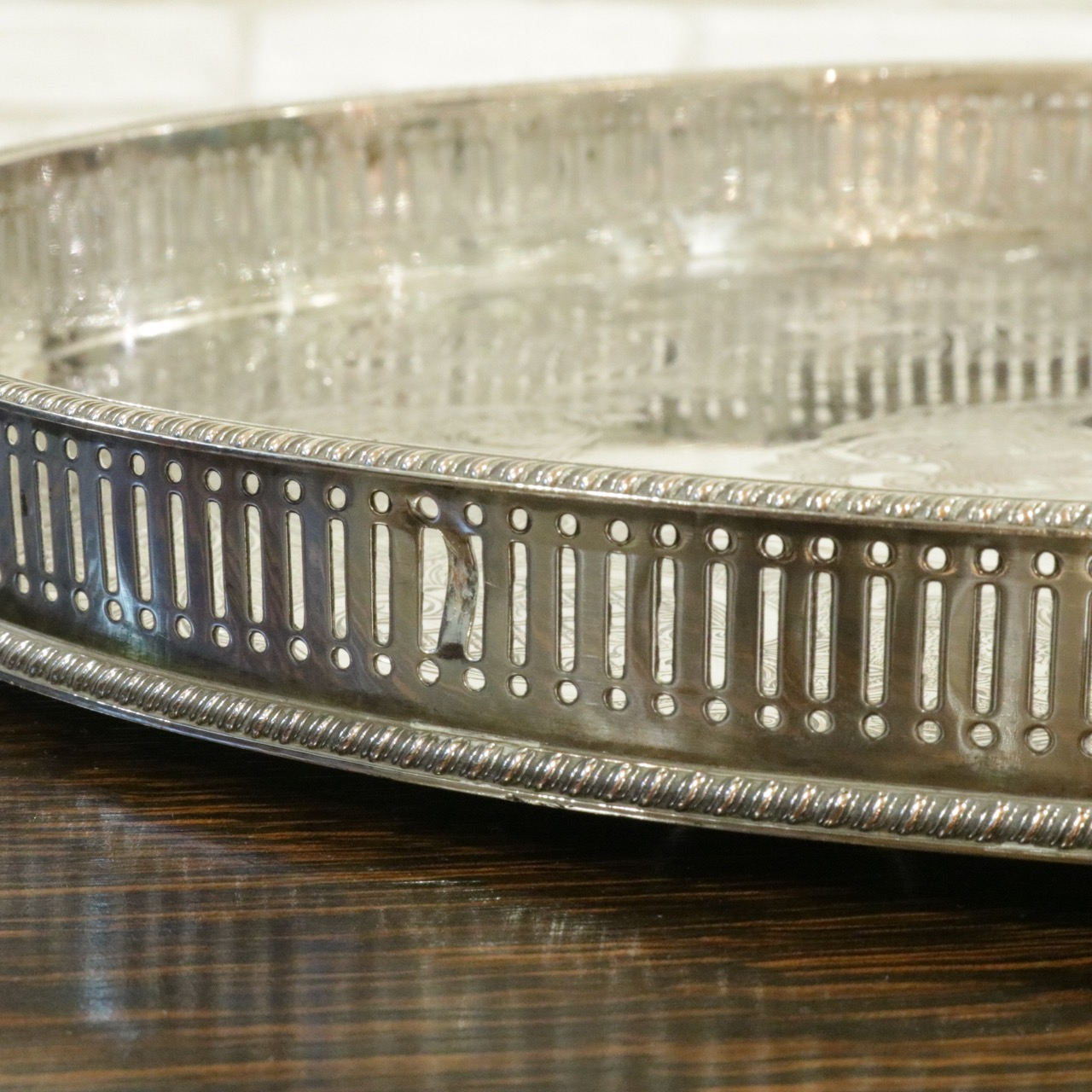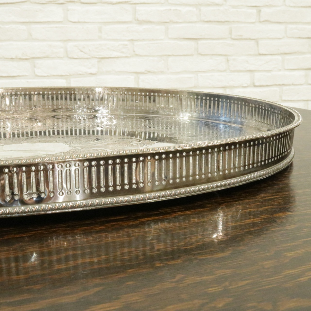 1890年代、オーバル型のギャラリー付きシルバープレートのティートレイです。
