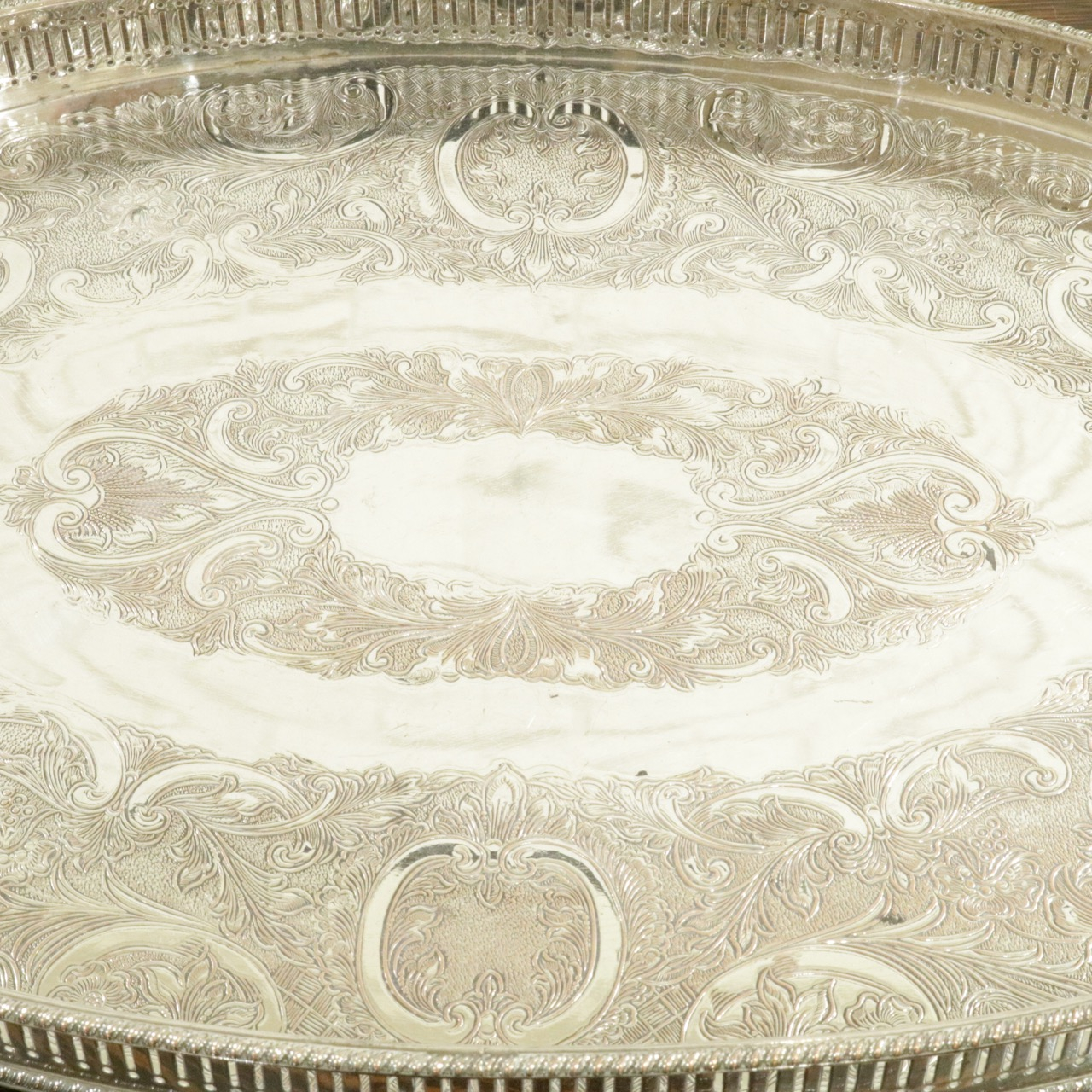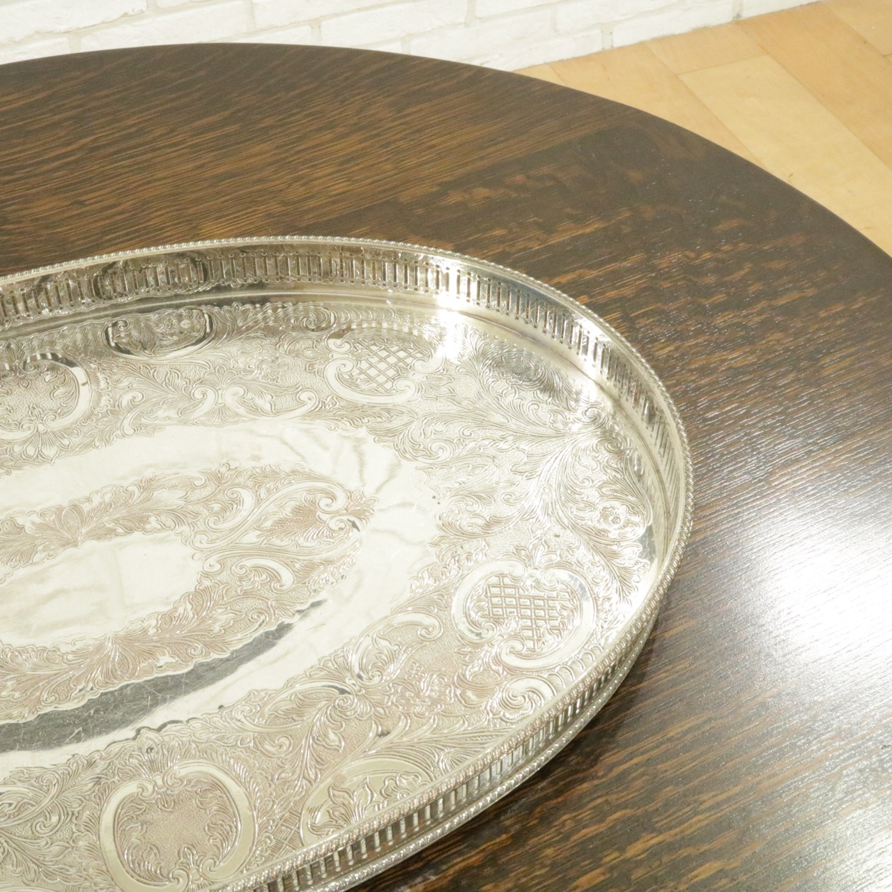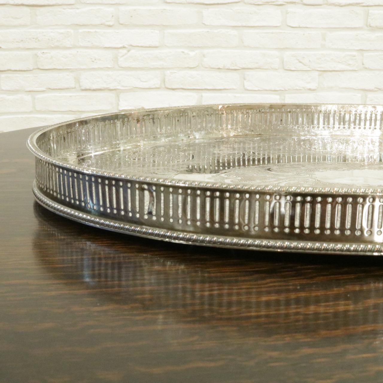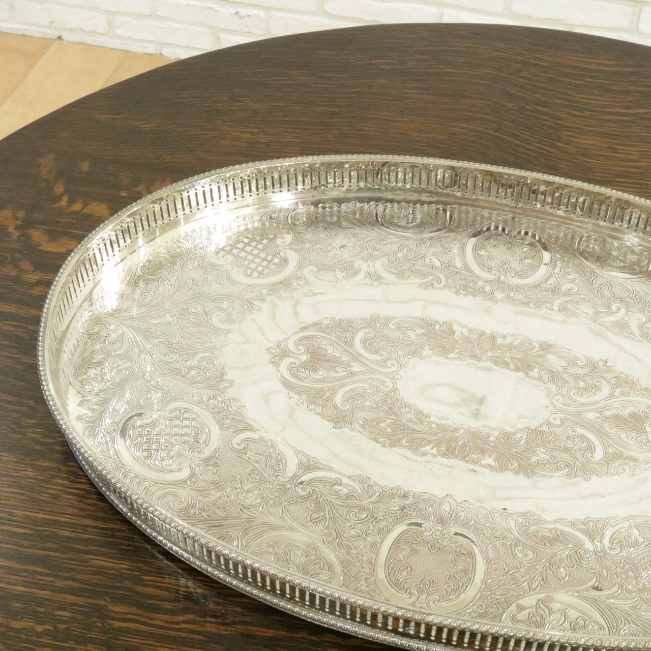 1890年代、オーバル型のギャラリー付きシルバープレートのティートレイです。