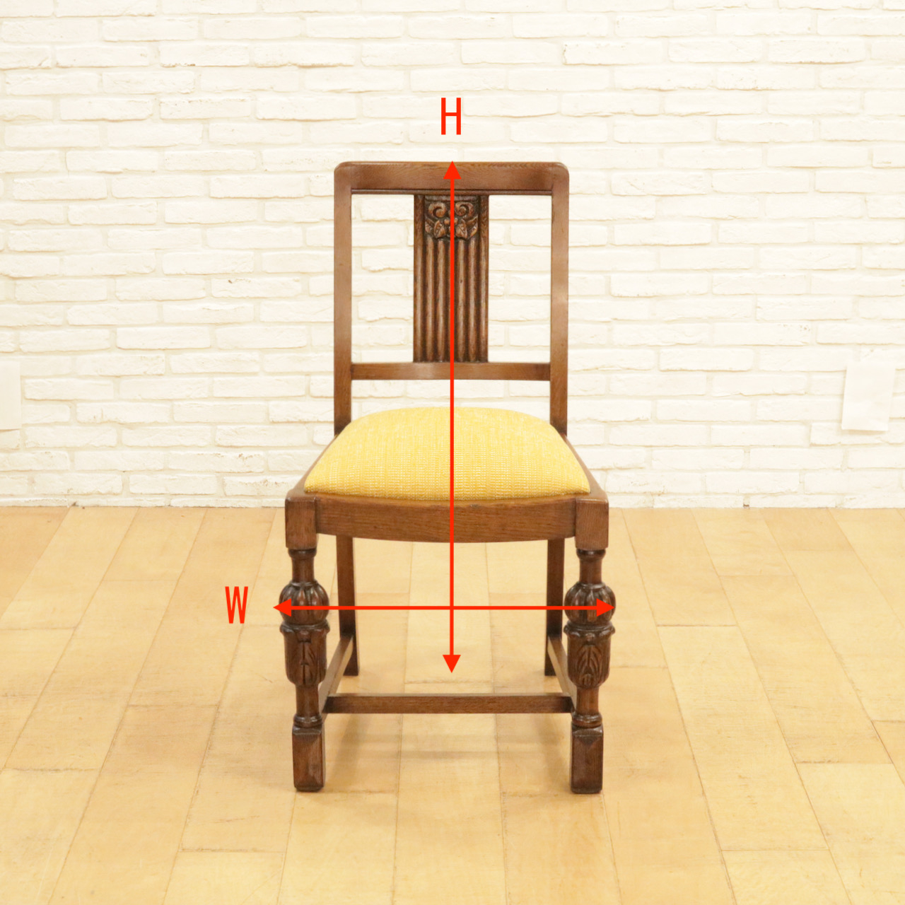 配送料の目安 ▶︎1930年代、オーク材のダイニングチェアー4脚セット。背もたれの彫刻や前脚のブルボースが特徴です。