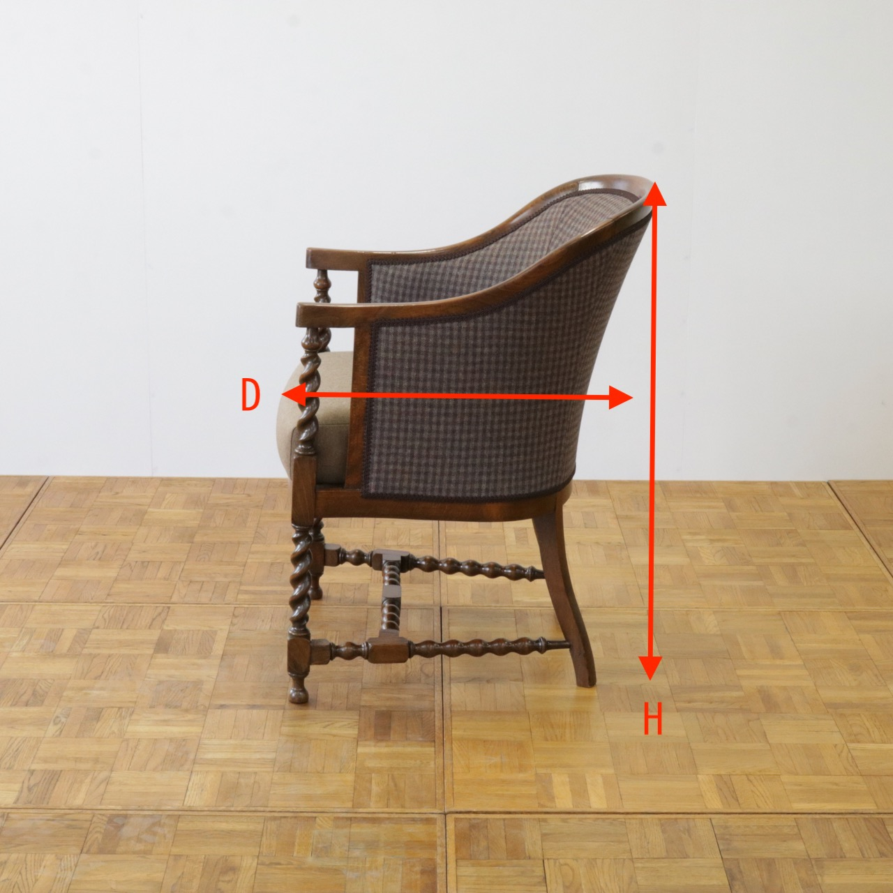 特に脚周りはストレッチャーも含めて異なるデザインの挽物が取り入れられ、アンティークらしさを感じさせます。