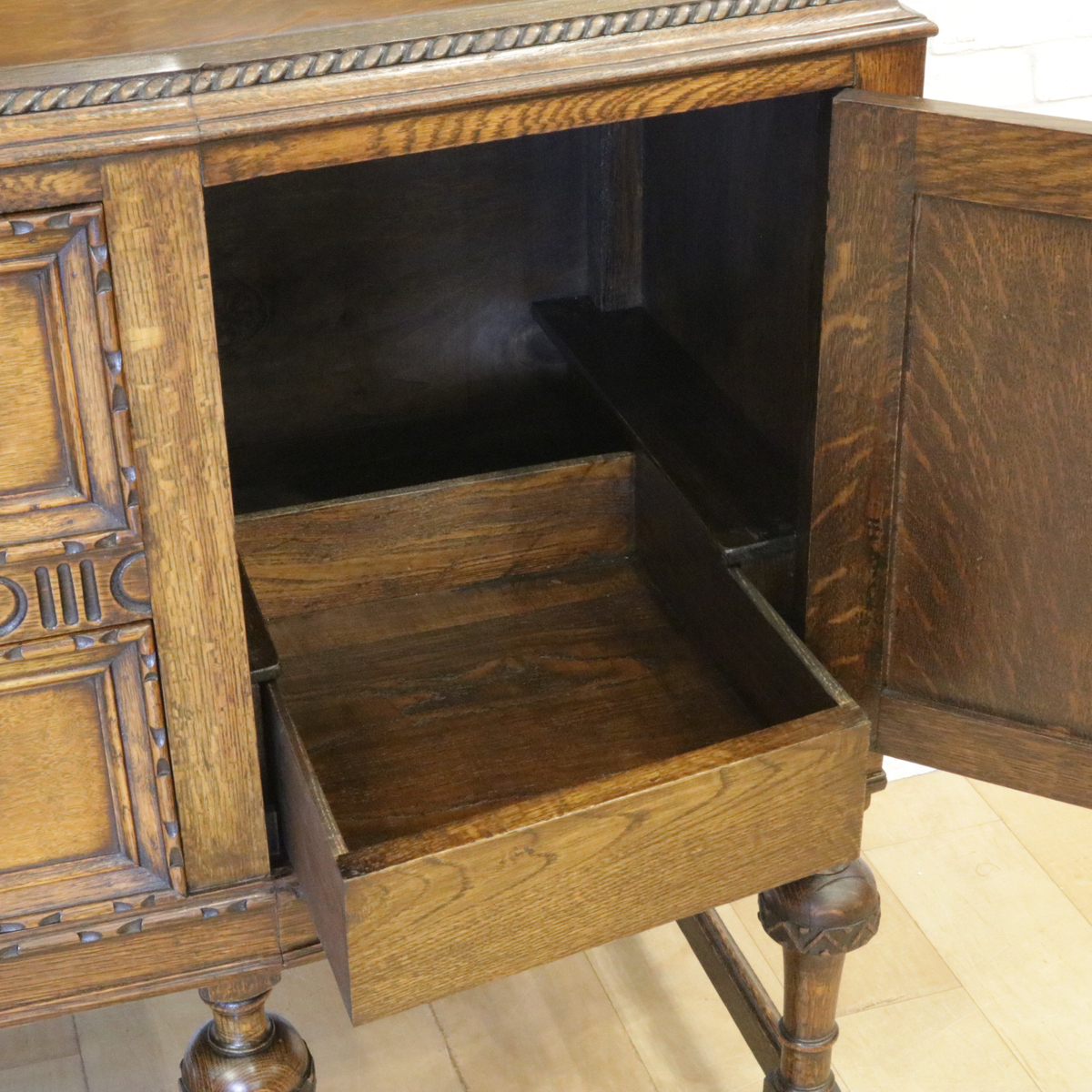 左右にコラムが配され、パネルにも美しいレリーフが施された重厚感のあるサイドボードです。
