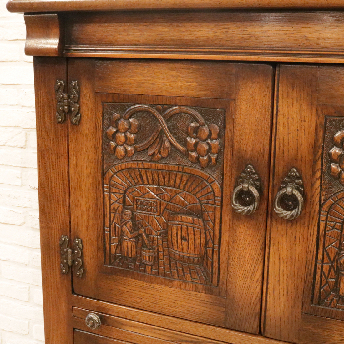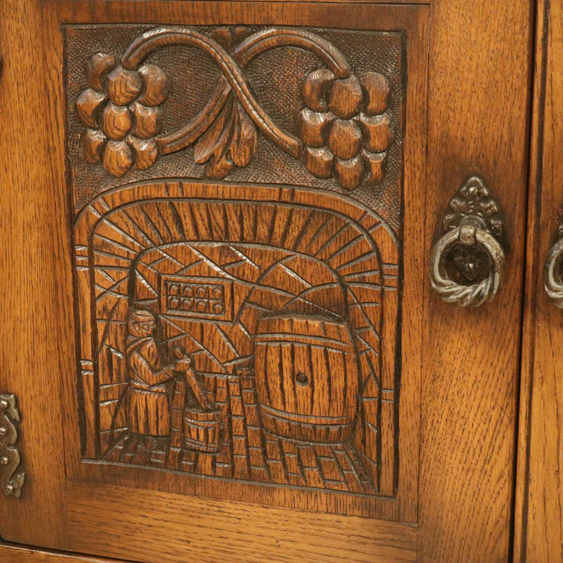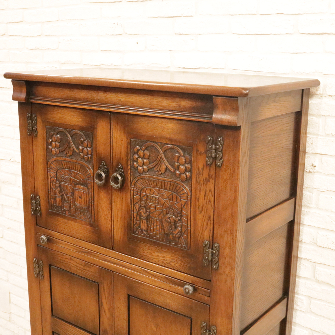 上段の扉にはワインを作る人々の様子が彫り込まれています。