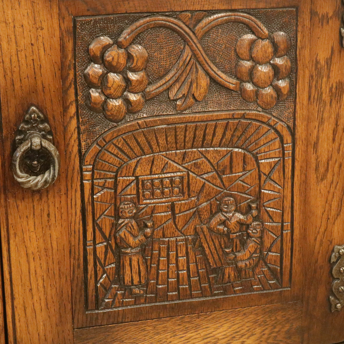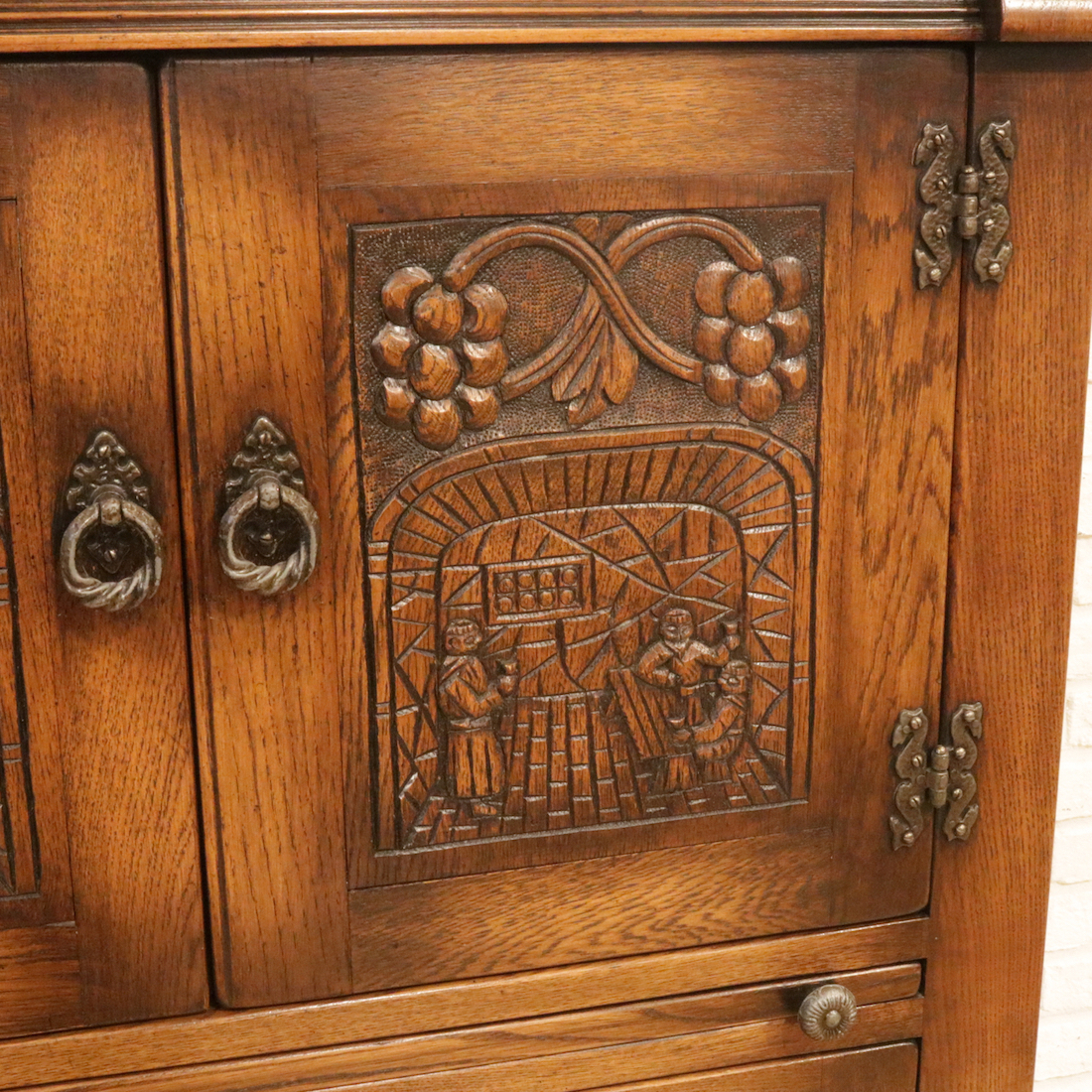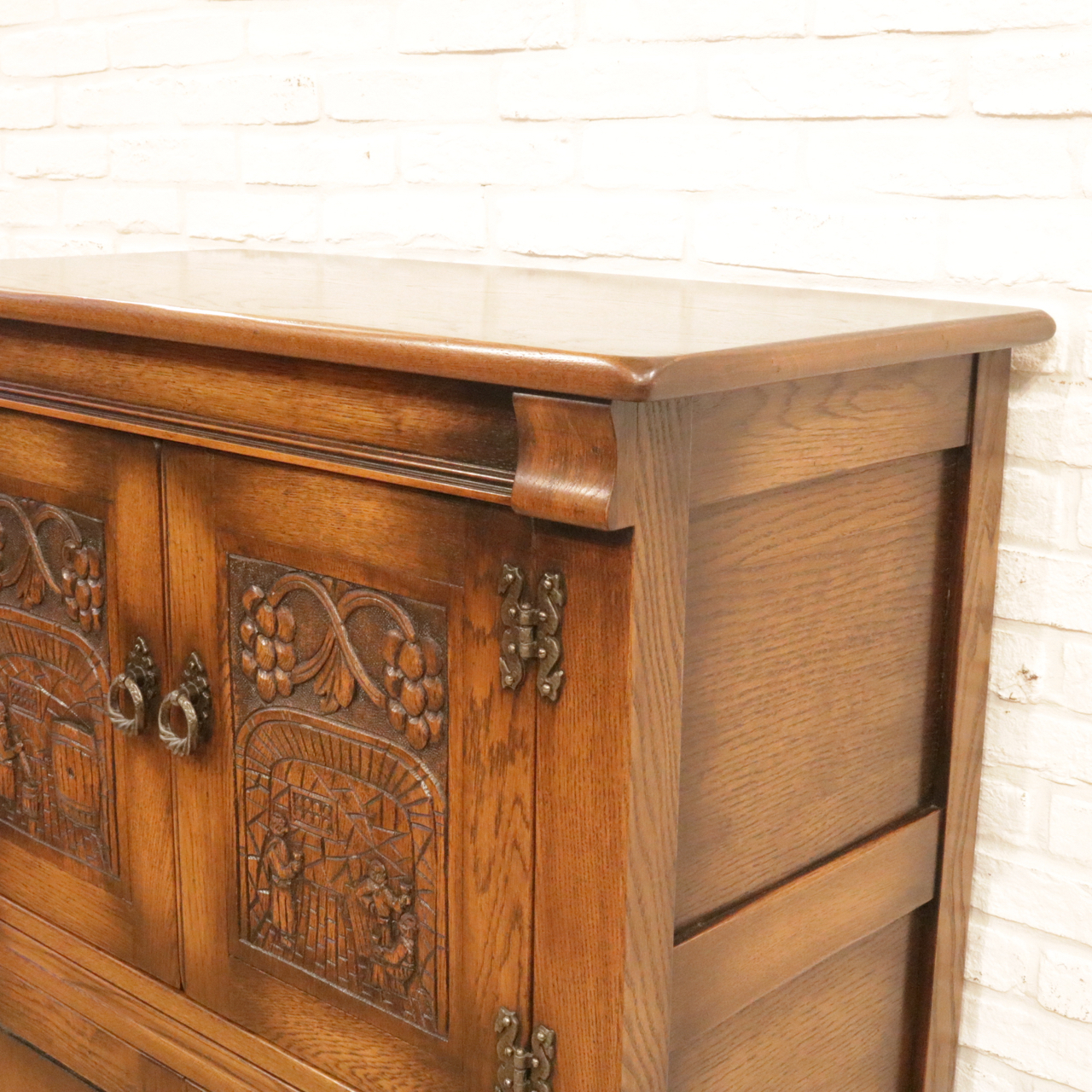 上段の扉にはワインを作る人々の様子が彫り込まれています。