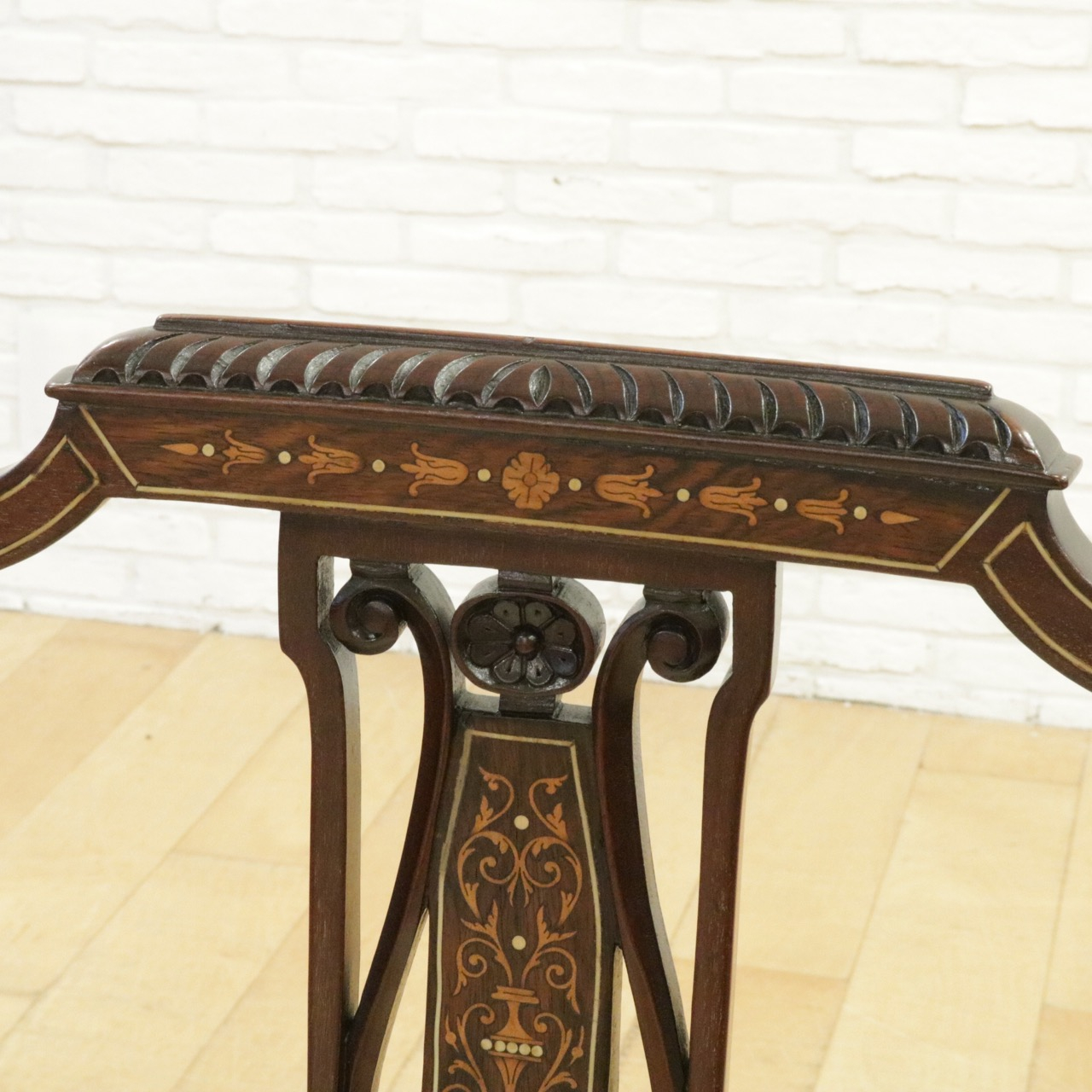 ハスクやアカンサス、ポット等、アンティークの伝統的なモチーフのインレイが配され、そのインレイを際立たせるレリーフの仕上がりも見事です。