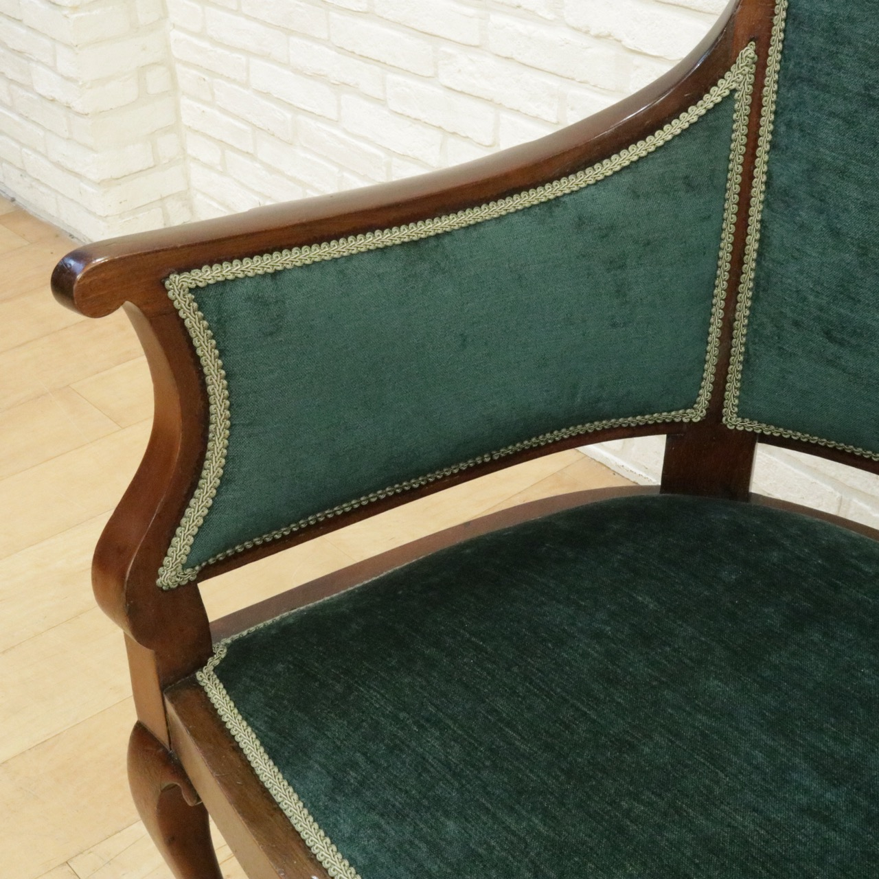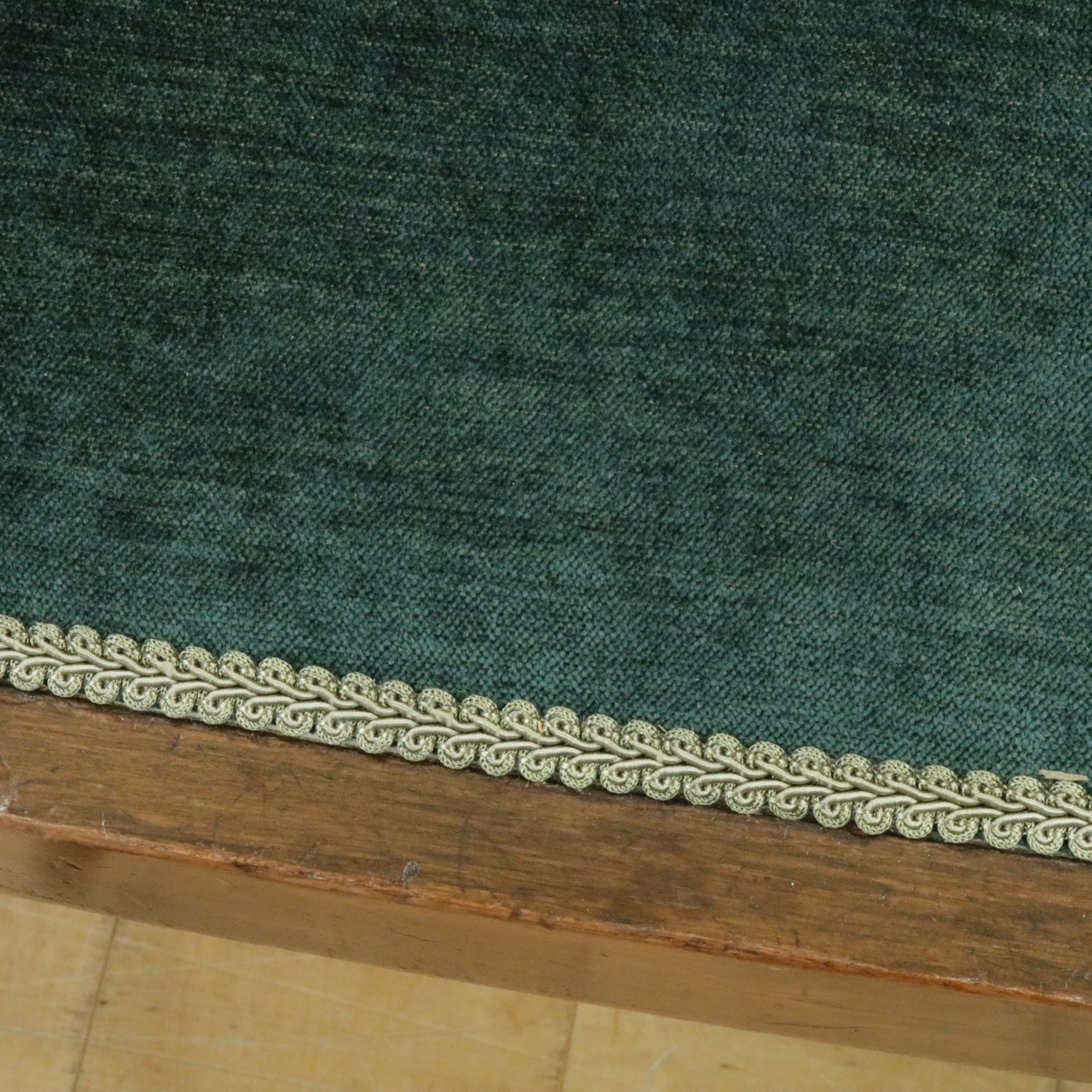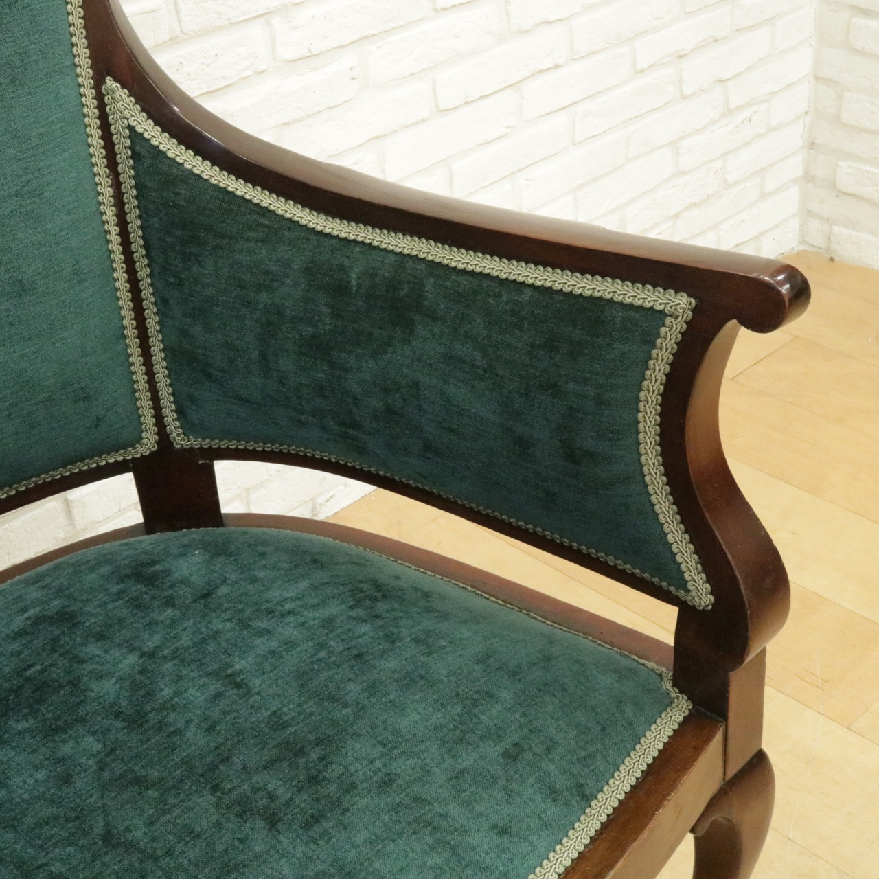 背や座面等の生地面は少し青みがかった深いグリーンの生地で張り替えました。