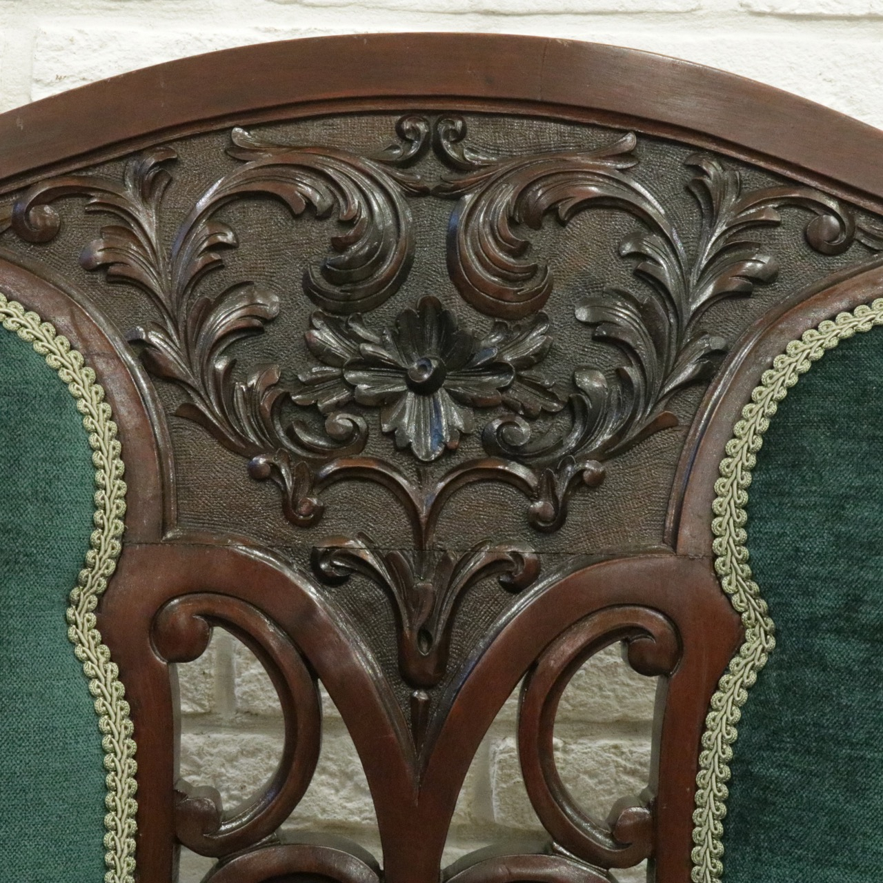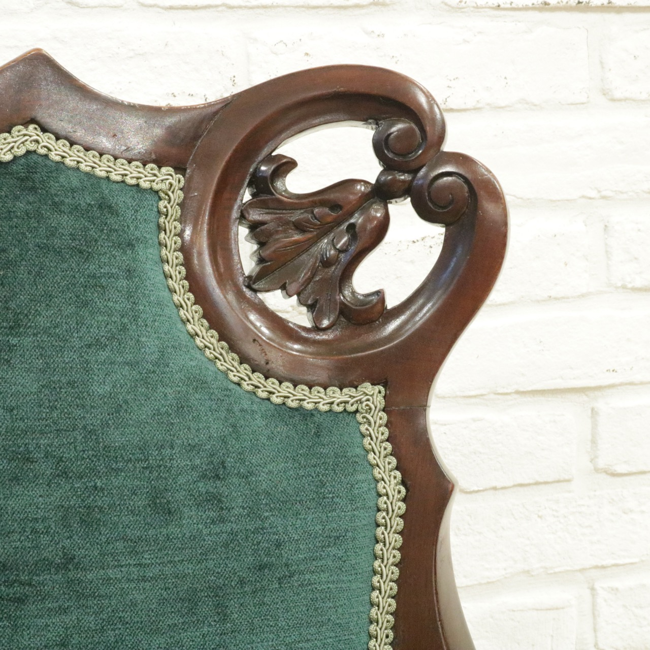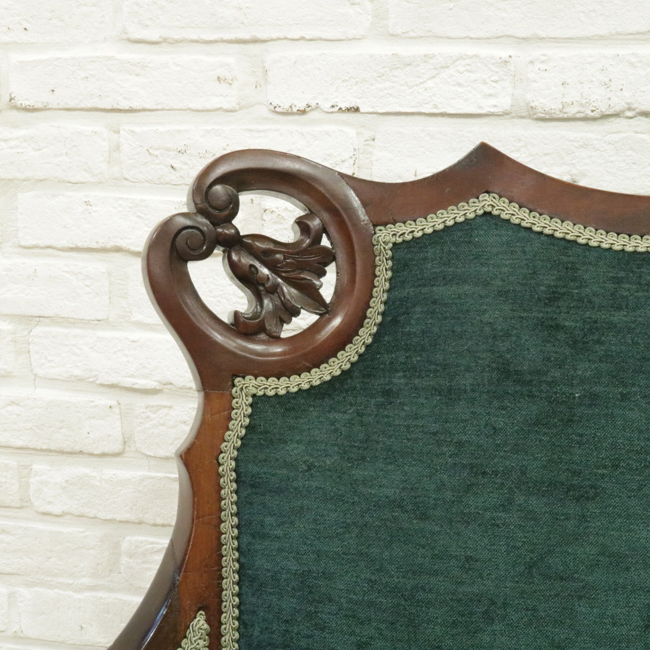 背や座面等の生地面は少し青みがかった深いグリーンの生地で張り替えました。