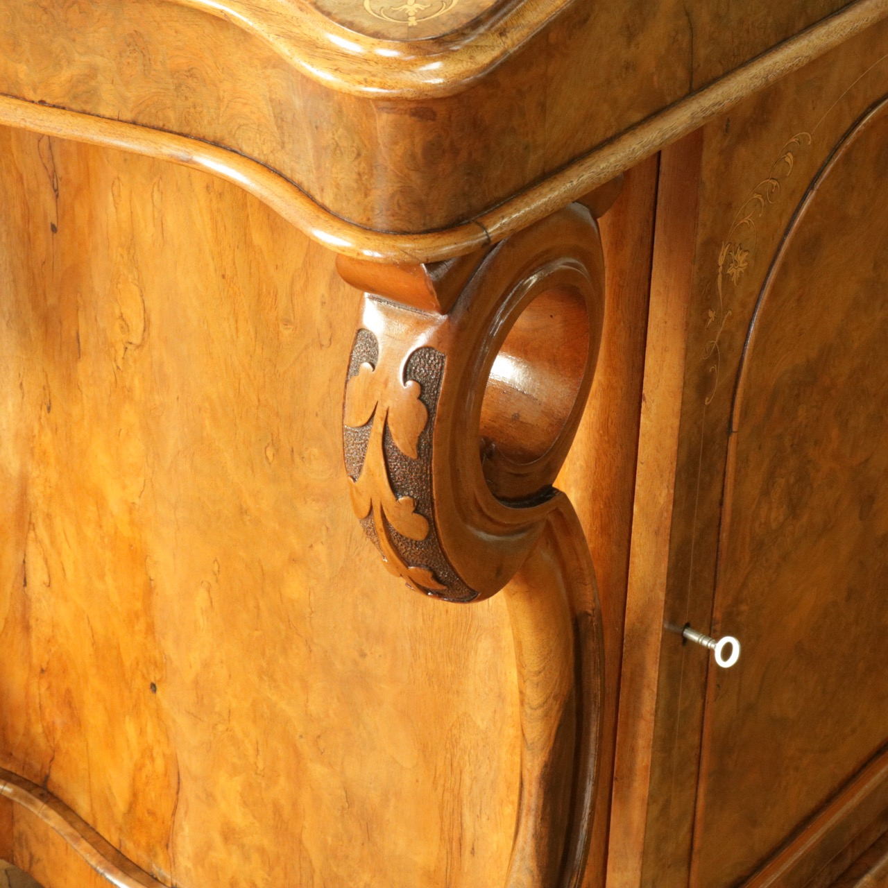 鍵穴まで施されていて精巧な造り、どこから見ても絵になるデザインです。