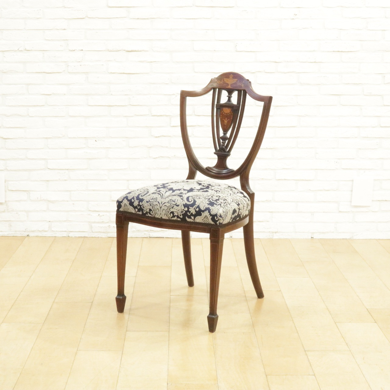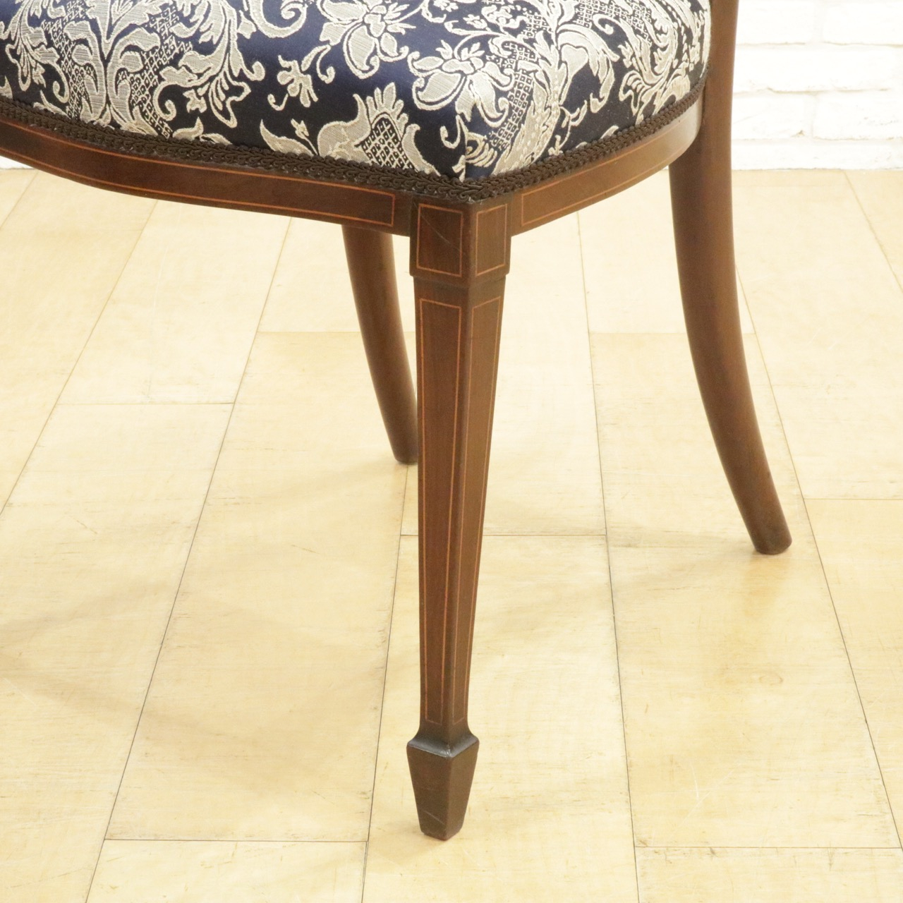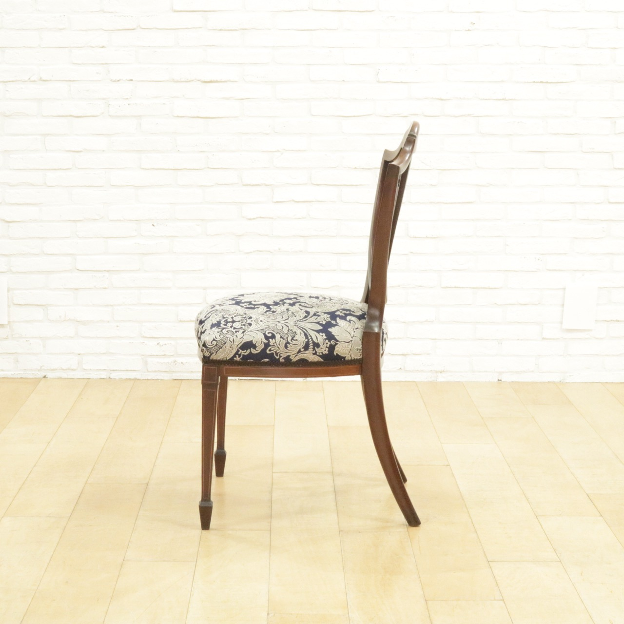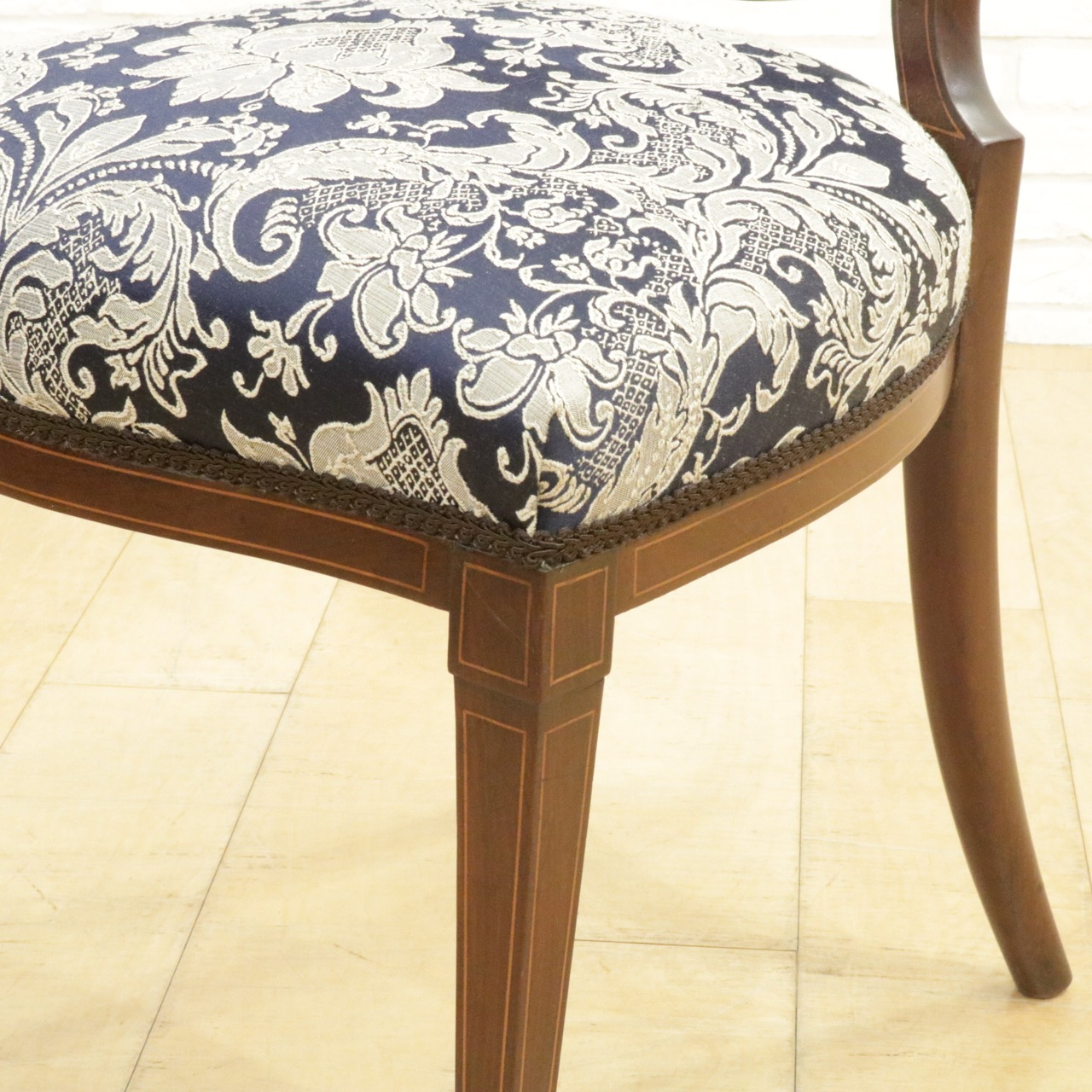 配送料の目安 ▶︎1920年代、マホガニーのサイドチェアー 。背もたれにはインレイが繊細に施され、