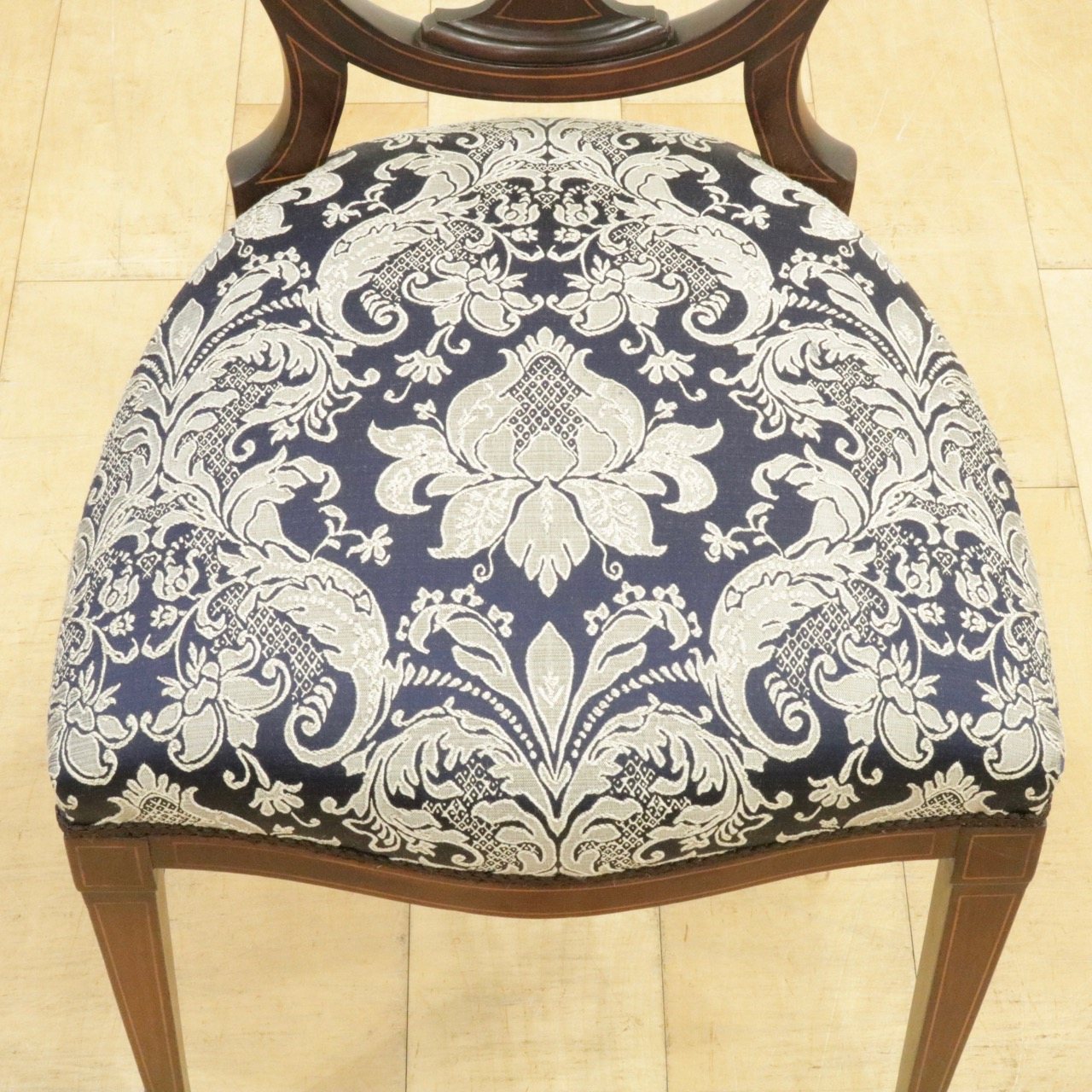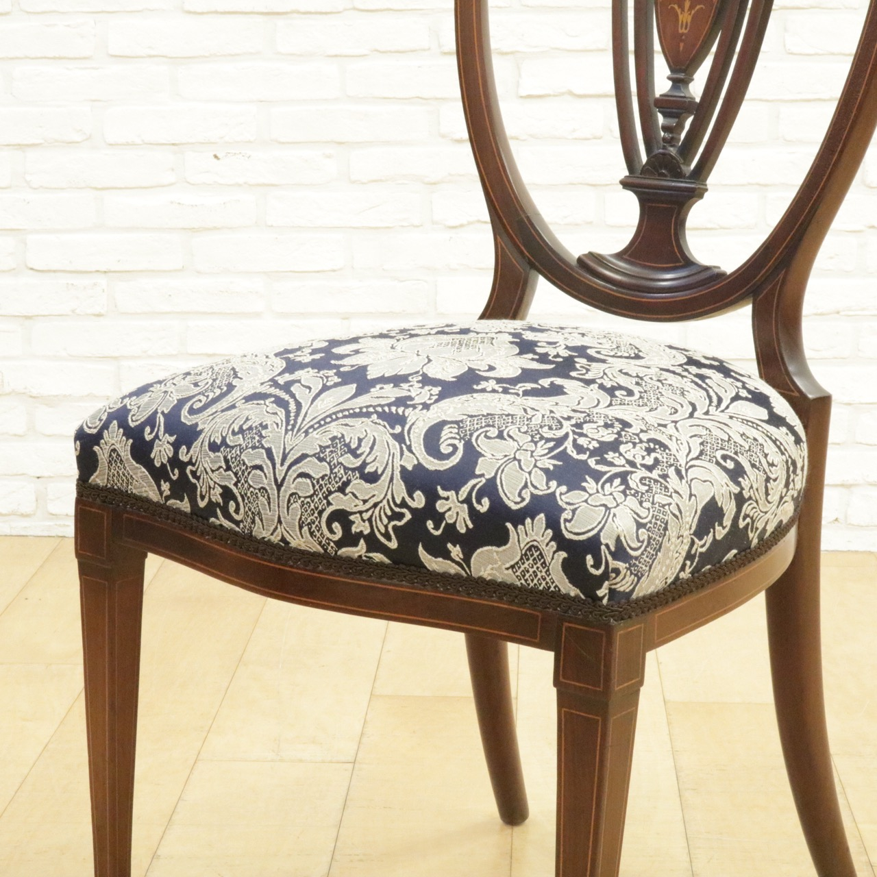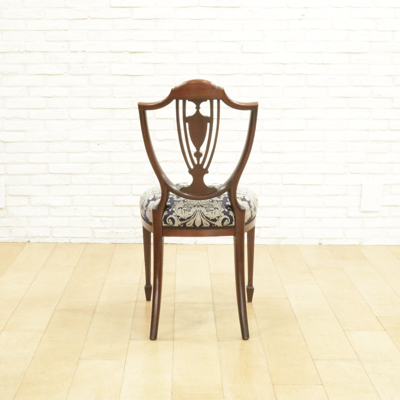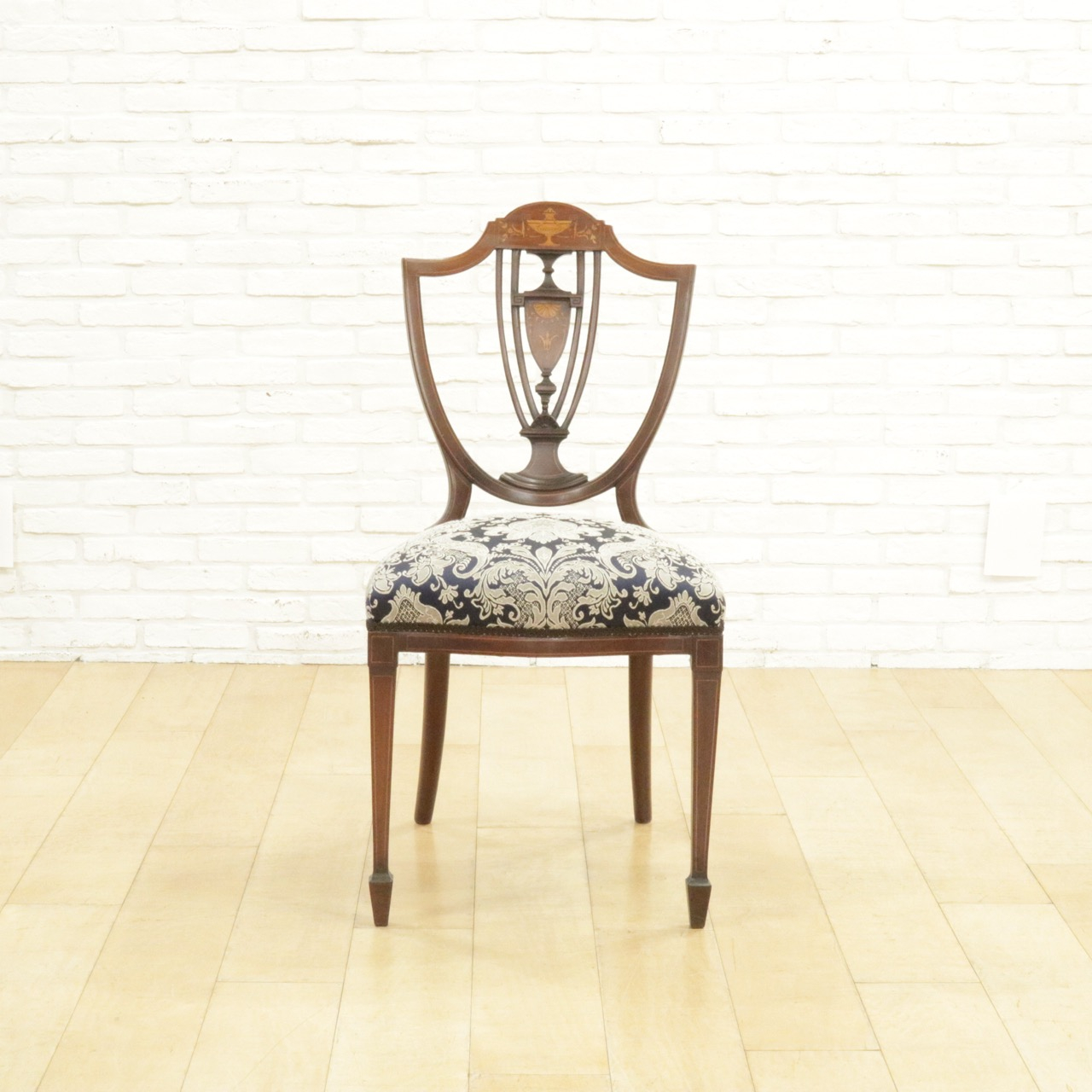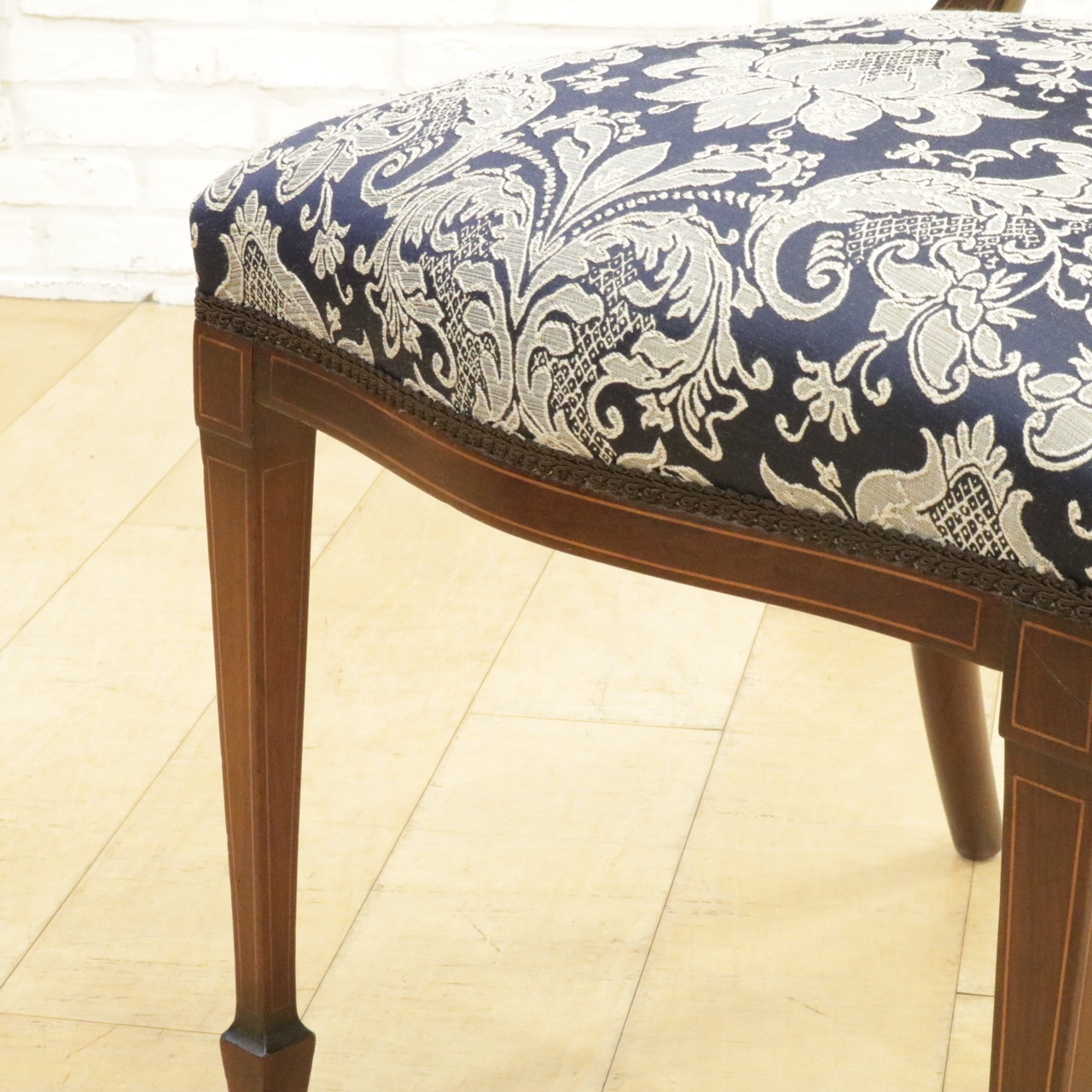配送料の目安 ▶︎1920年代、マホガニーのサイドチェアー 。背もたれにはインレイが繊細に施され、