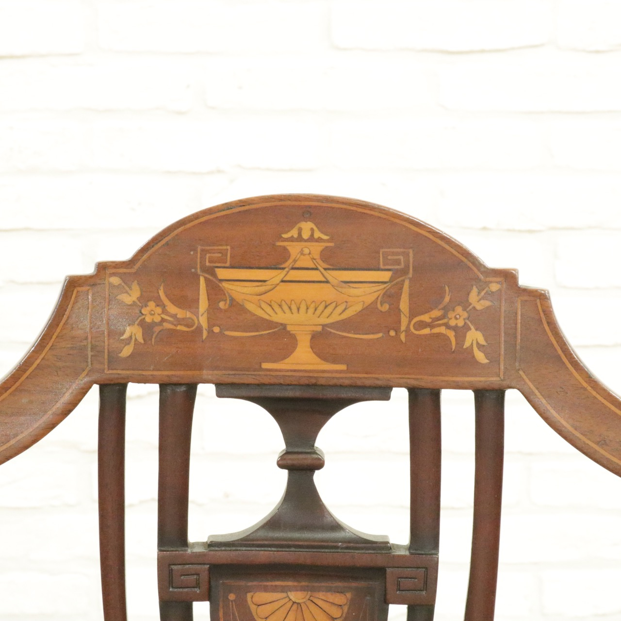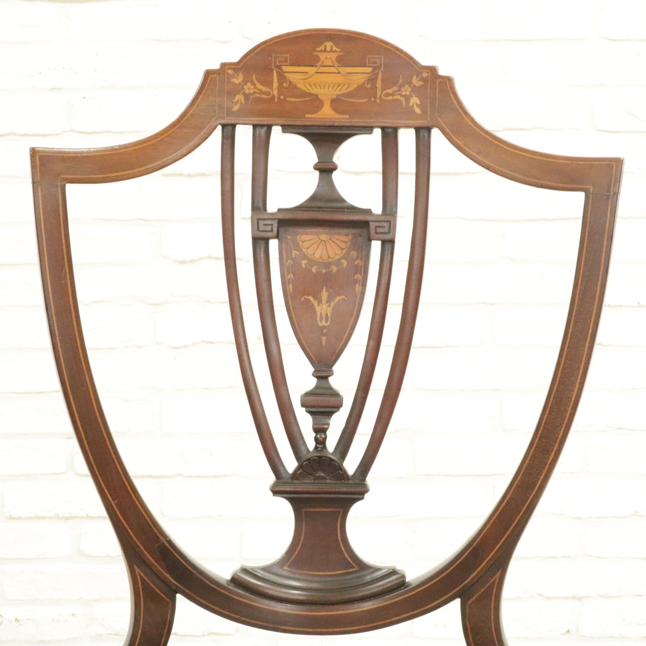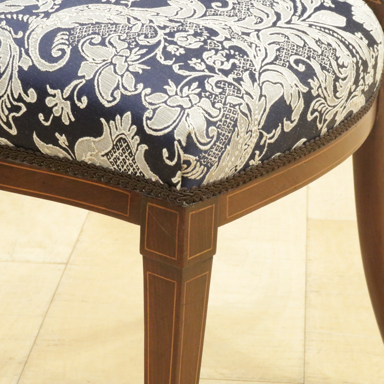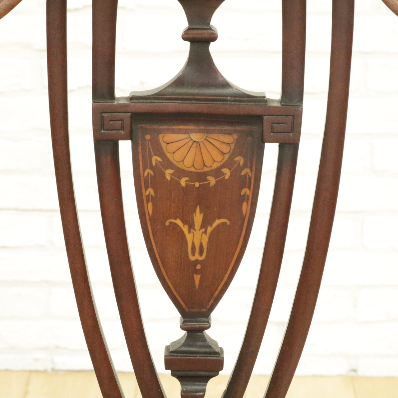 配送料の目安 ▶︎1920年代、マホガニーのサイドチェアー 。背もたれにはインレイが繊細に施され、