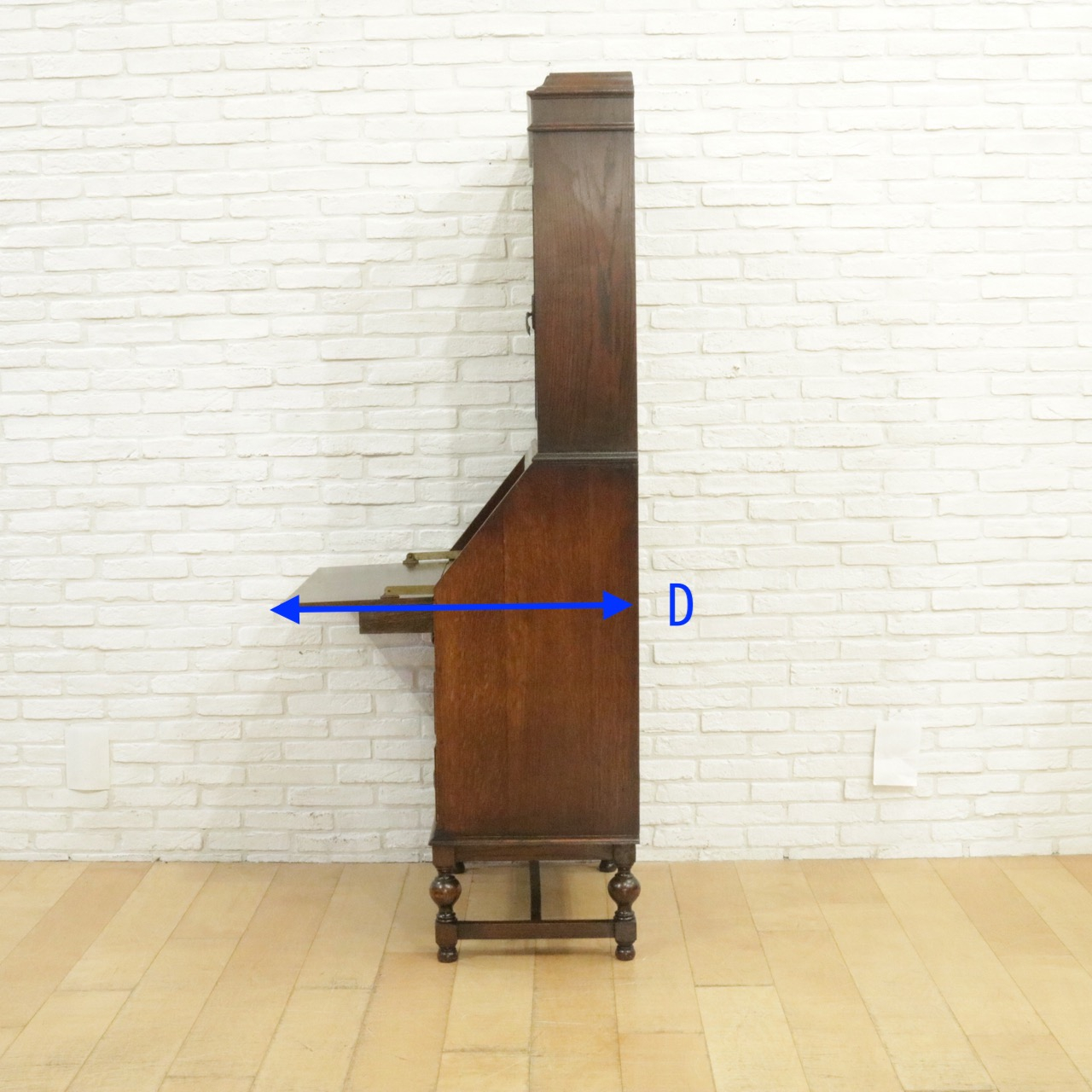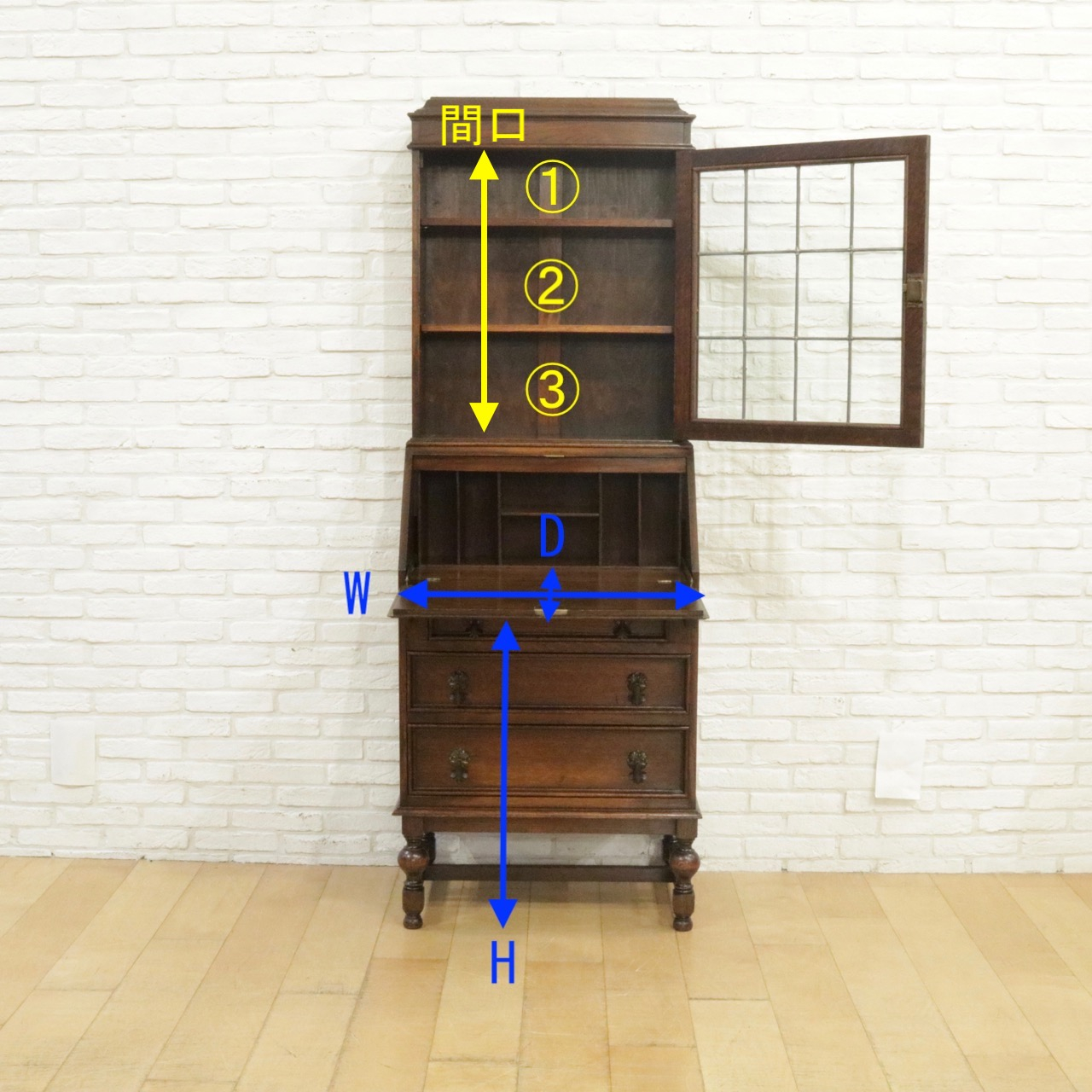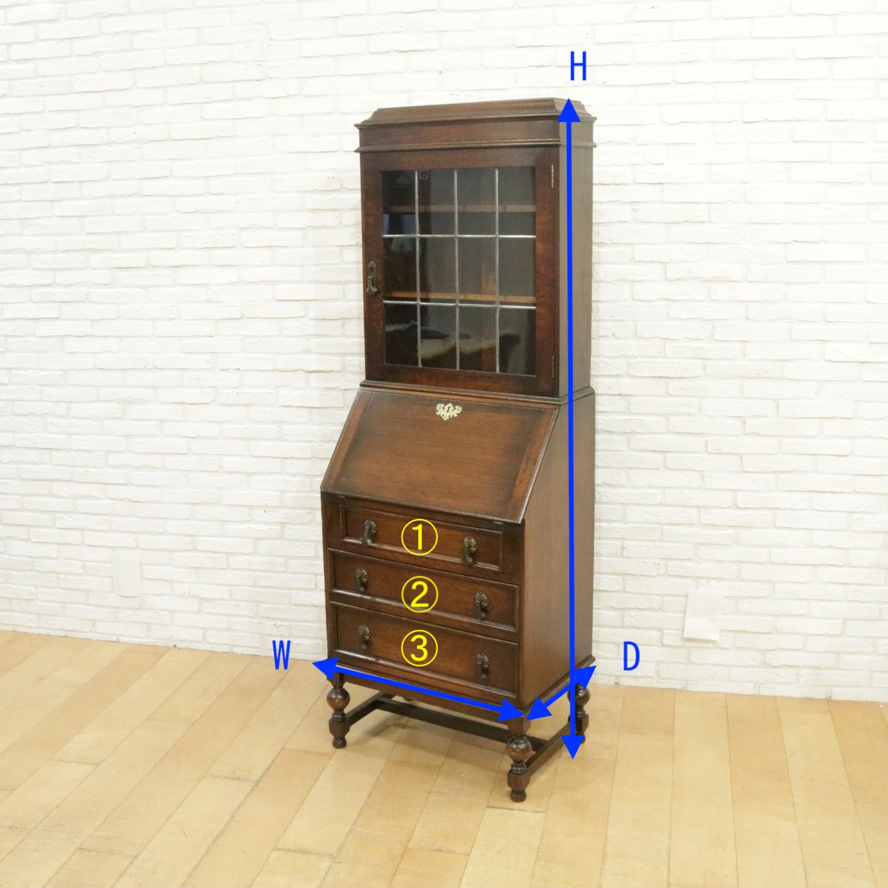 ビューローとブックケース が一体になった実用性の高いアイテム。高さは抑え目で圧迫感なくセッティングできるサイズ感。