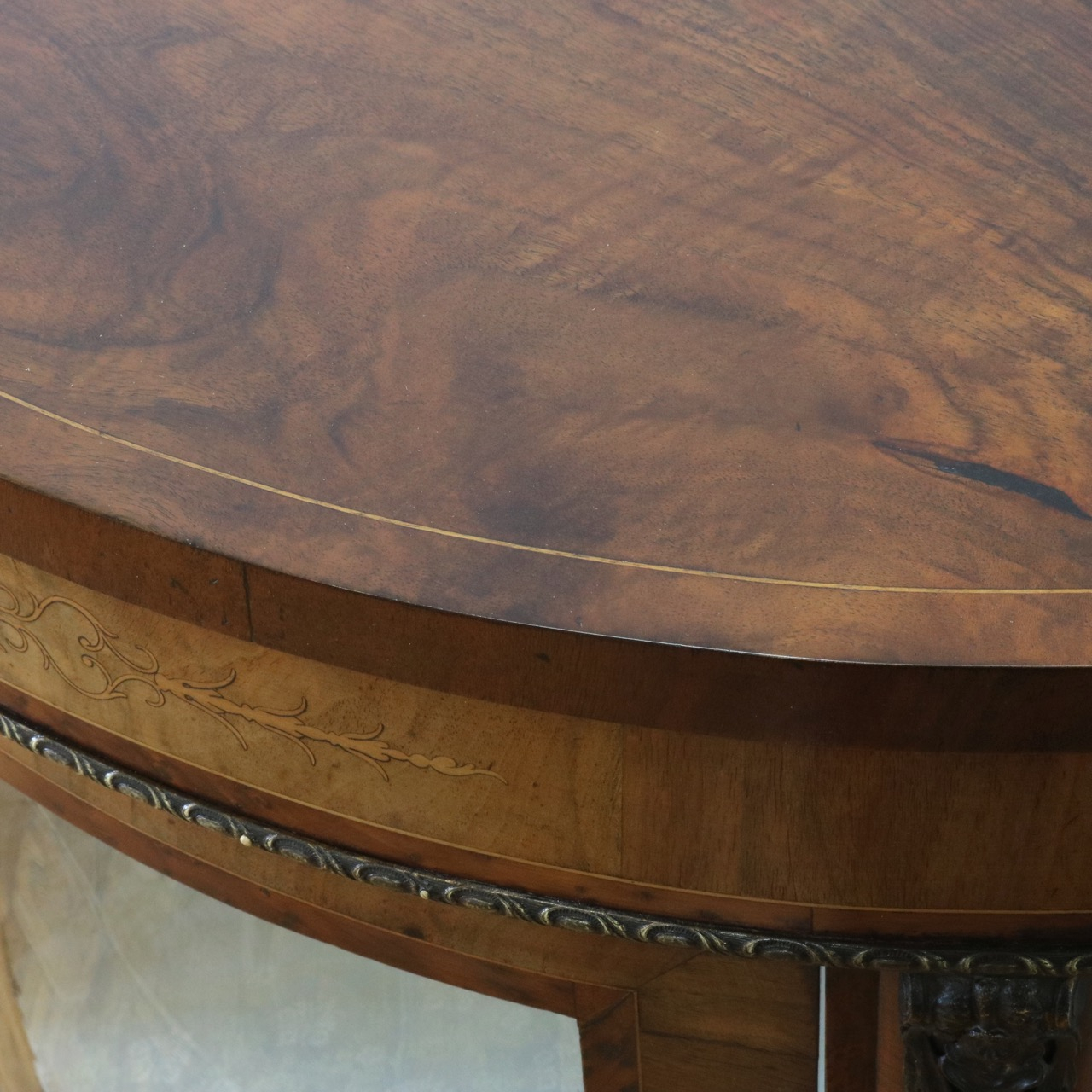 天板の縁に施された極細のインレイ。ちょっとしたデザインですが非常に高い技術です。
