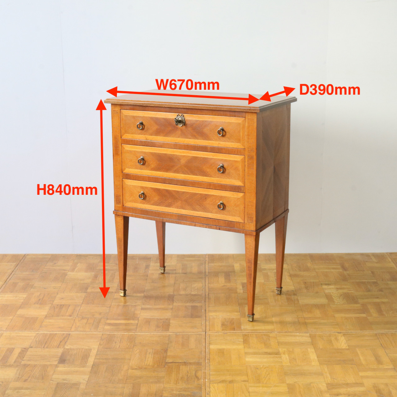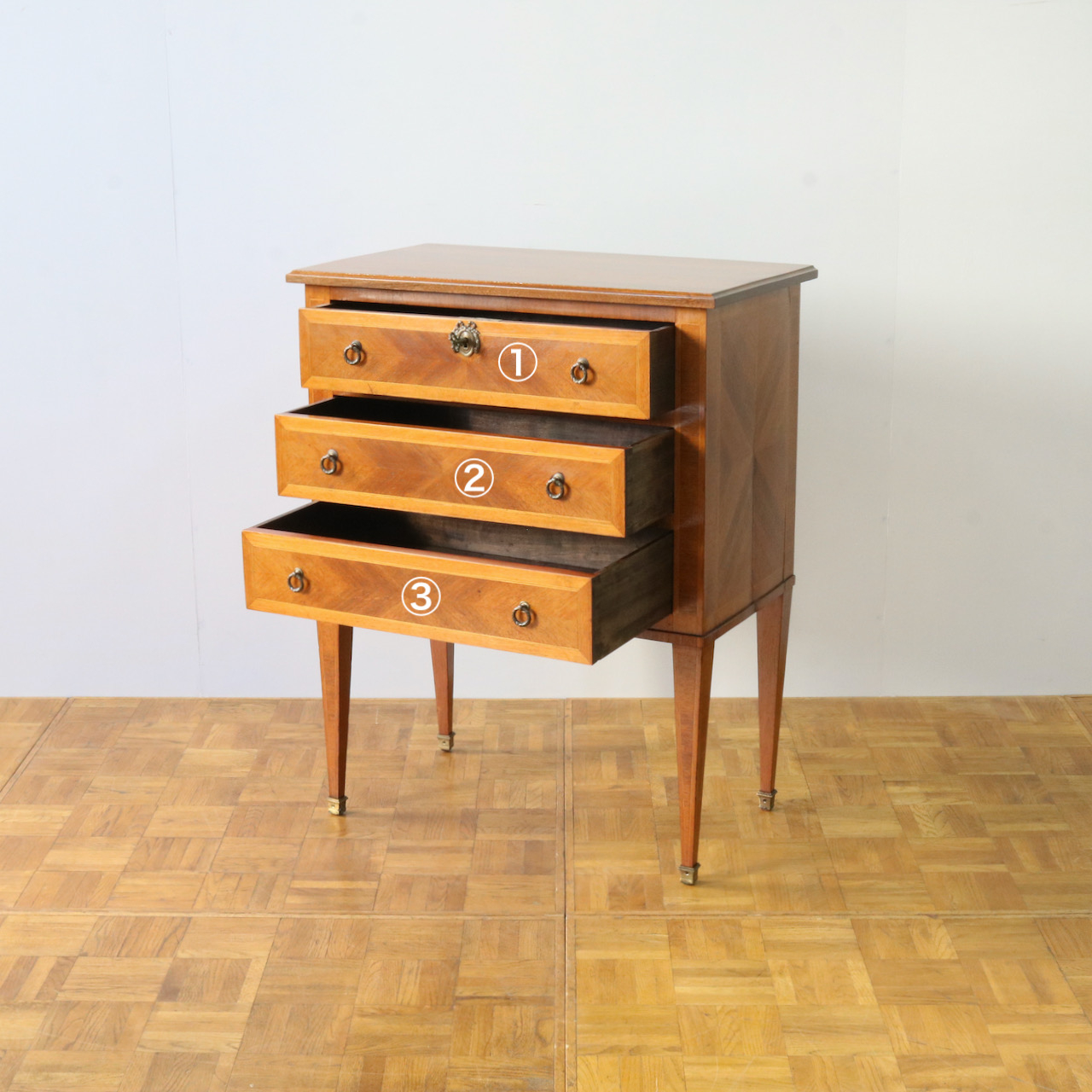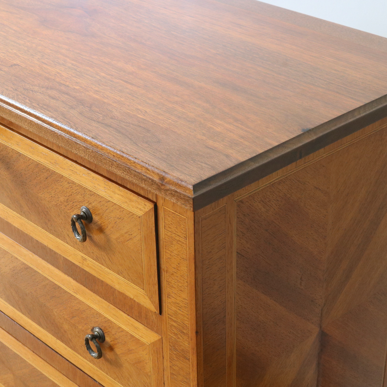配送料の目安 ▶︎1930年代、ウォールナット のチェスト。シンプルなデザインに前面の特に引き出し部分の美しい木目が引き立ちます。縁には繊細なインレイもアクセントに施されています。