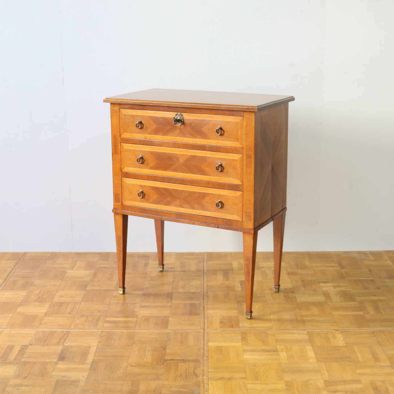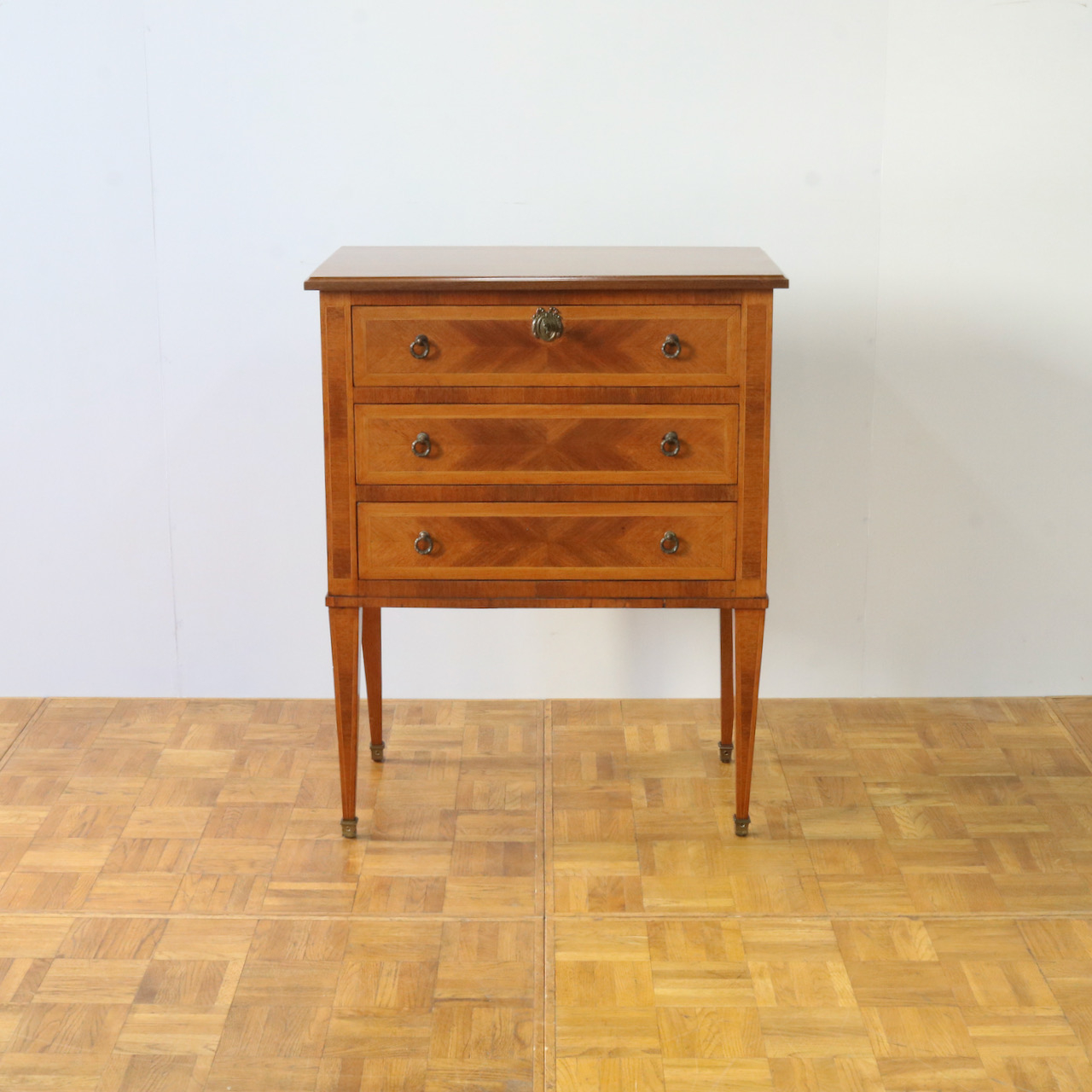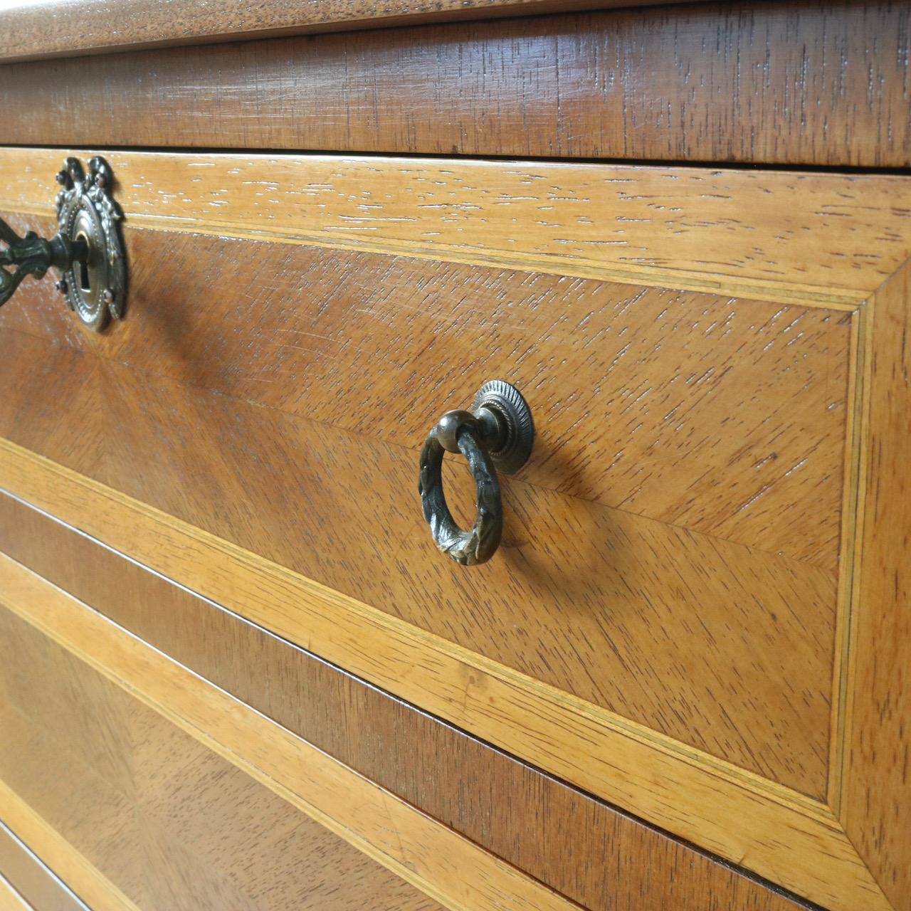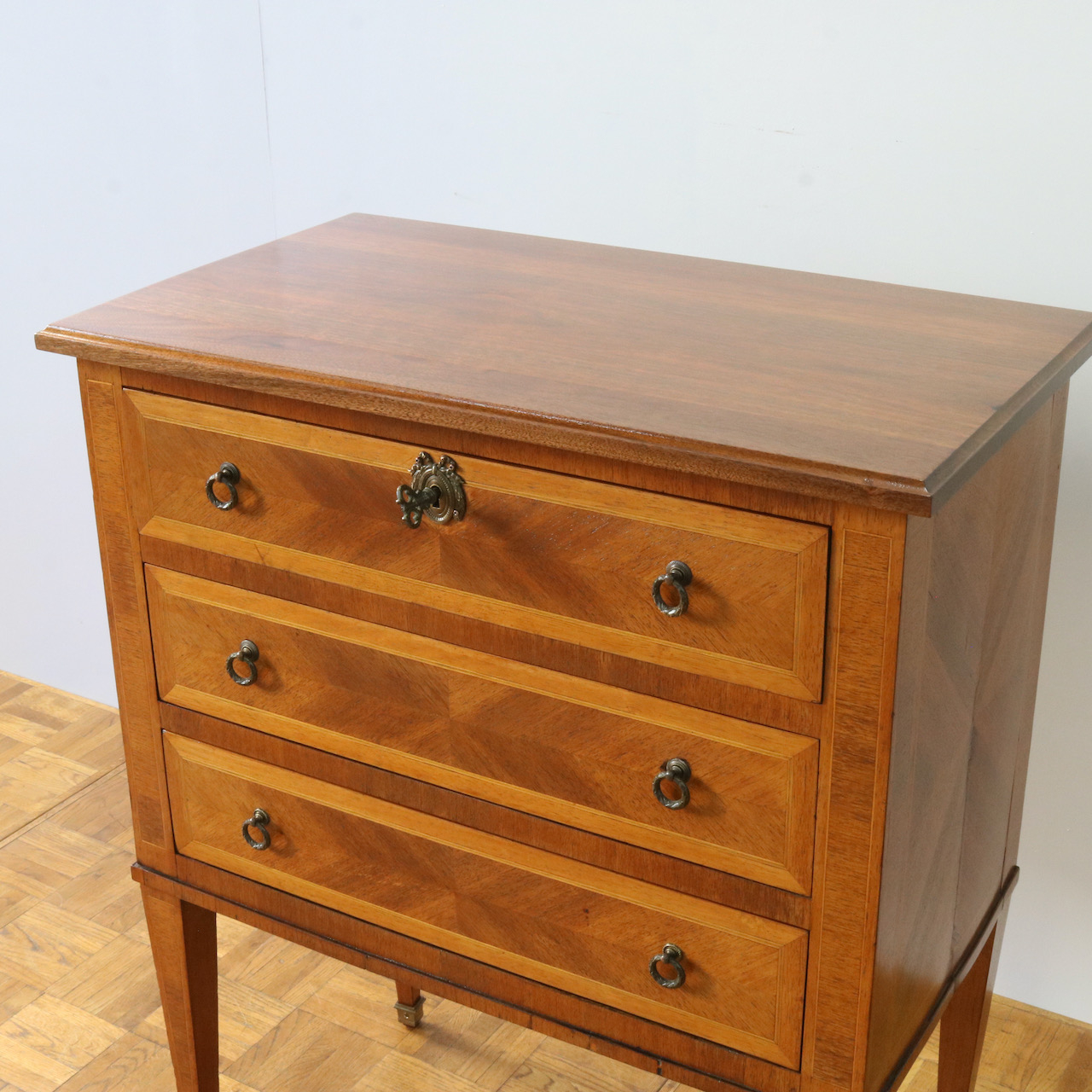 配送料の目安 ▶︎1930年代、ウォールナット のチェスト。シンプルなデザインに前面の特に引き出し部分の美しい木目が引き立ちます。縁には繊細なインレイもアクセントに施されています。