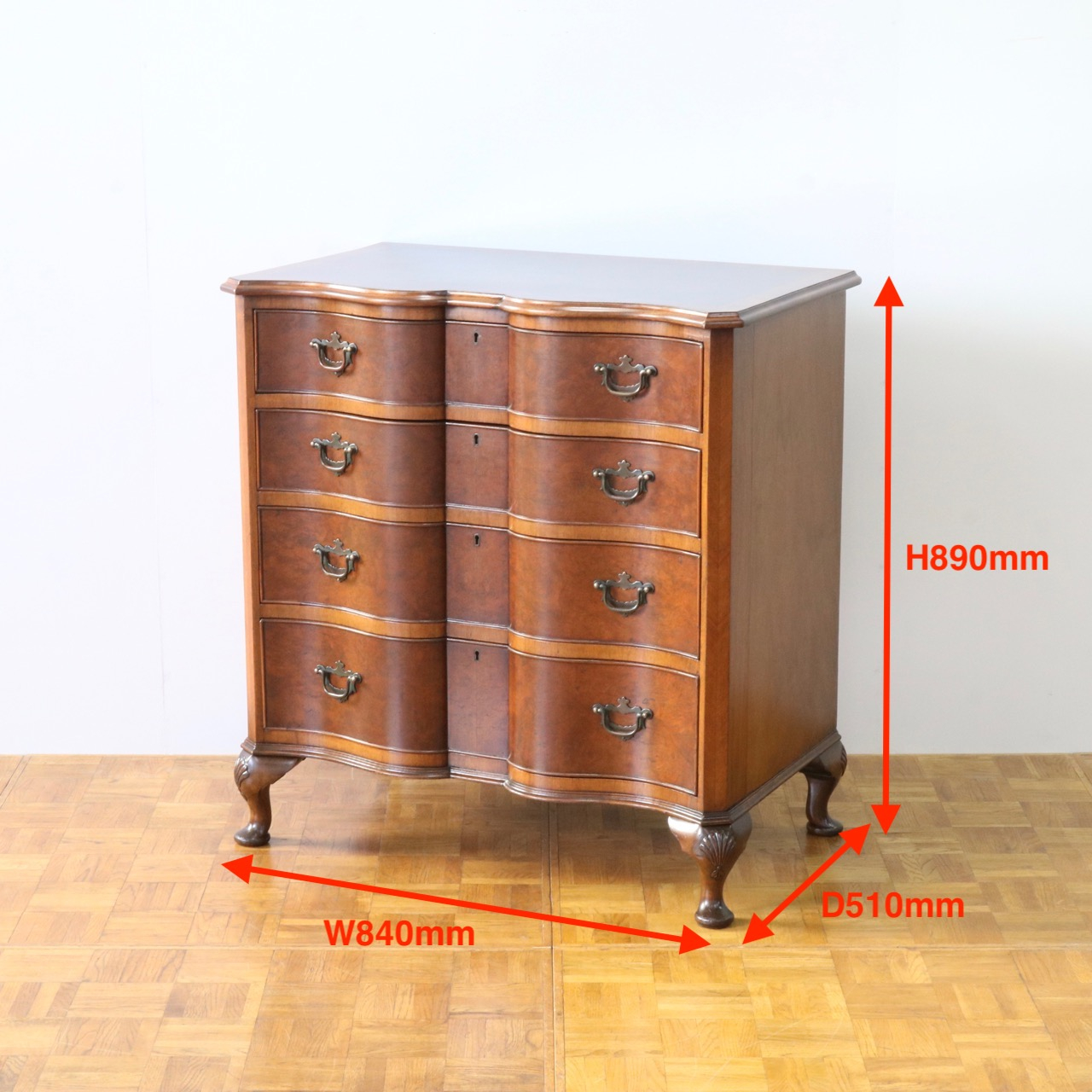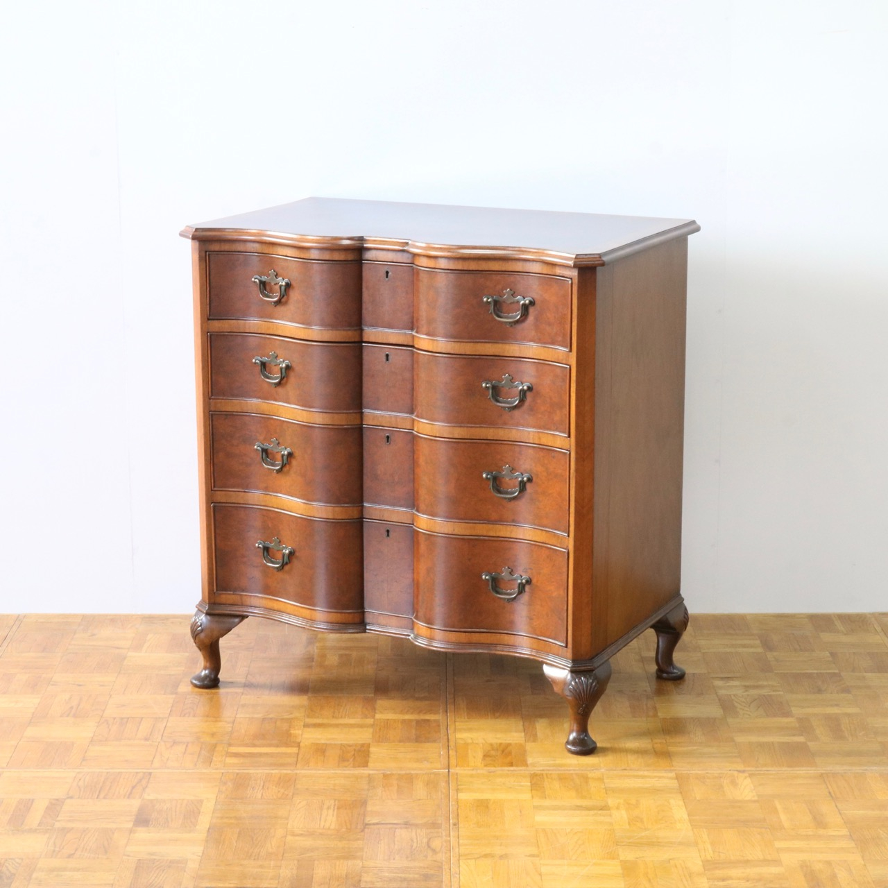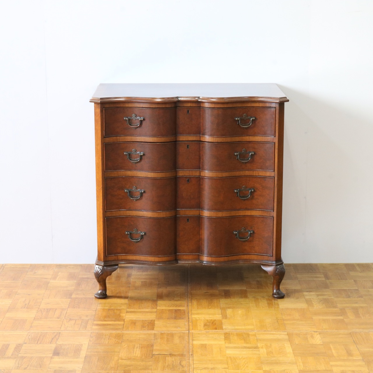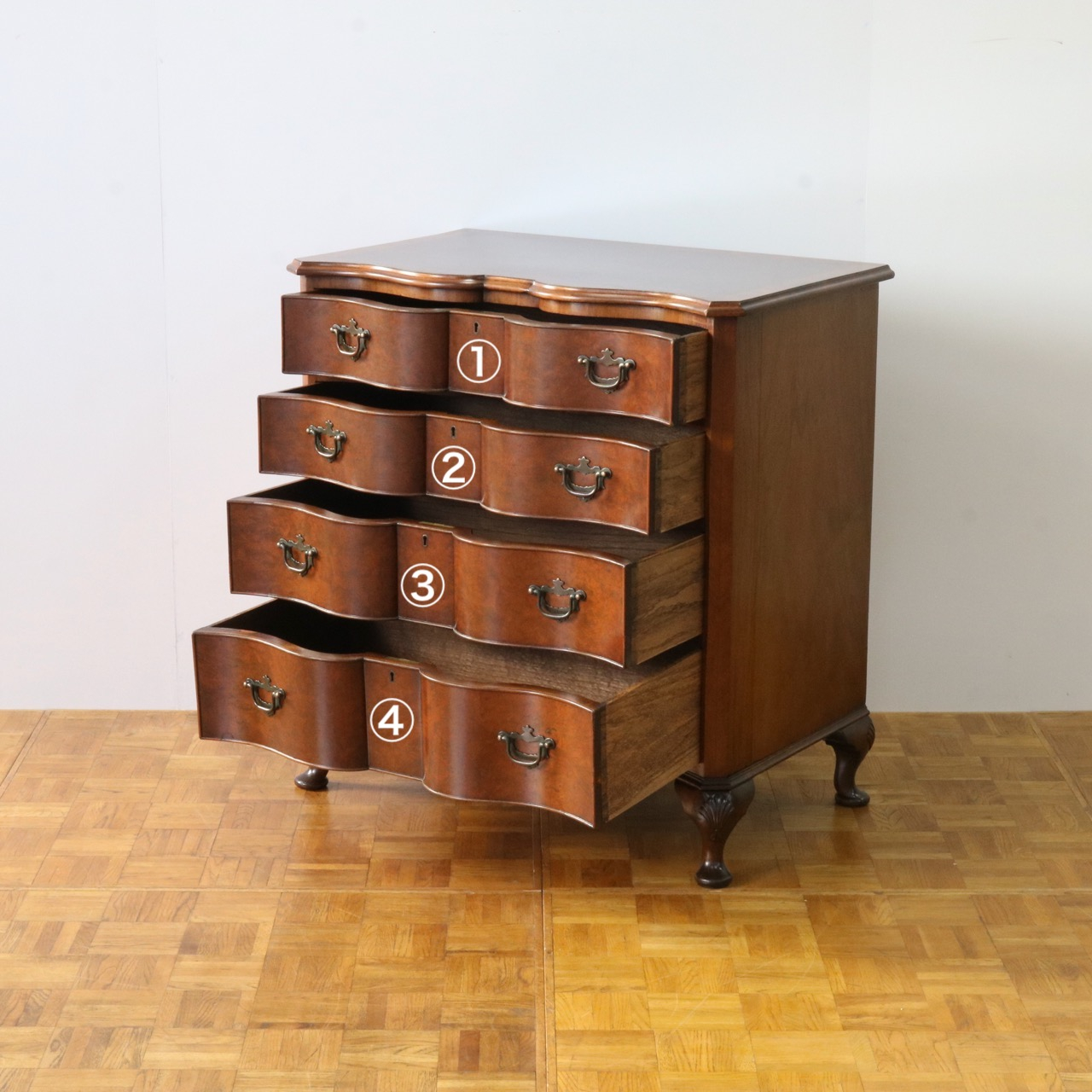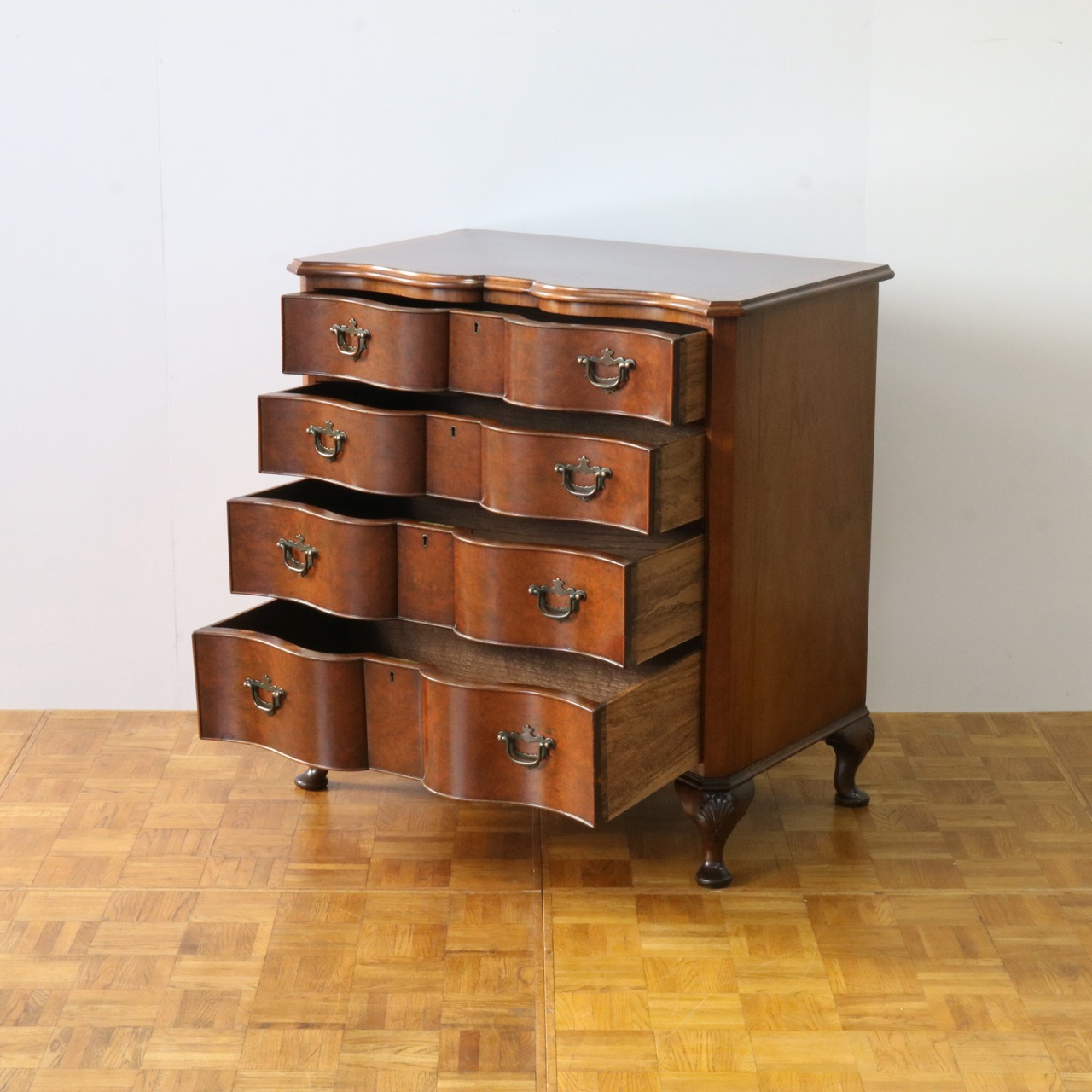 配送料の目安 ▶︎1930年代、ウォールナット のチェスト。前面の緩やかな曲線使いが印象的。ウォールナットの木目も美しく現れた優雅な佇まいです。
