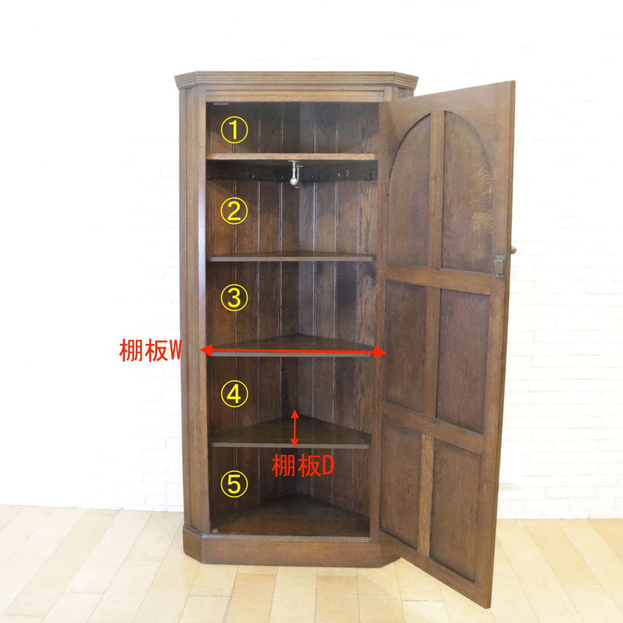 配送料の目安 ▶︎1940年代、オーク材のコーナーホールローブ。
