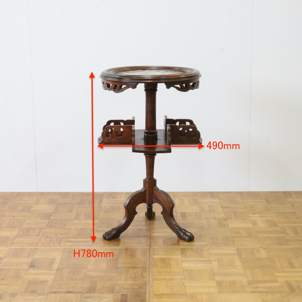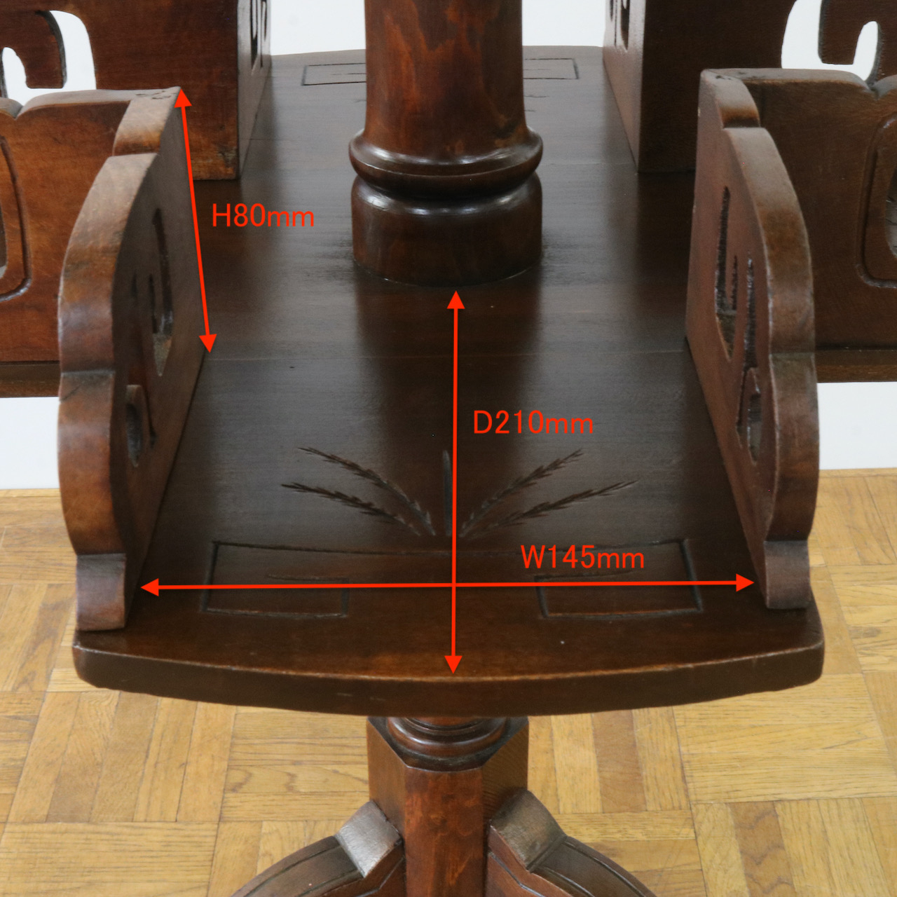 本を収納できる下台にもレリーフが。透かし彫りも施され、見所溢れるひと品です。