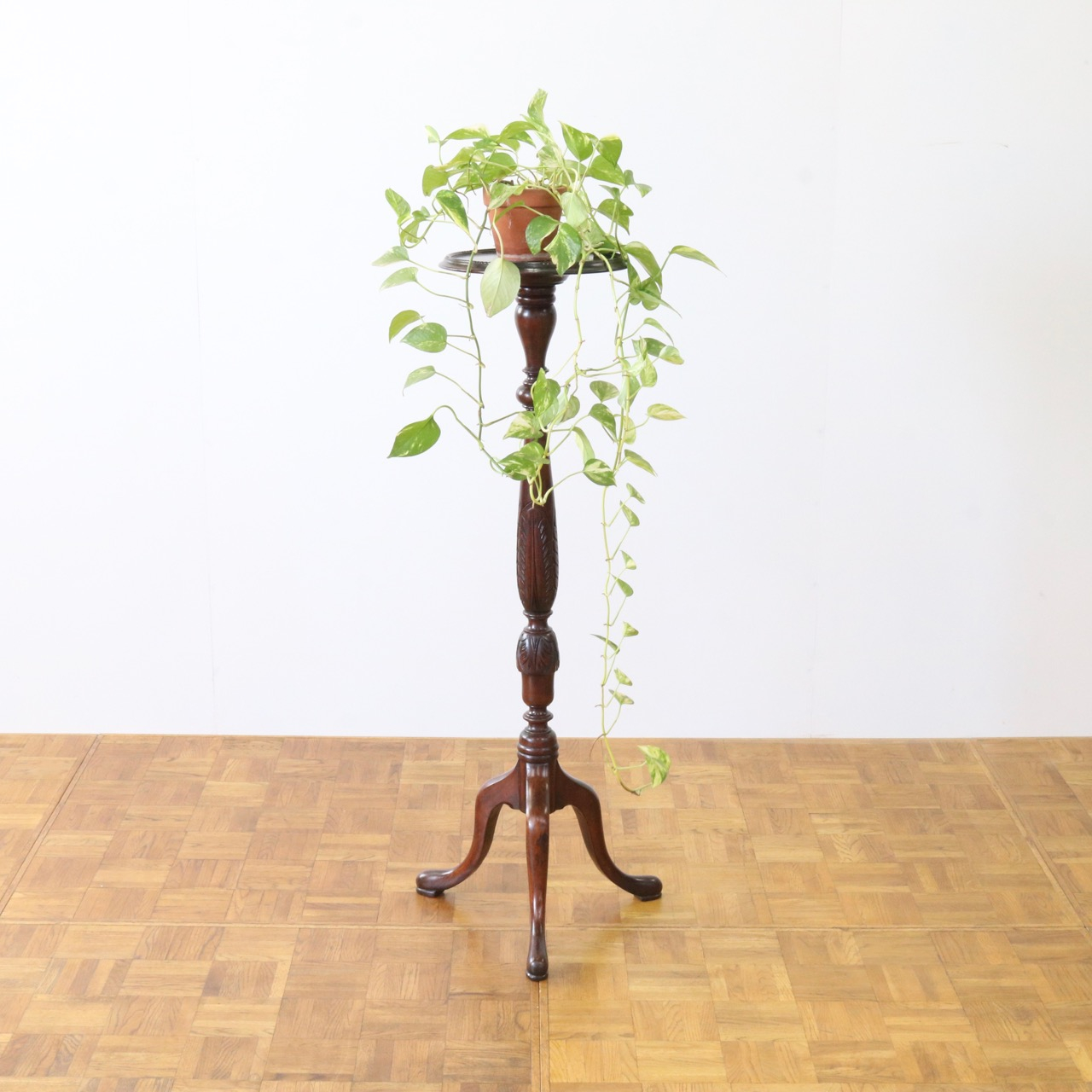 配送料の目安 ▶︎1930年代、マホガニー材のプランツスタンド。ステム部分の植物文様が特徴的で洗練された佇まいです。