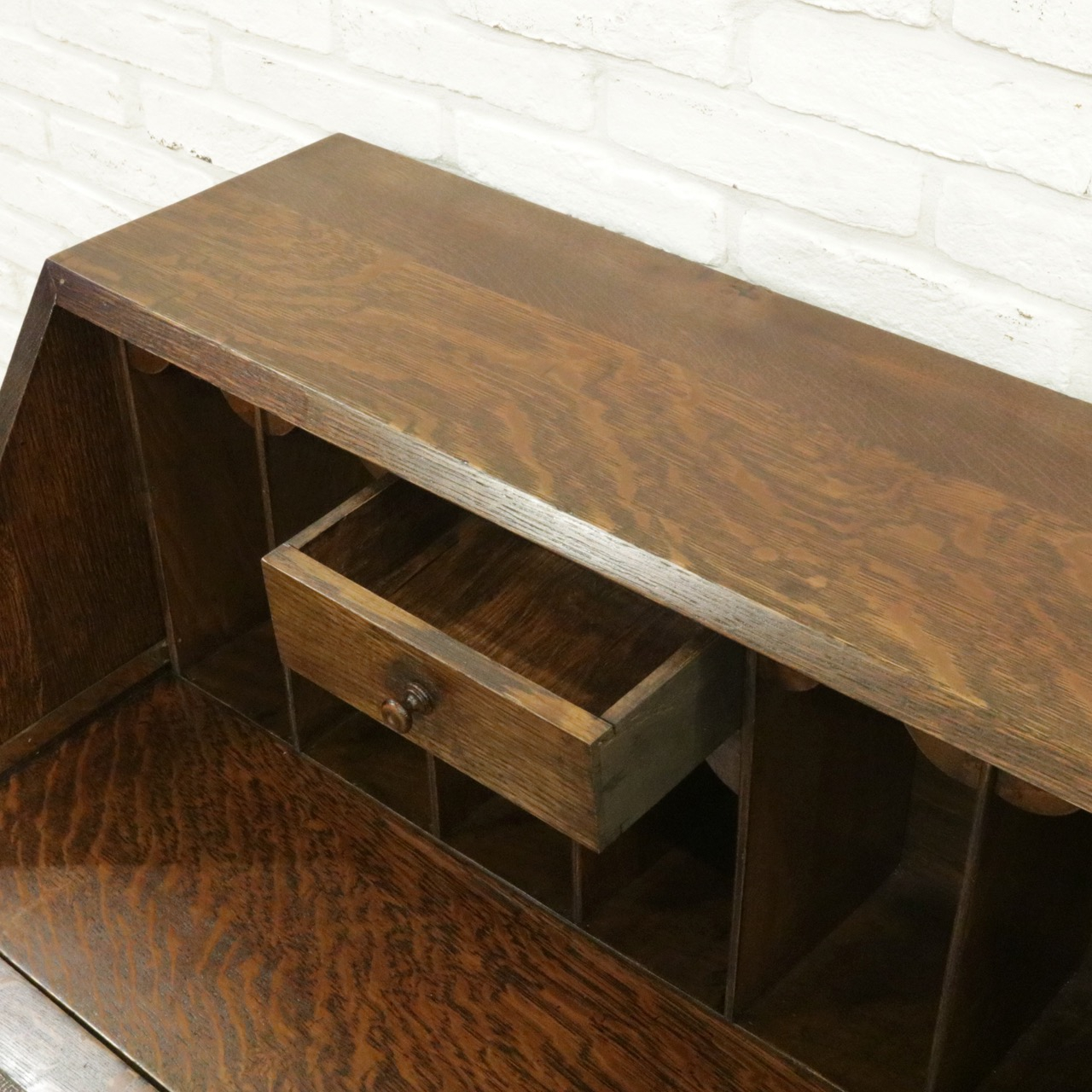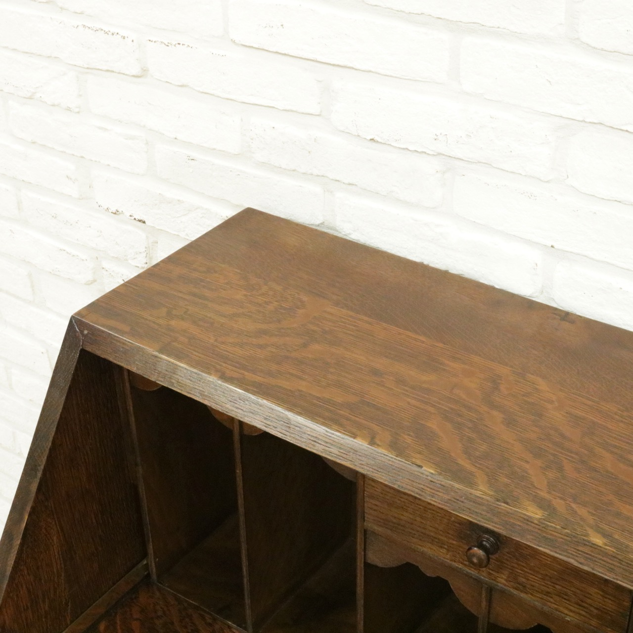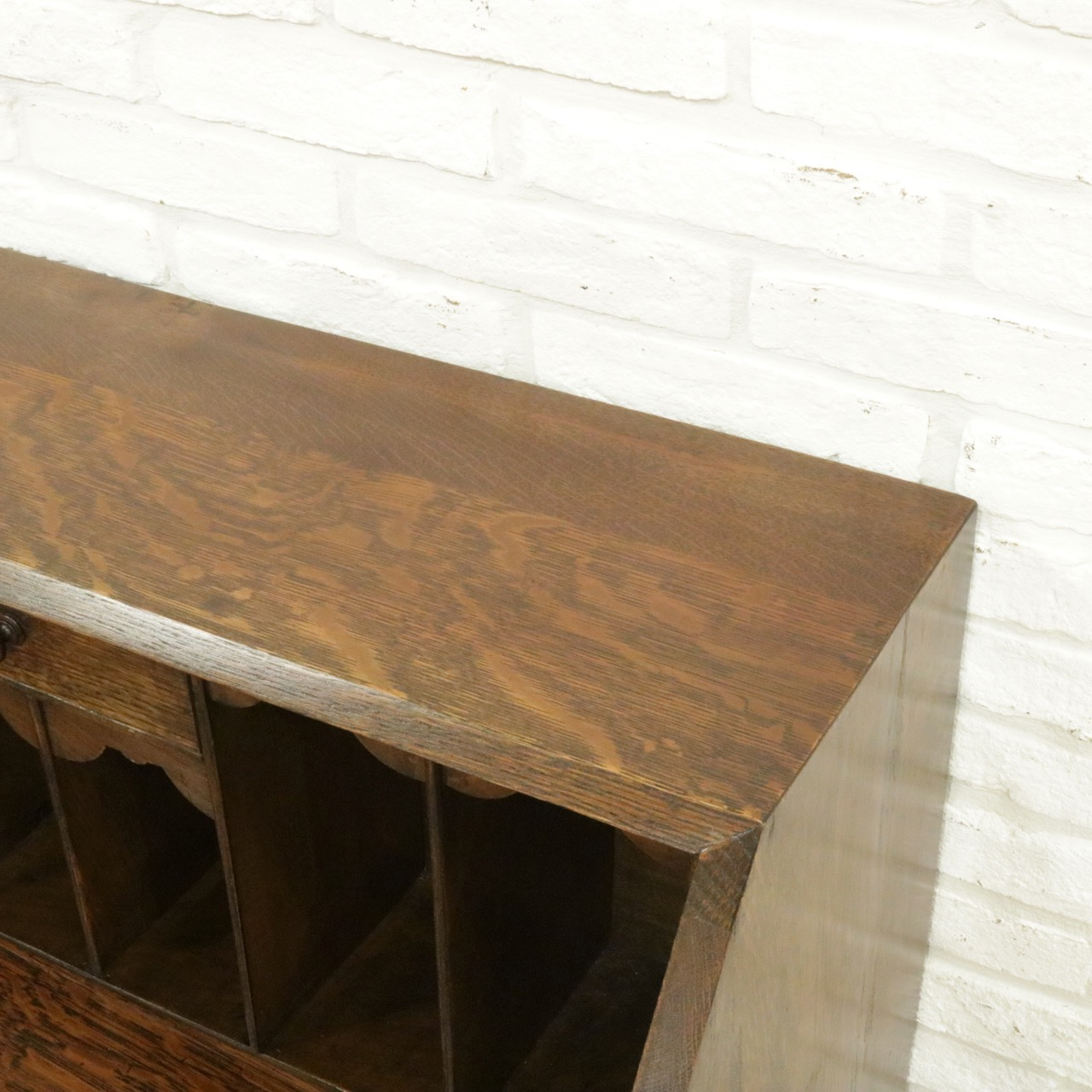 内側はお手紙や文庫本などを立ててしまえるピジョンボックスと、小さな引き出しがついています。