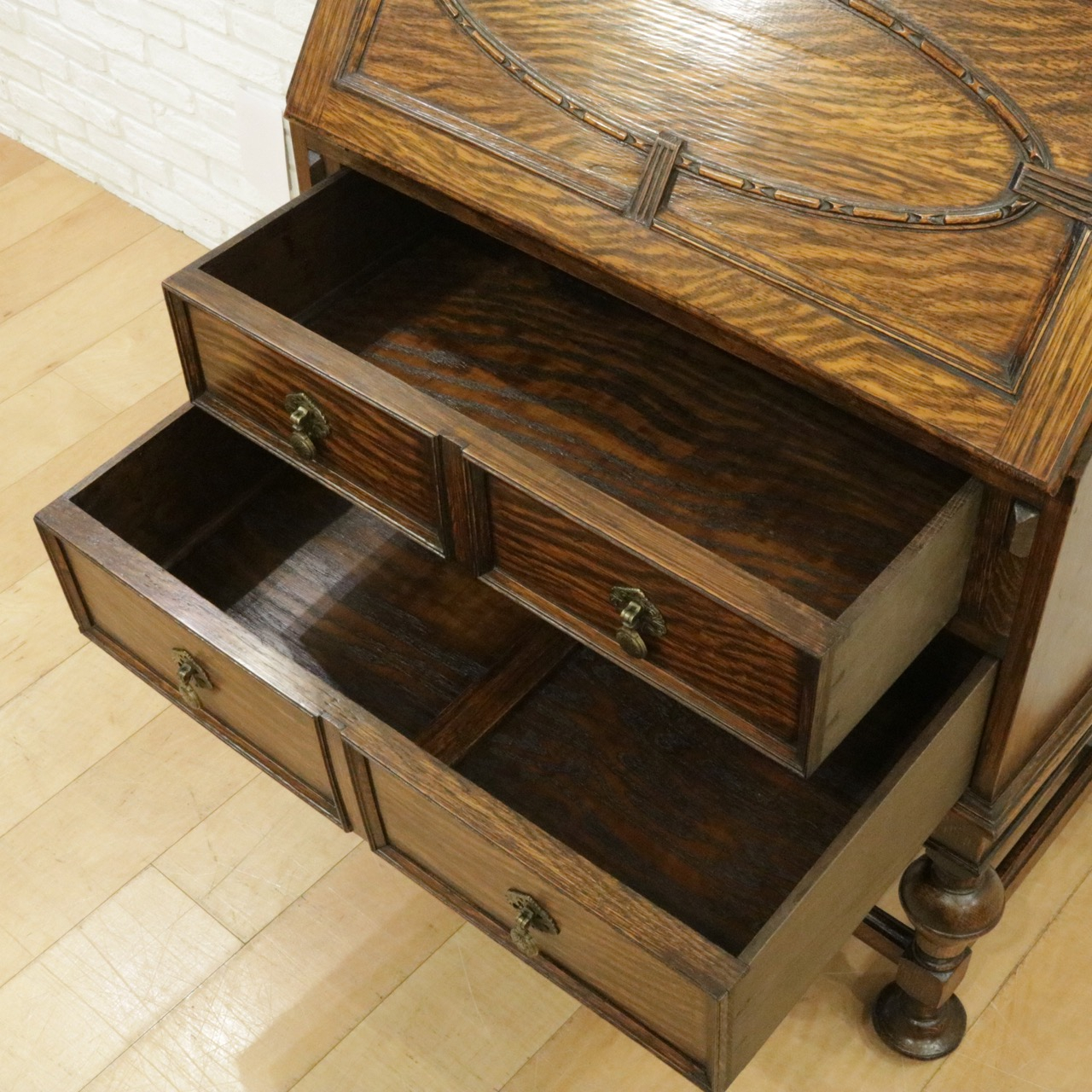 下段は引き出しが2杯。内側もきれいに修復済みです。