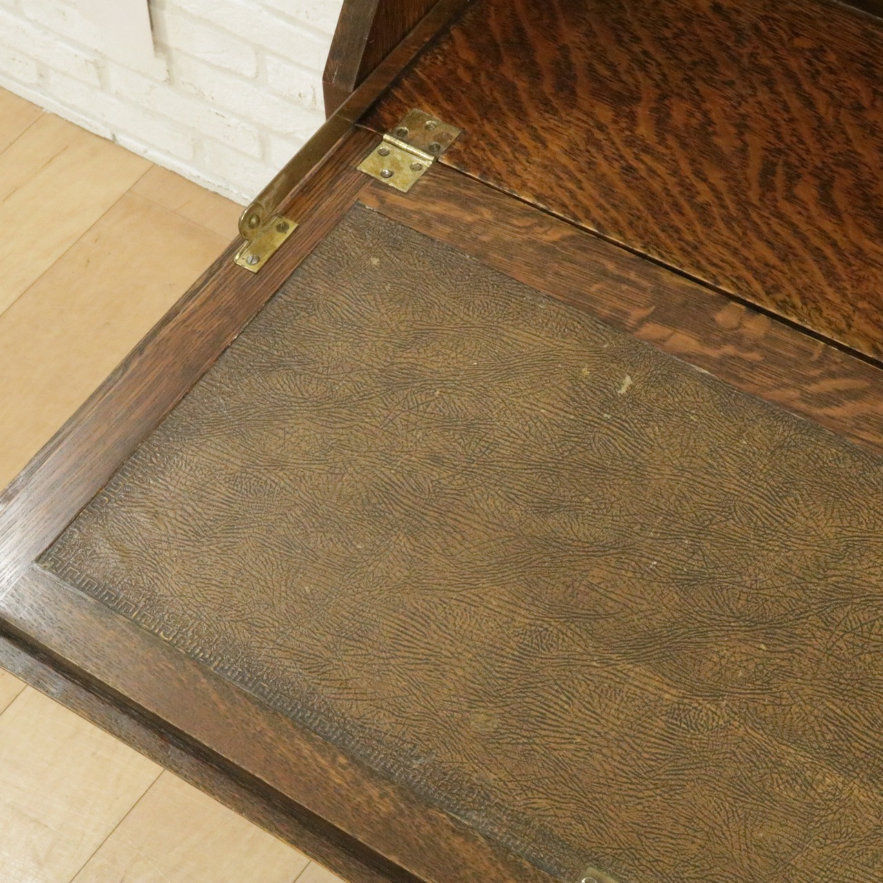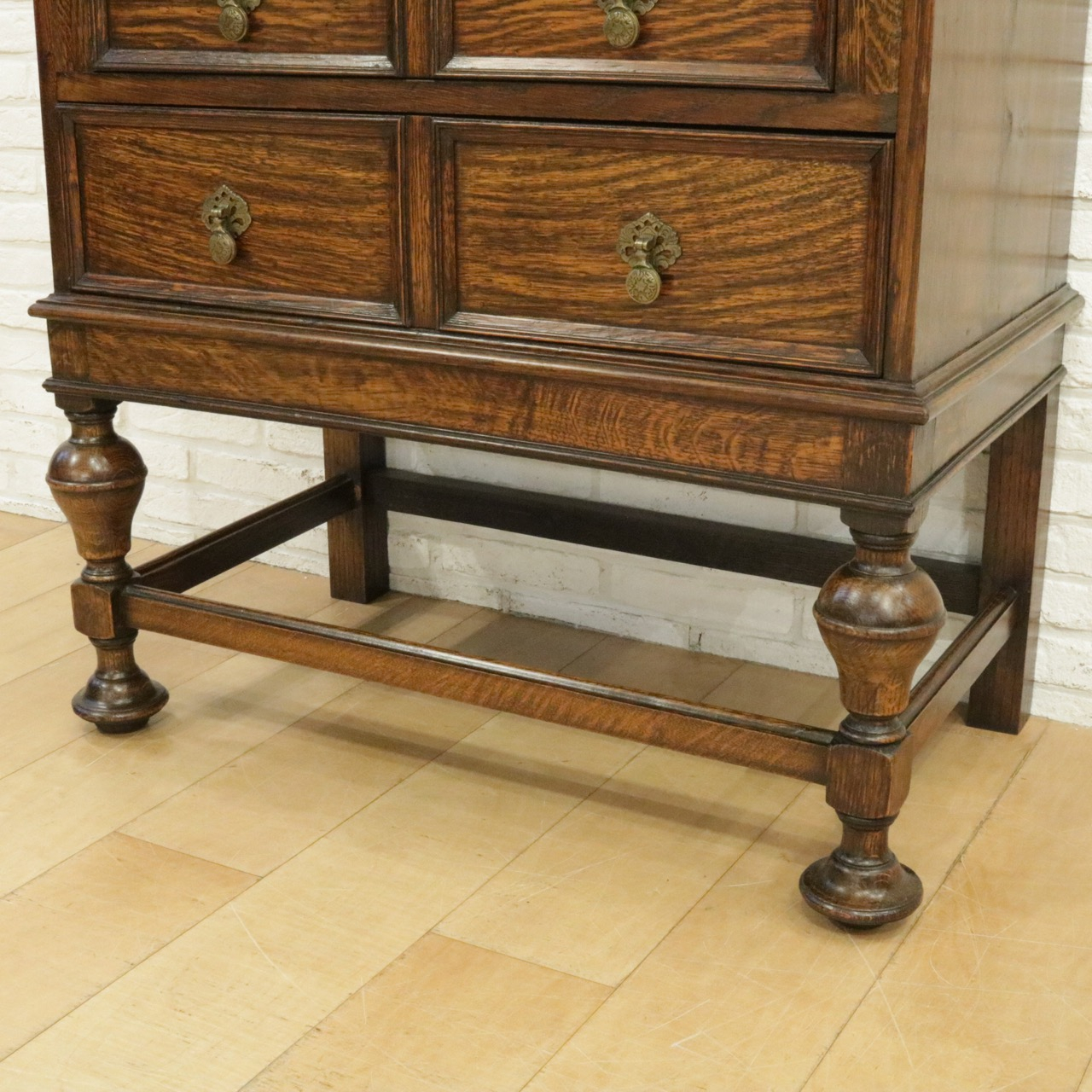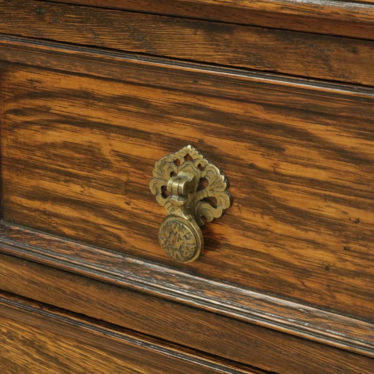 引き出しの金具は真鍮製でアンティークらしい雰囲気。