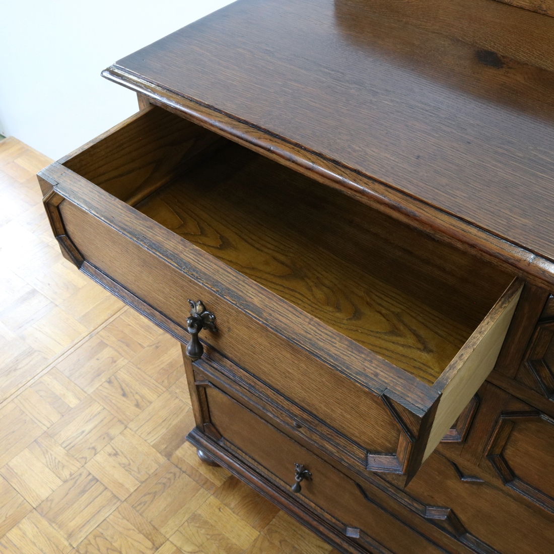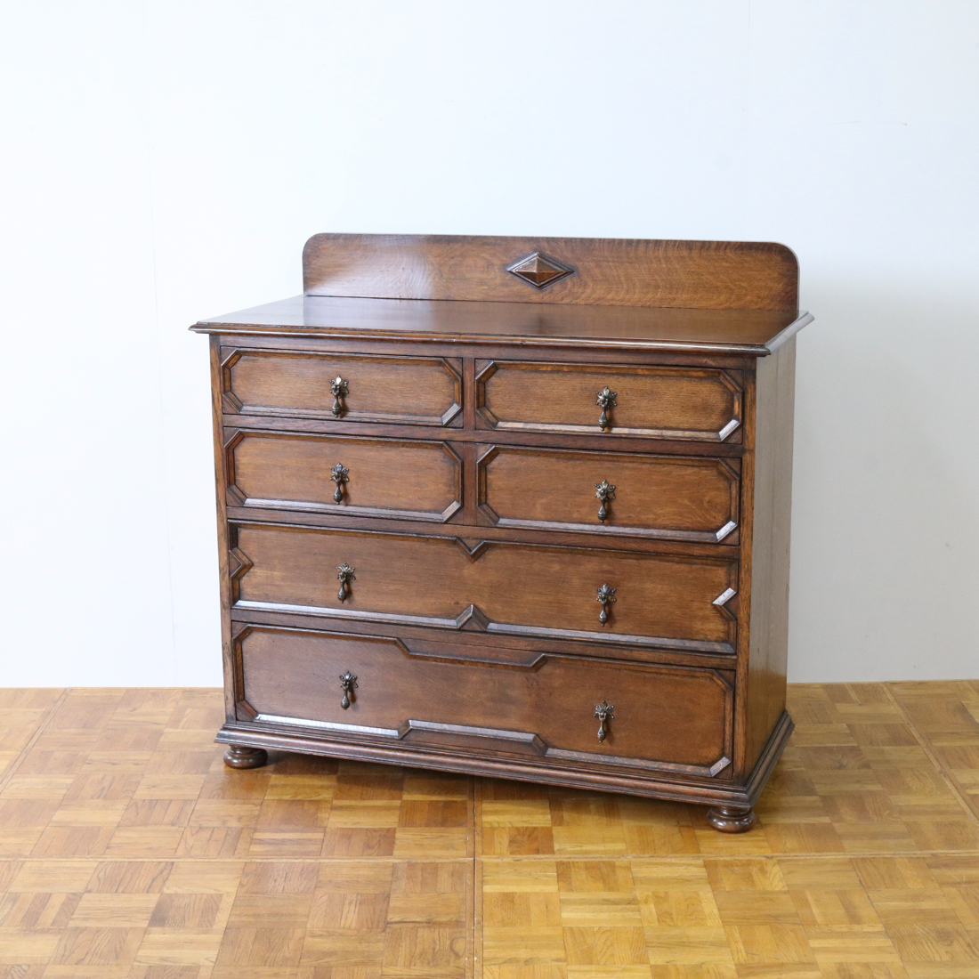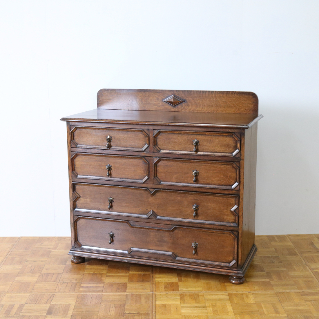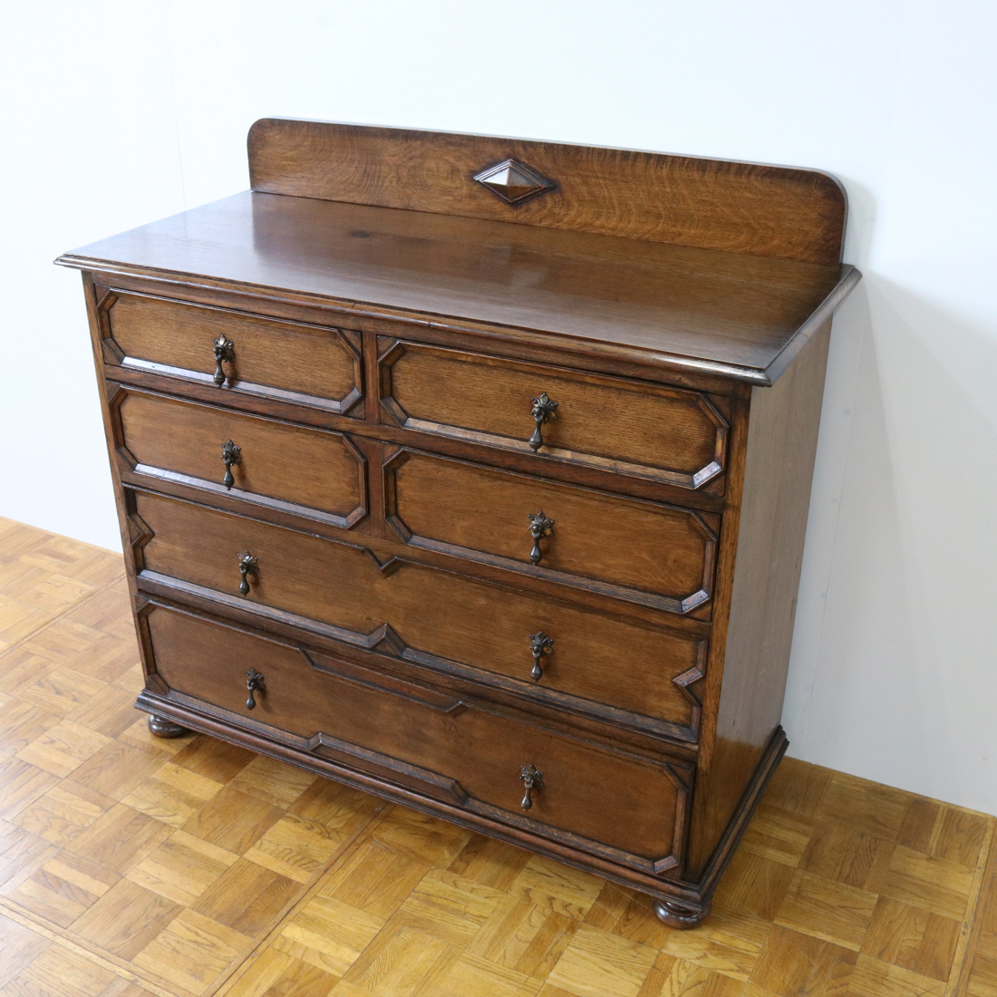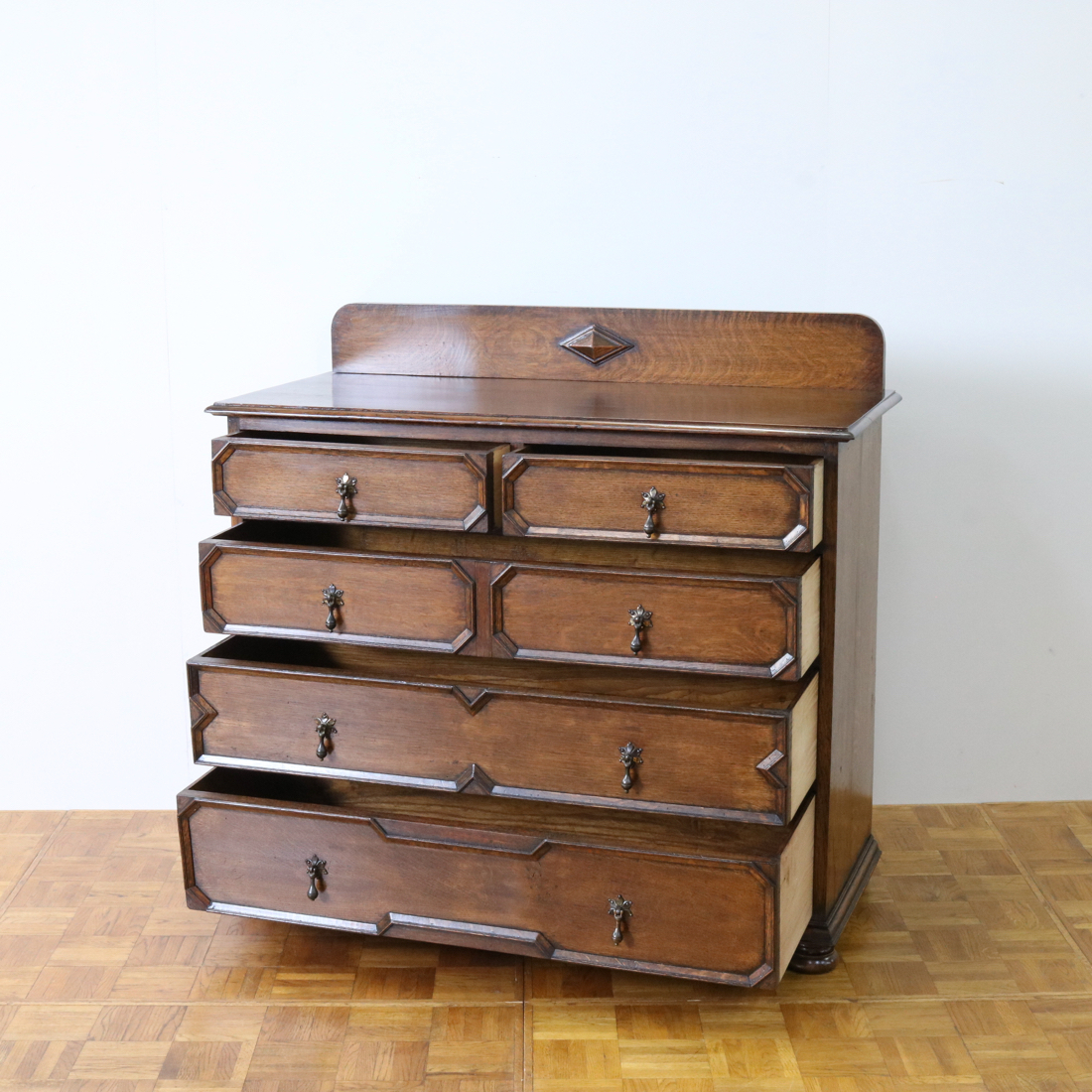 アプライドモールディングのオークのチェストは人気のお品、アンティークらしい存在感です。