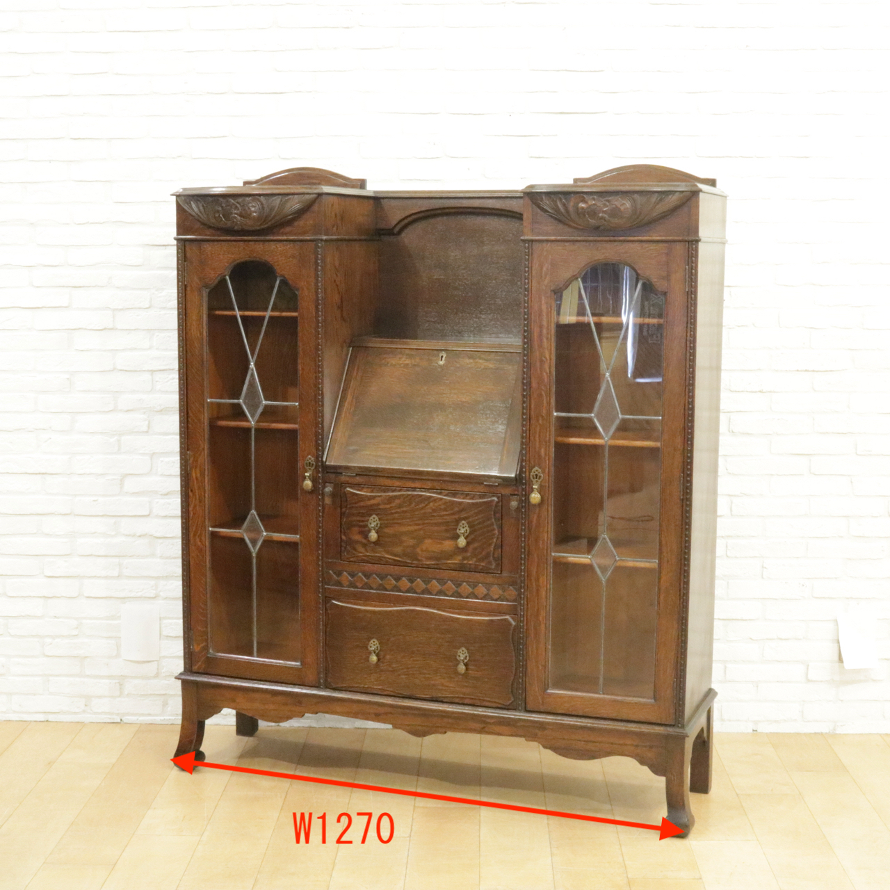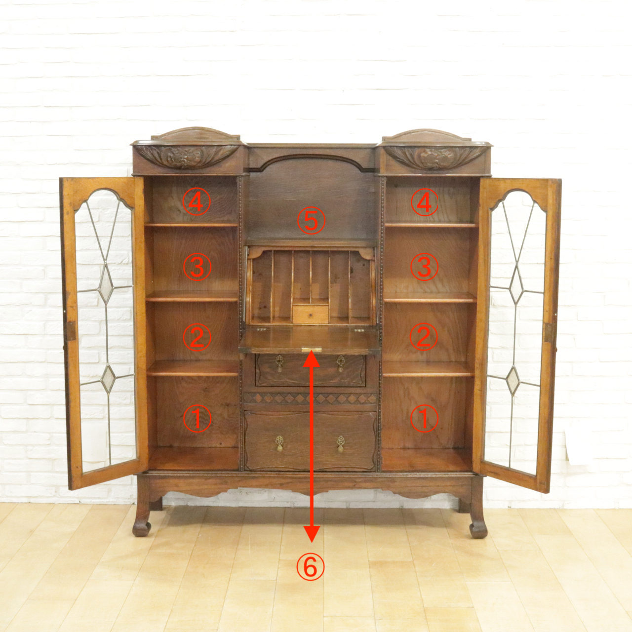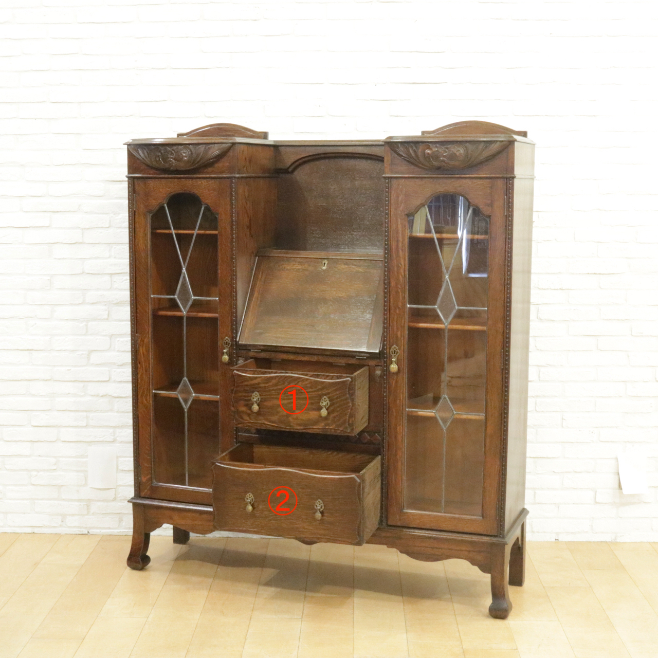 立体感のある見事な彫刻やステンドグラスの扉、細やかな装飾などアンティークならではの丁寧で美しい要素が散りばめられた上質なひと品。