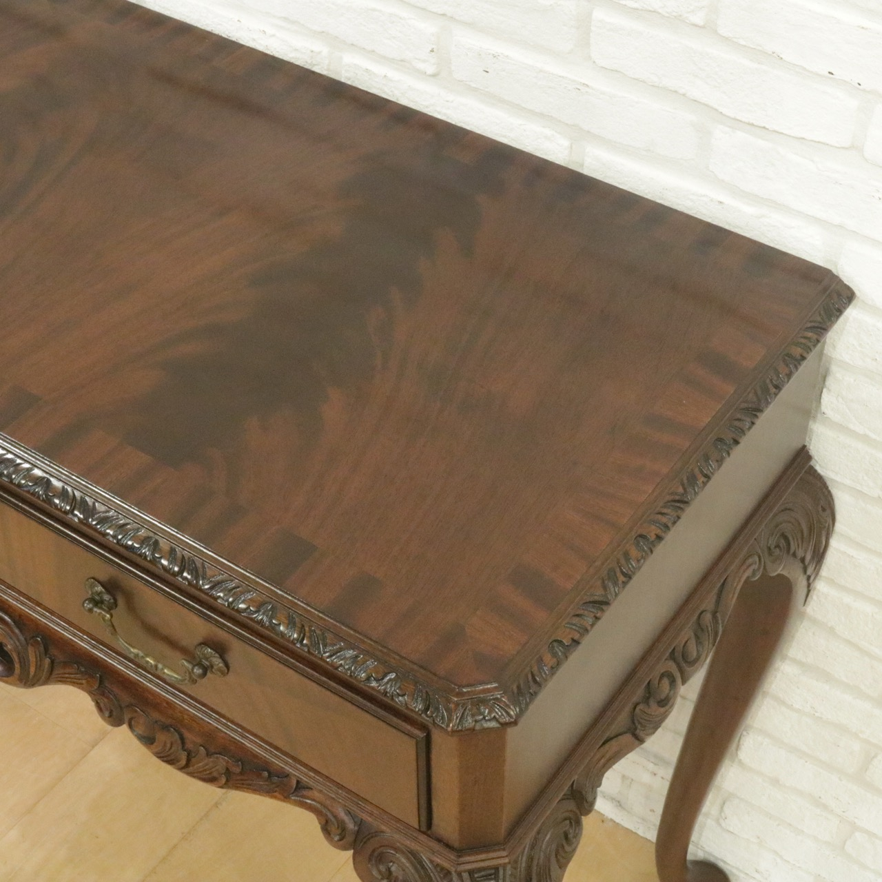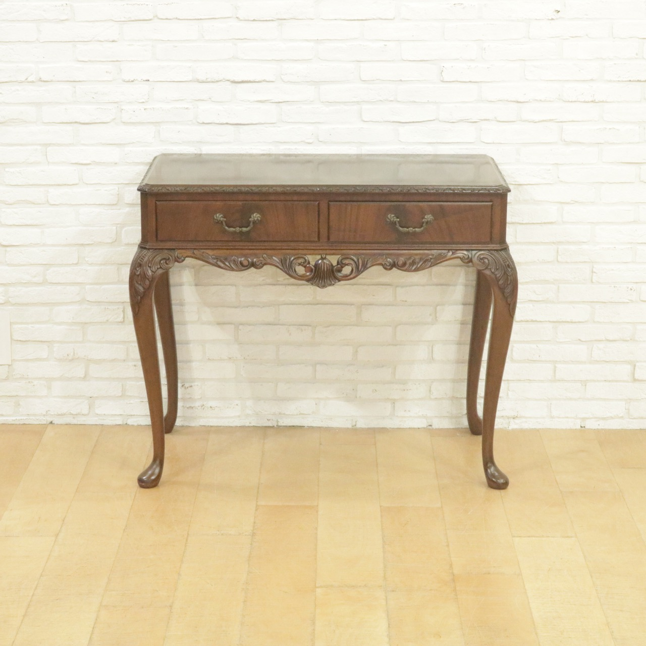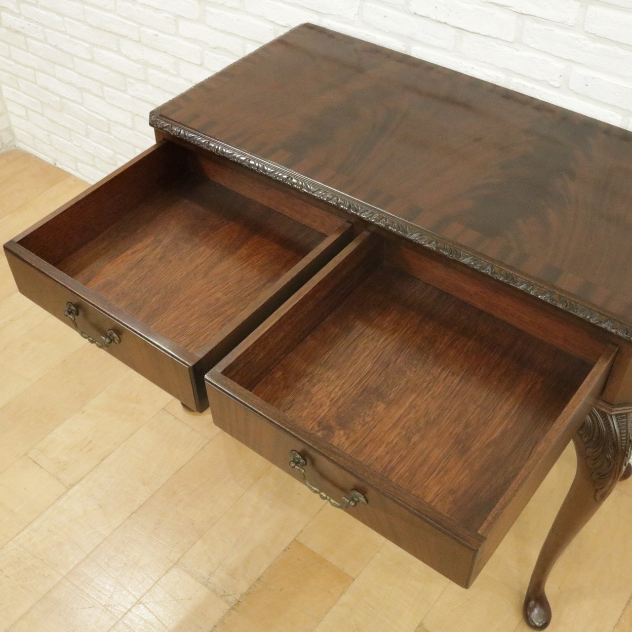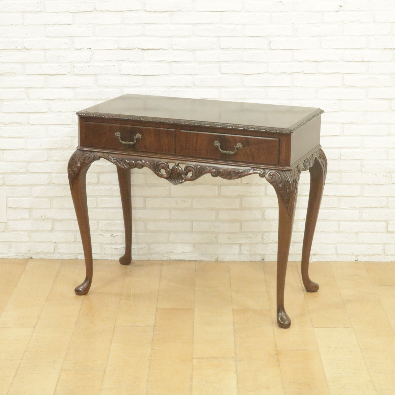 天板縁にはガドルーニングが施され、幕板にはアカンサスの透かし彫りが印象的に配されています。