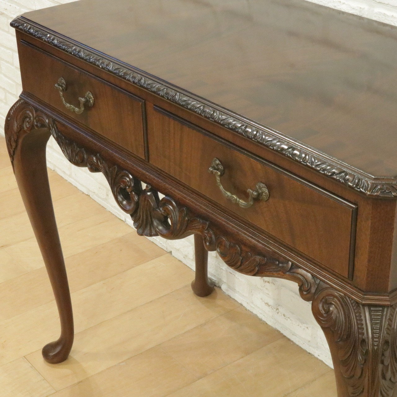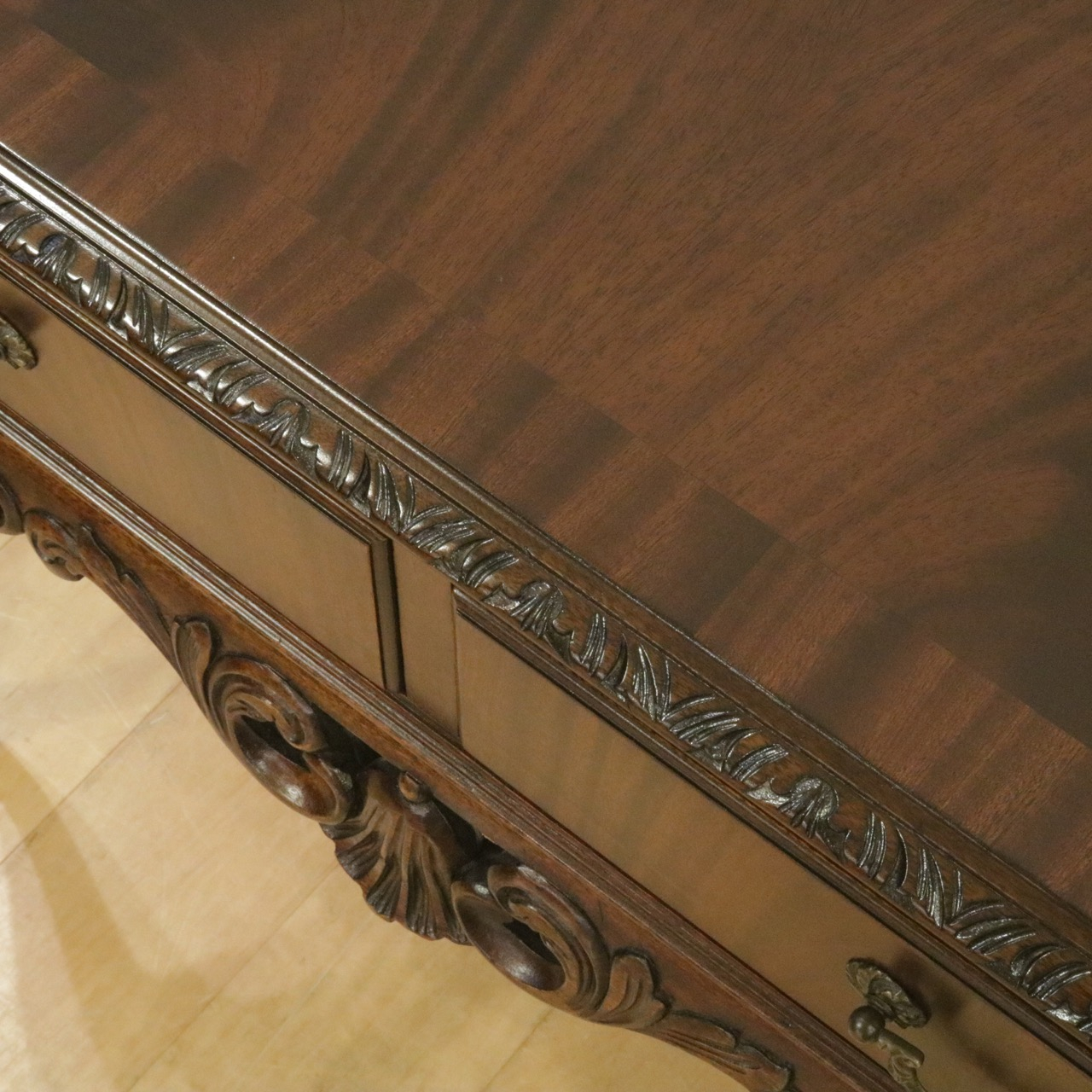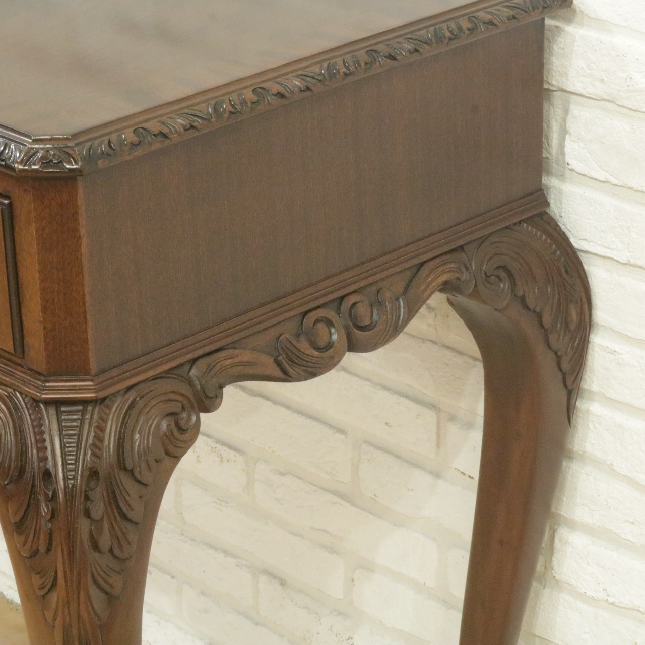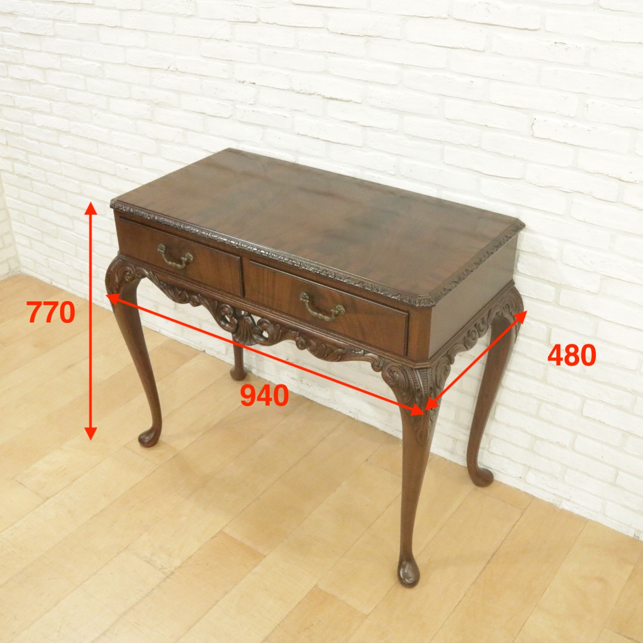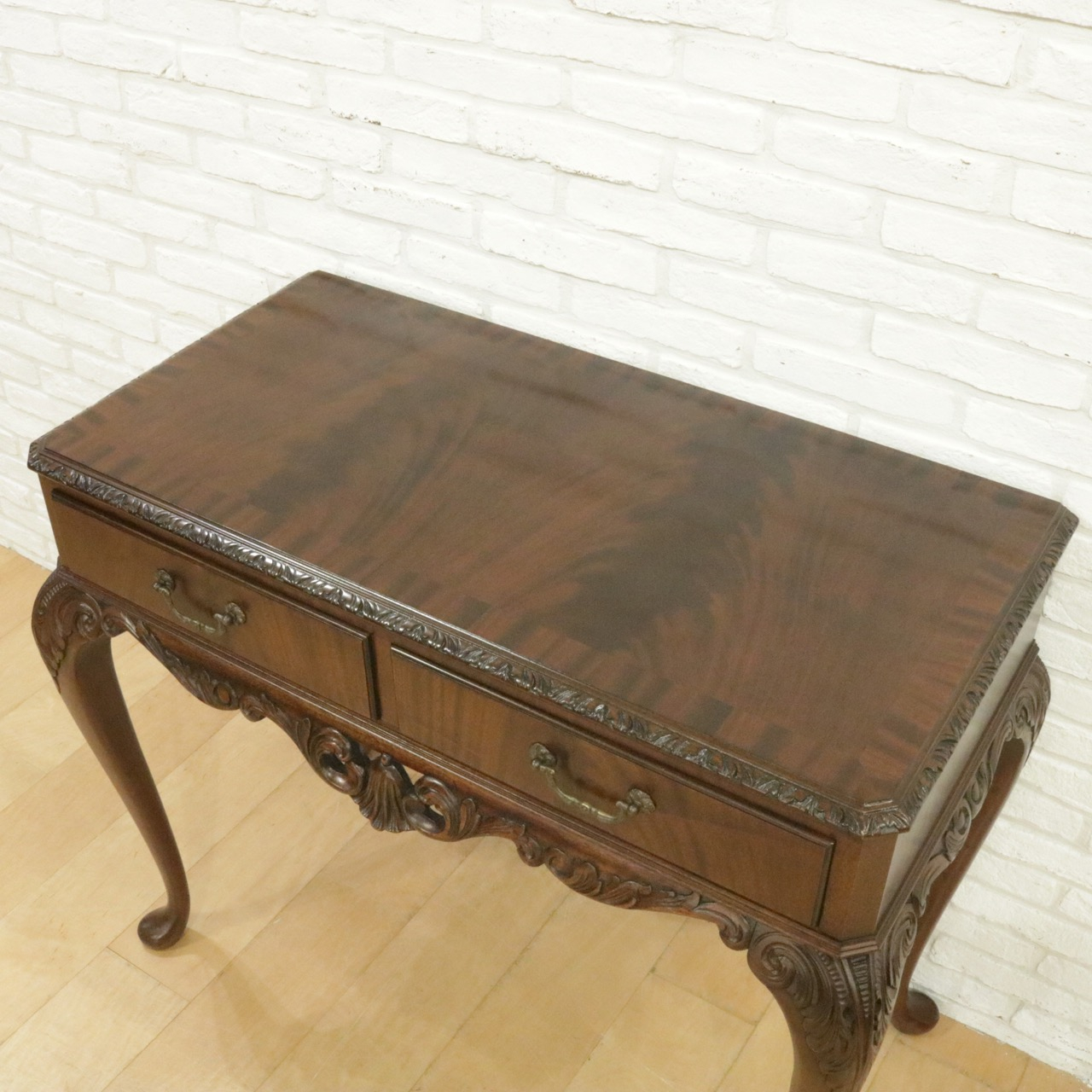 天板縁にはガドルーニングが施され、幕板にはアカンサスの透かし彫りが印象的に配されています。
