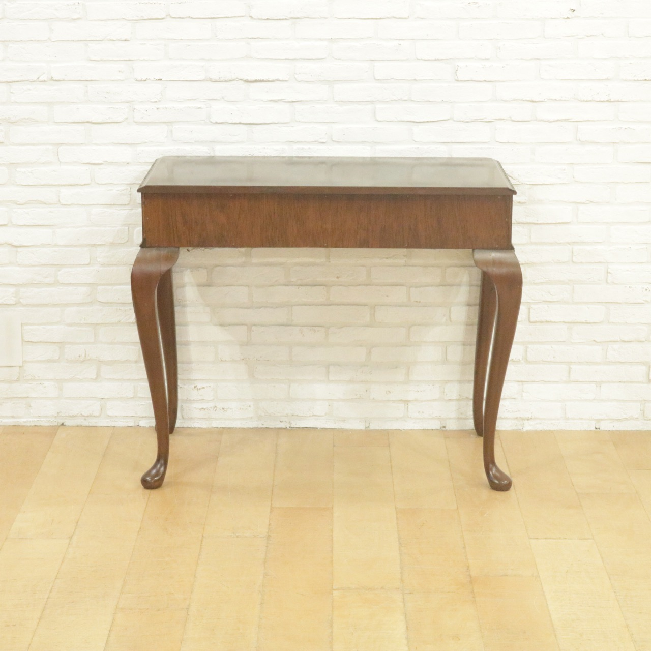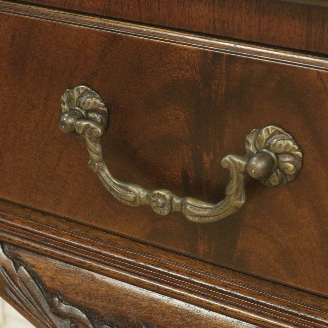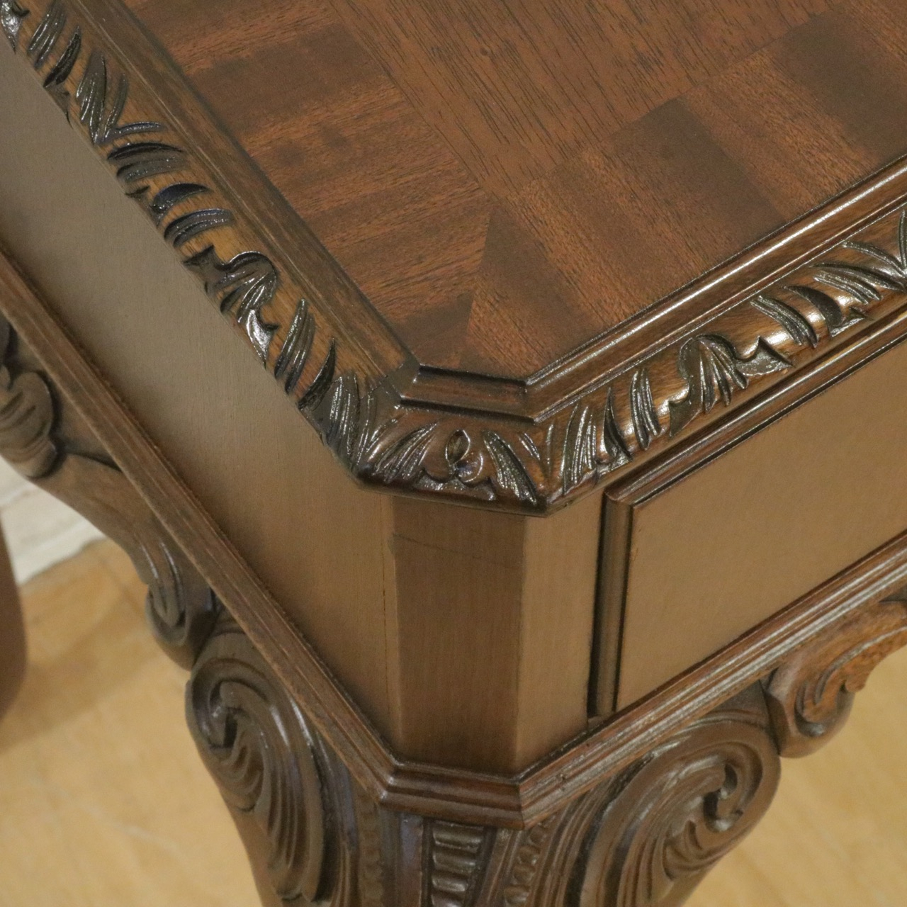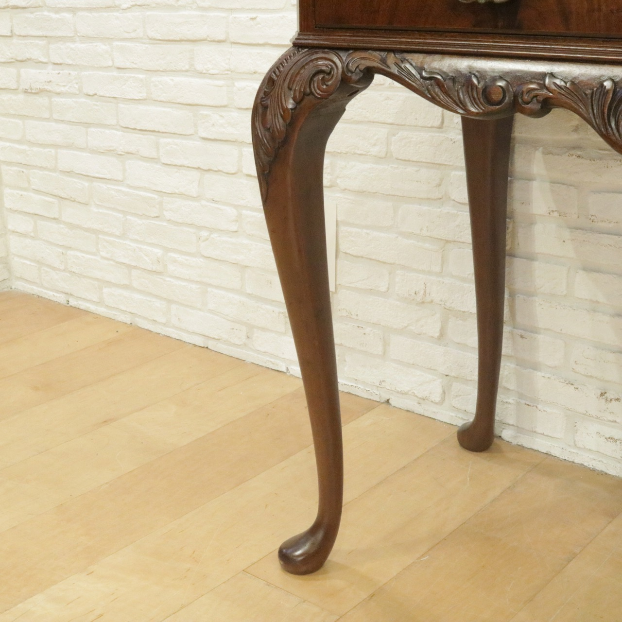 天板縁にはガドルーニングが施され、幕板にはアカンサスの透かし彫りが印象的に配されています。