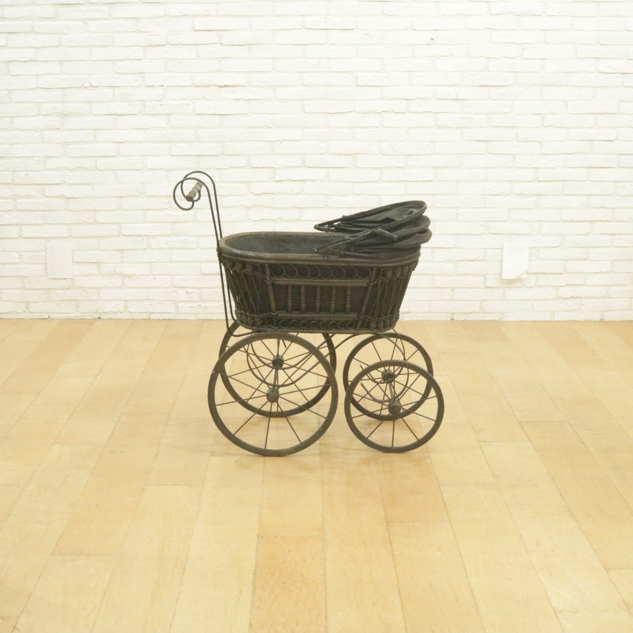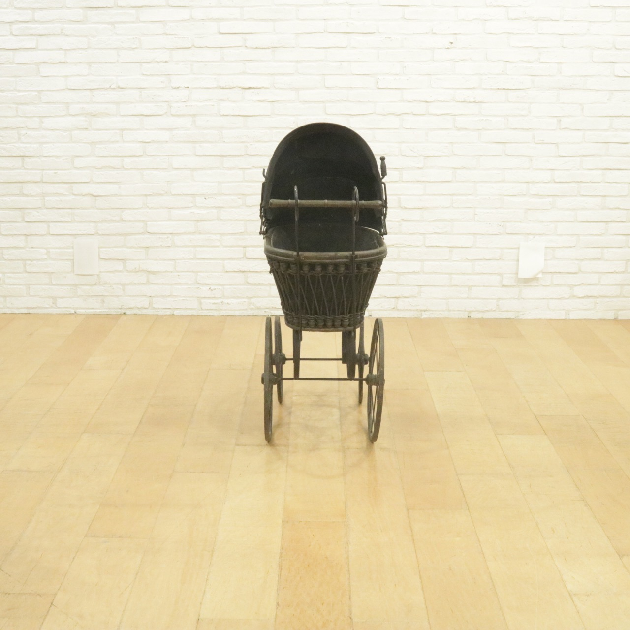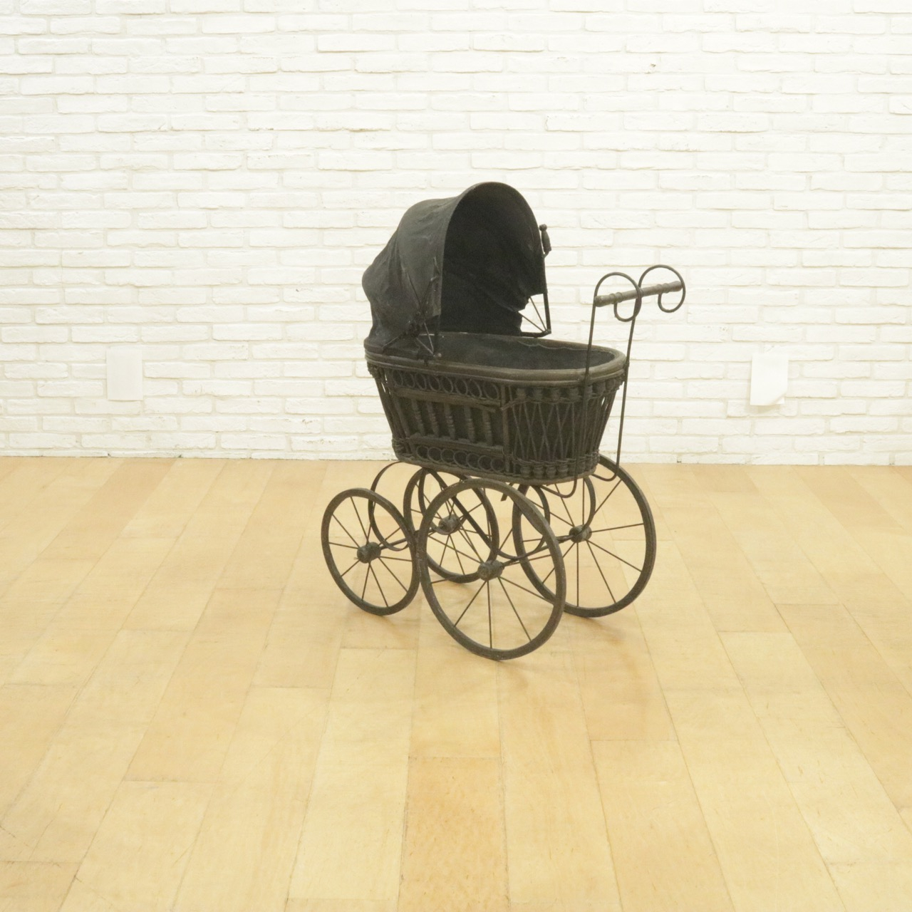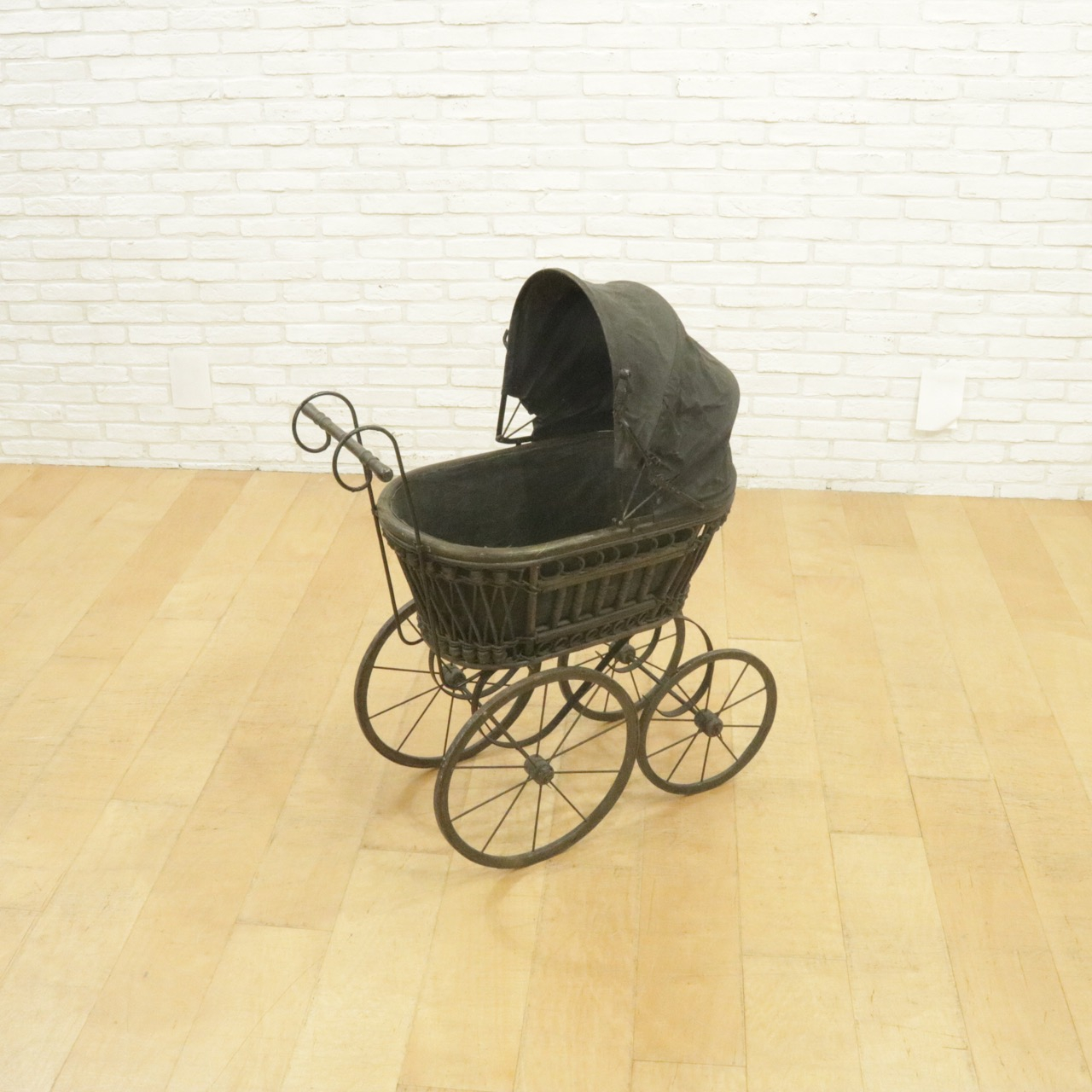 シャビーシックで雰囲気のあるブラックのベビーカー。