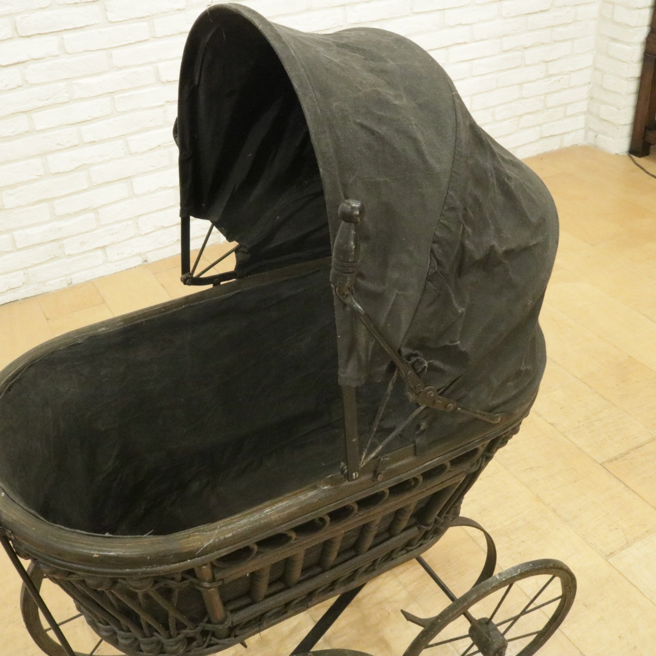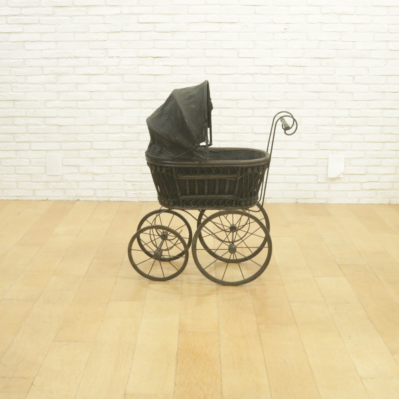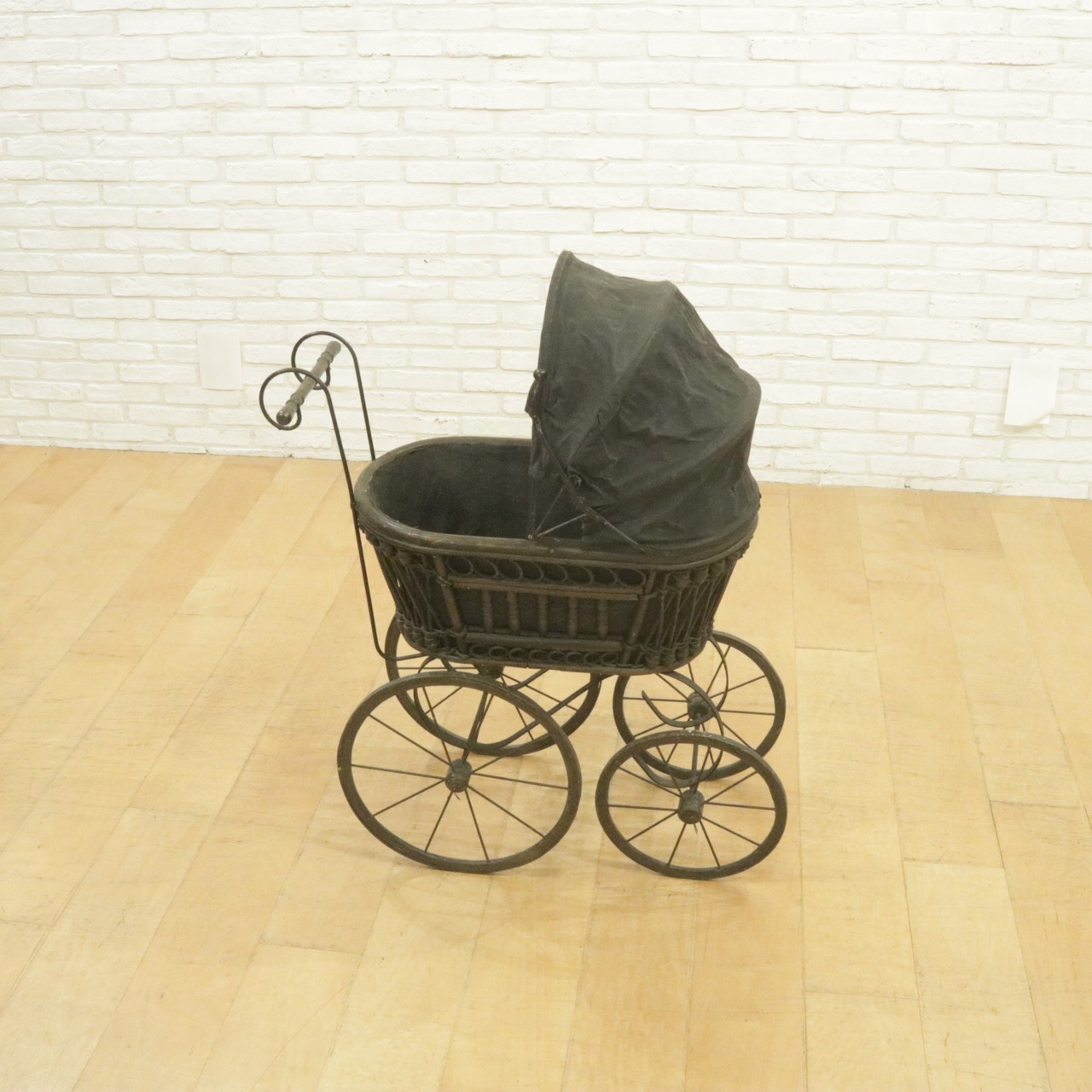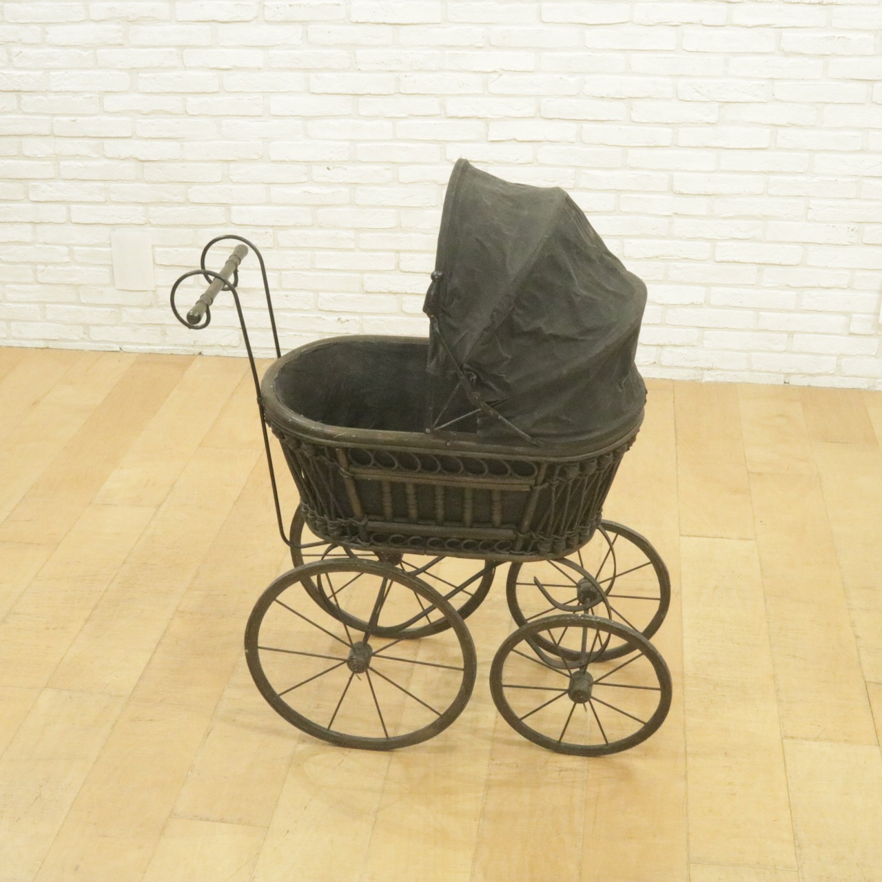シャビーシックで雰囲気のあるブラックのベビーカー。