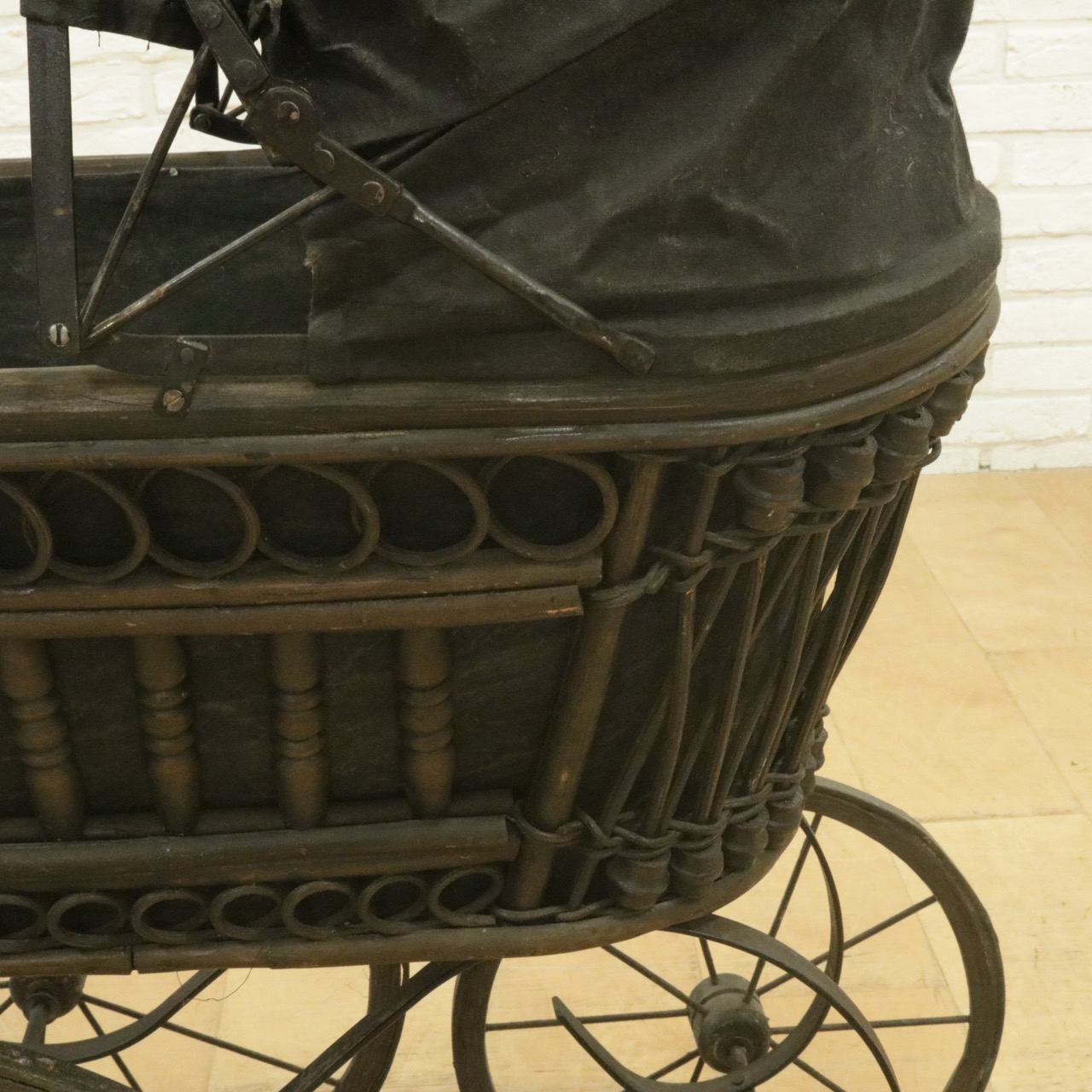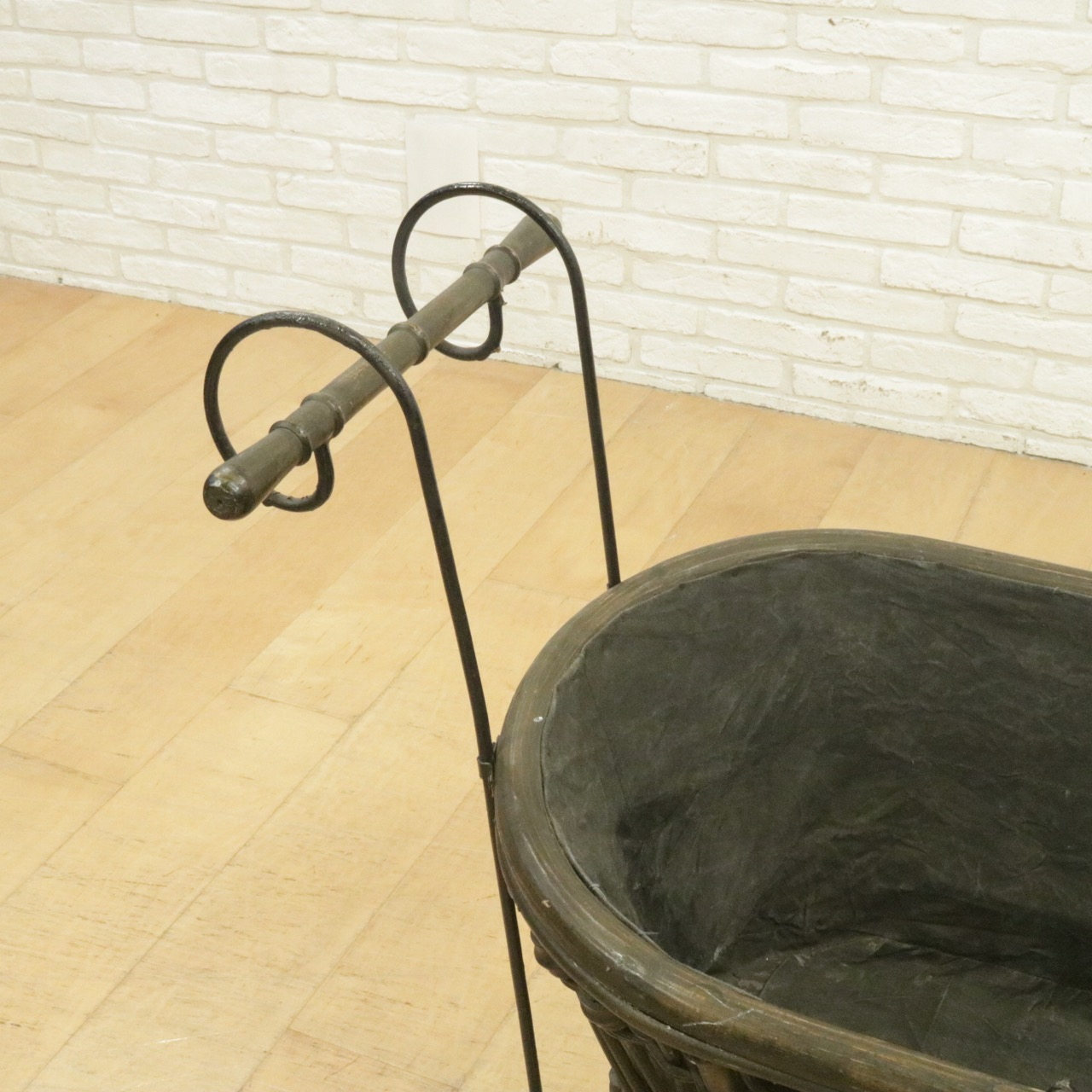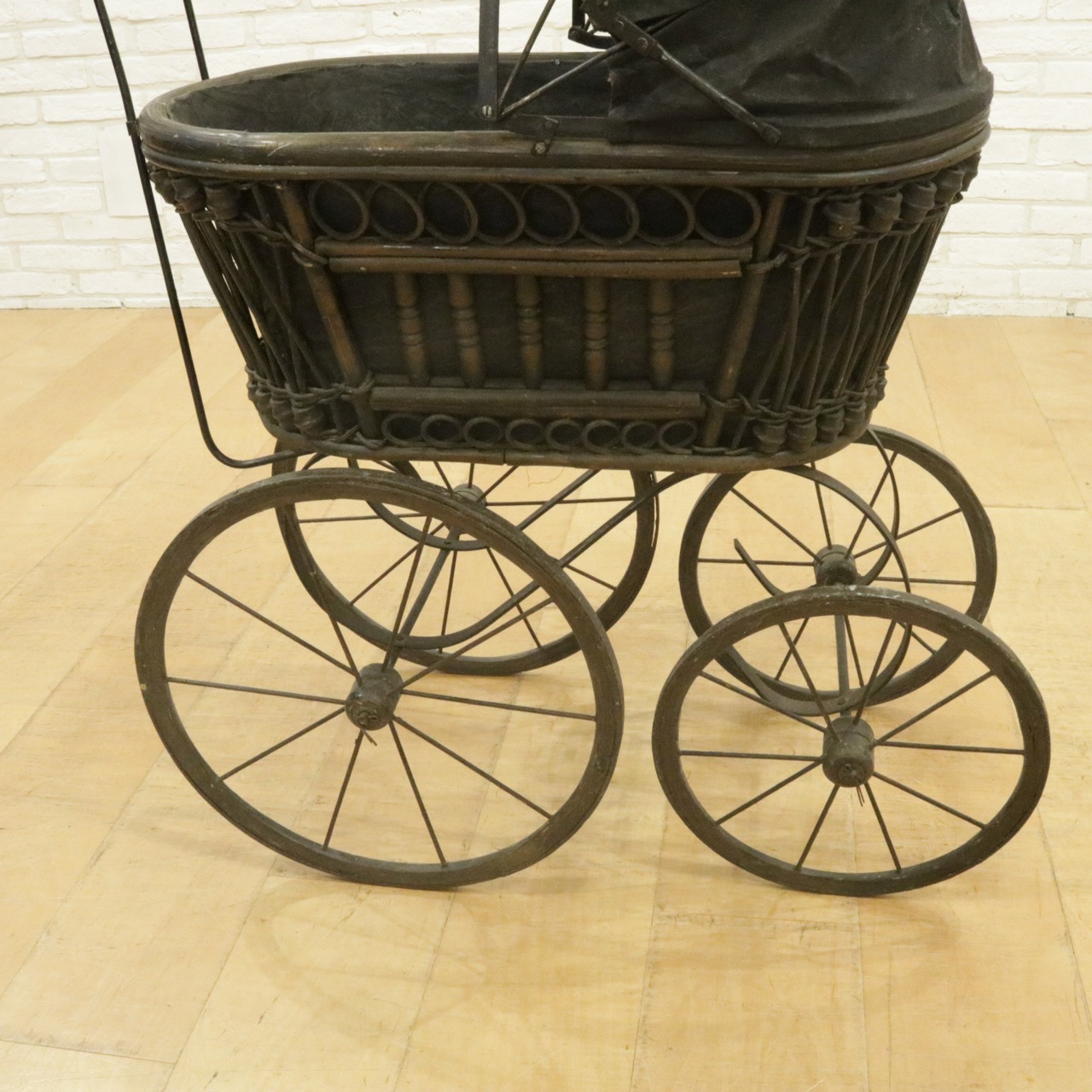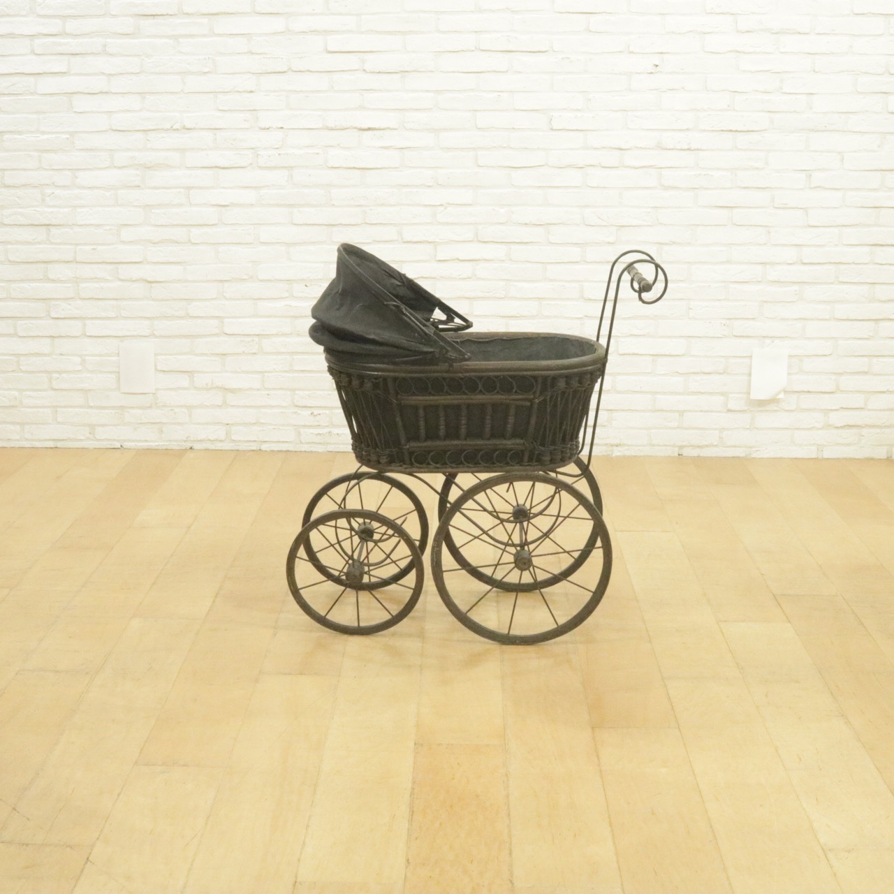 シャビーシックで雰囲気のあるブラックのベビーカー。